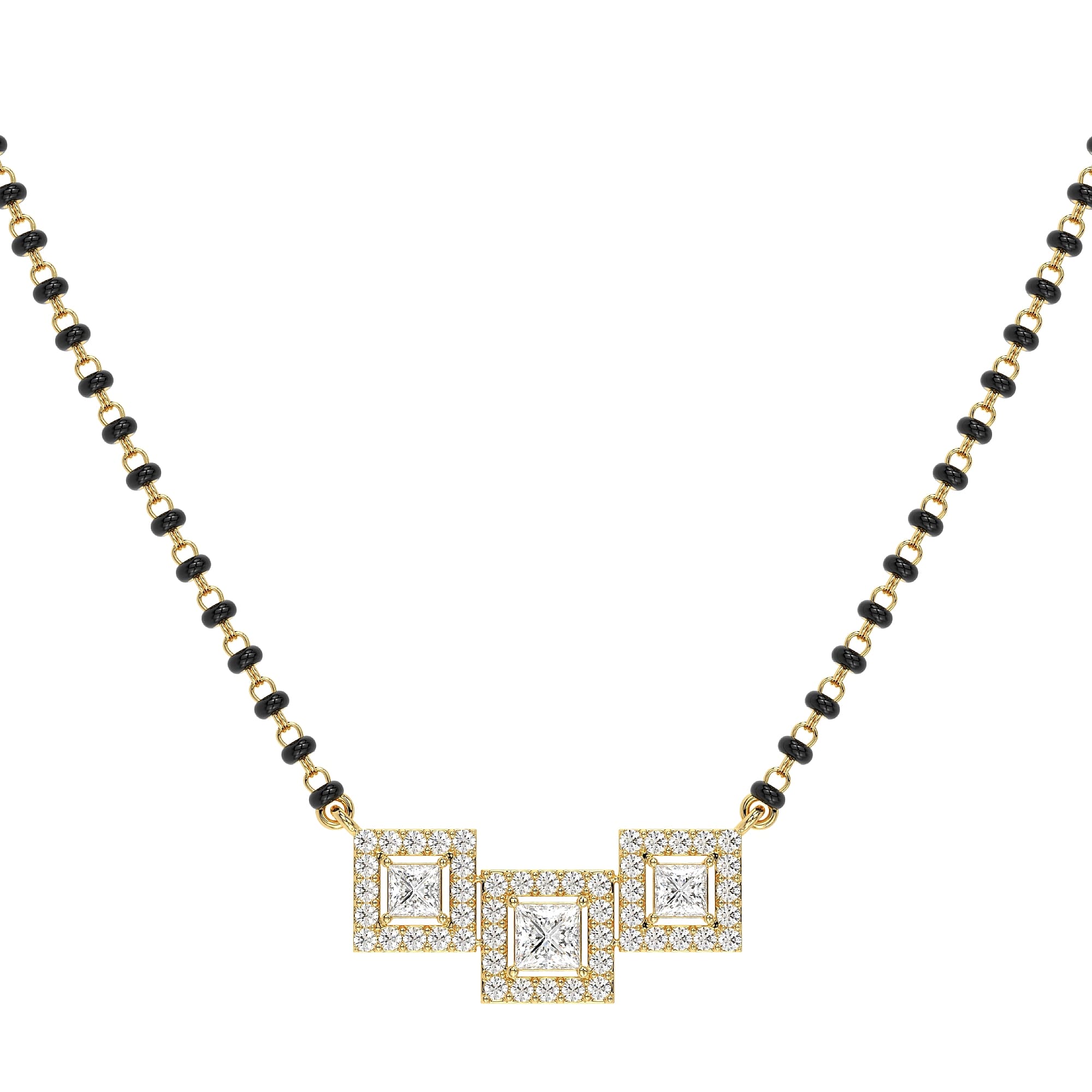 Princess Cut Tri-Halo Diamond Mangalsutra