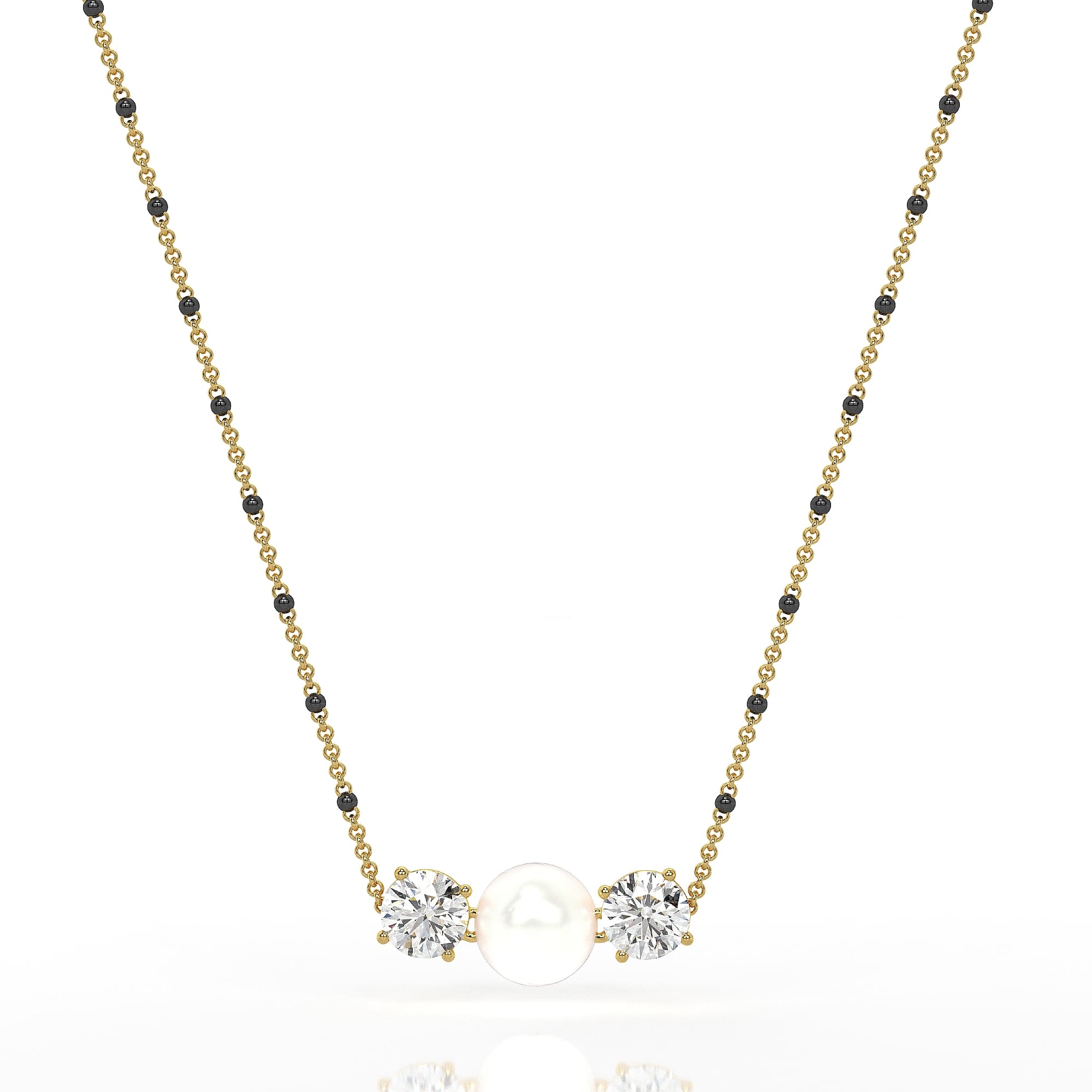 Combining the lustrous beauty of pearls with the brilliance of diamonds, this mangalsutra exudes a harmonious blend of tradition and luxury, making it an exquisite choice for a refined look.