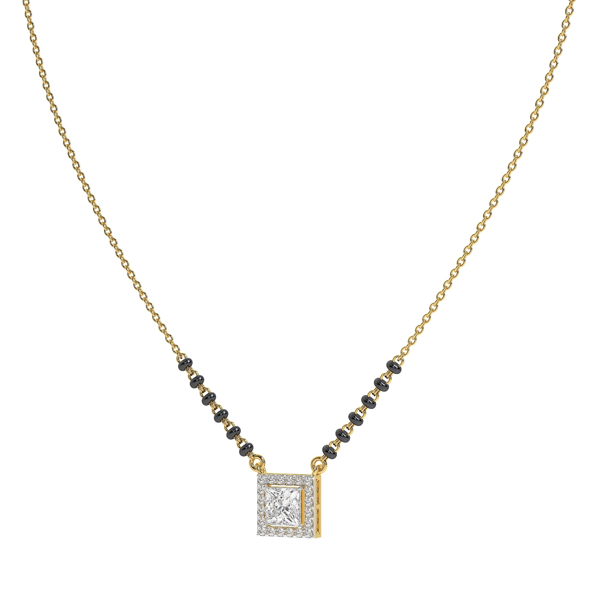 Featuring a striking princess cut at the centre, surrounded by a halo of diamonds, this mangalsutra exudes a refined and regal charm, perfect for those who appreciate modern elegance.