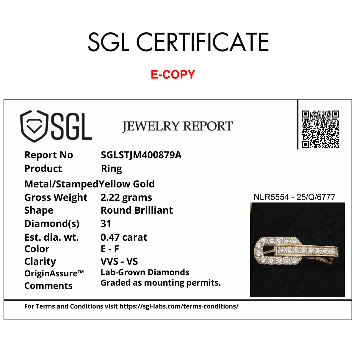 The 0.47 Carats MYZA Certified Lab-Grown Round Diamond Ring in 9K Hallmarked Gold is a sophisticated piece that balances high-end sparkle with everyday practicality.