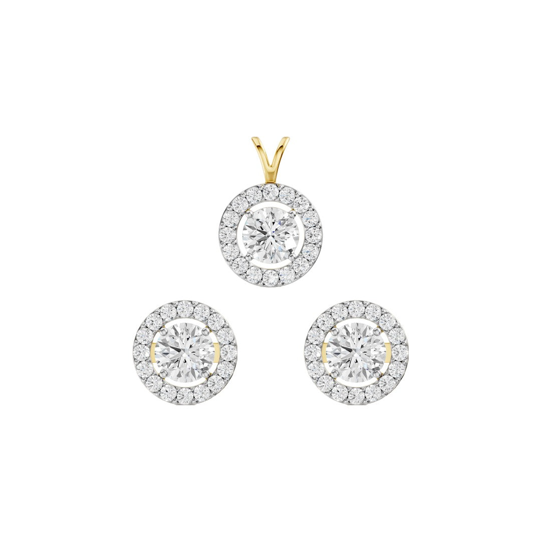 0.74-Carat × 3 (2.22 Carats Total) MYZA IGI Certified (D/VVS2) Lab-Grown Diamond Halo Pendant & Earrings Combo Set in 18K Hallmark Gold