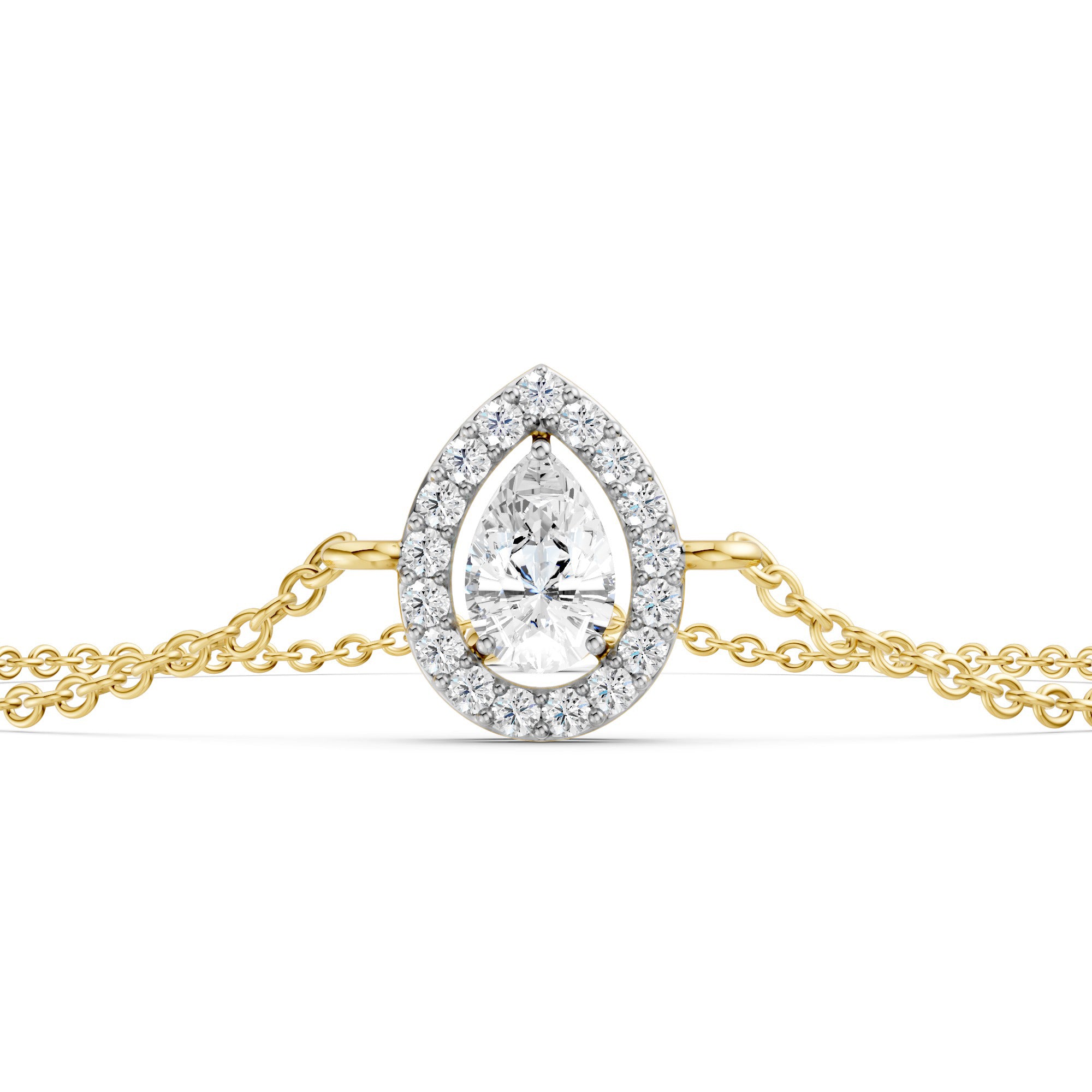 Featuring the timeless MYZA 0.50 Carat IGI Certified Lab Grown Pear Cut Diamond Halo Bracelet in 18K Hallmark Gold
