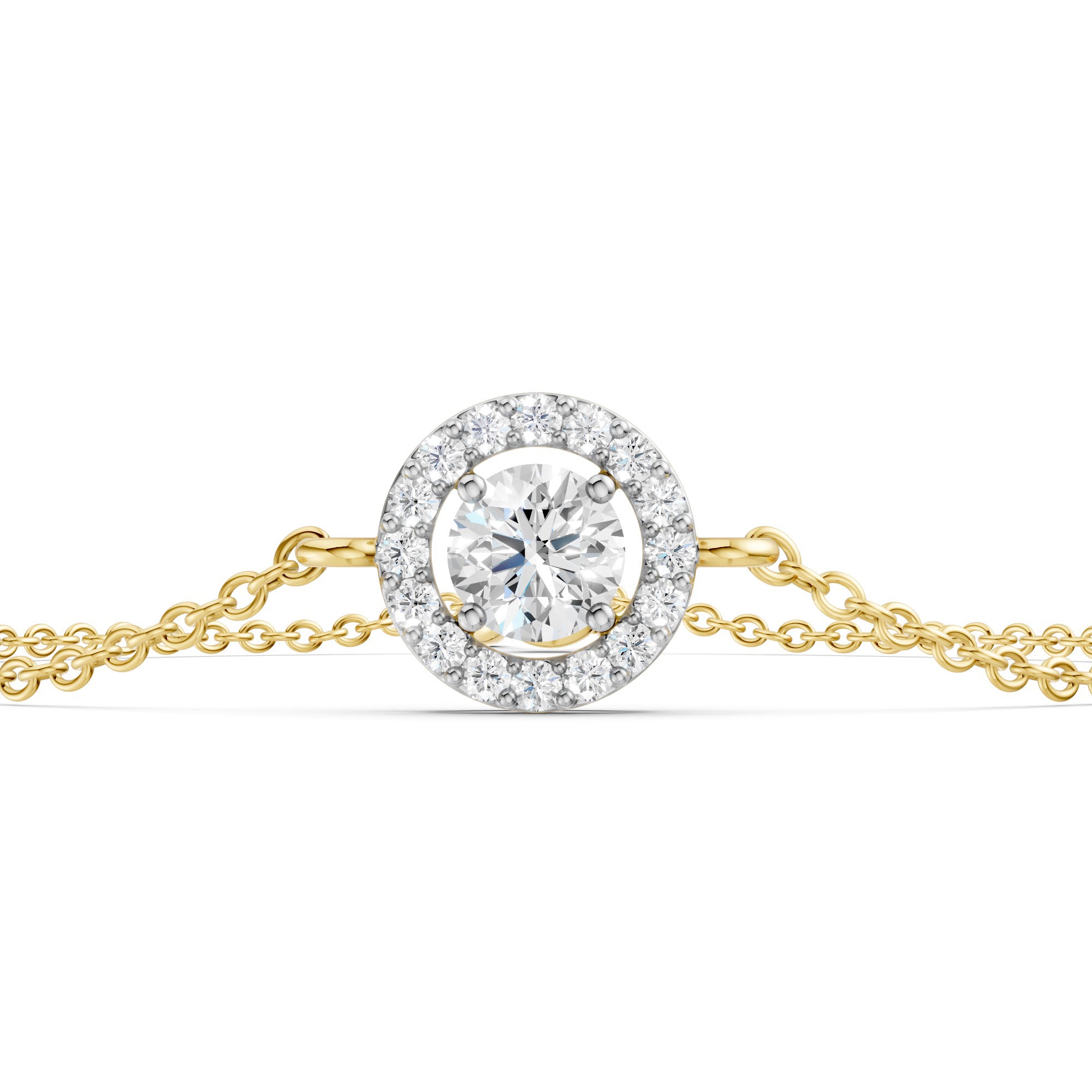 Featuring the timeless MYZA 0.50 Carat IGI Certified Lab Grown Round Cut Diamond Halo Bracelet in 18K Hallmark Gold
