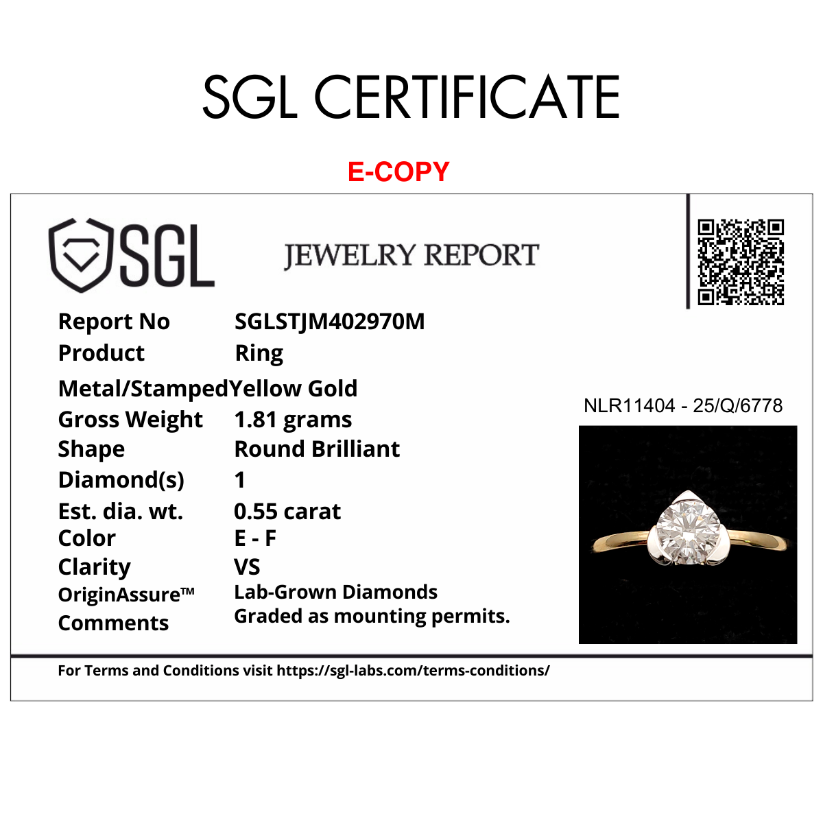 | Certification | SGL / IGI | ||||||||