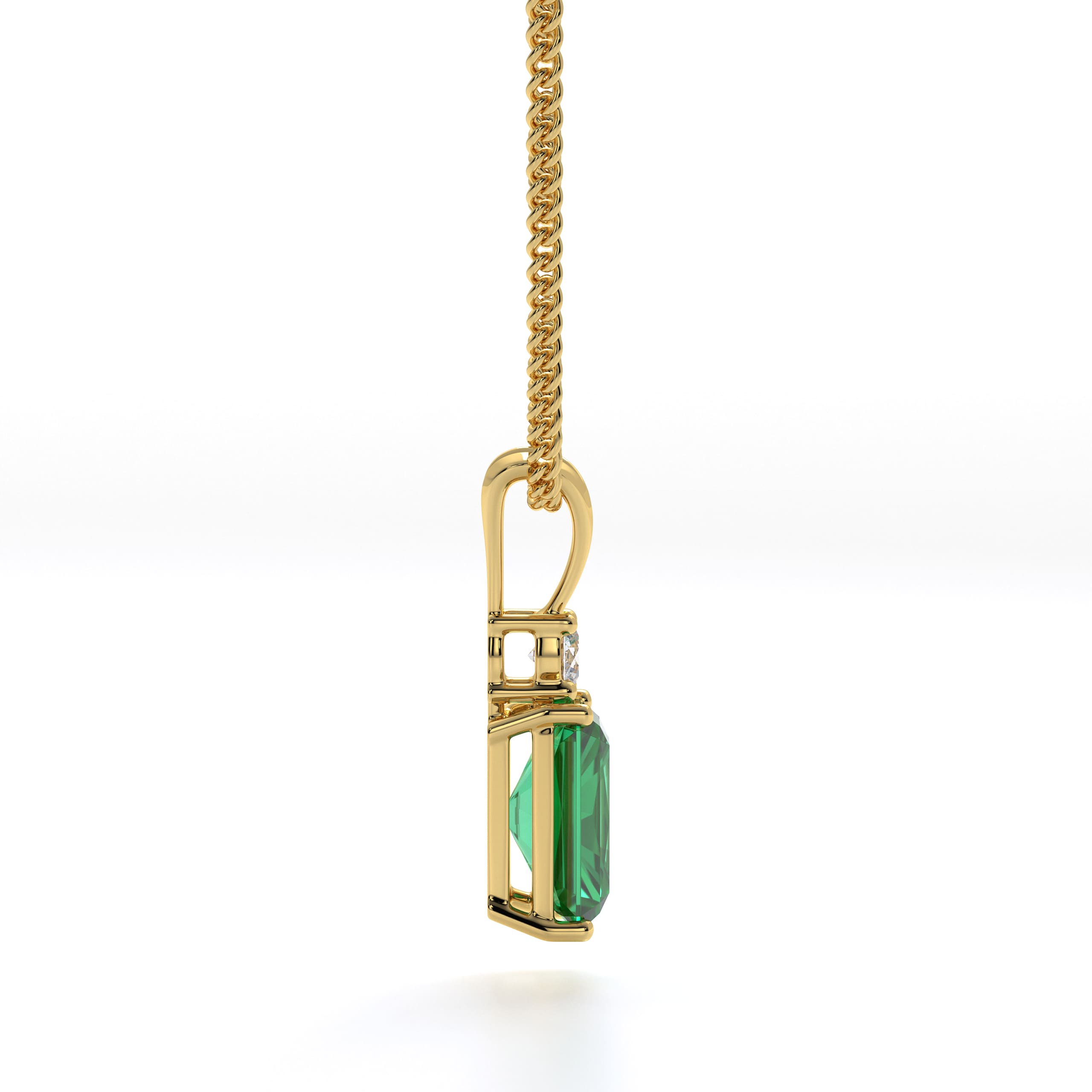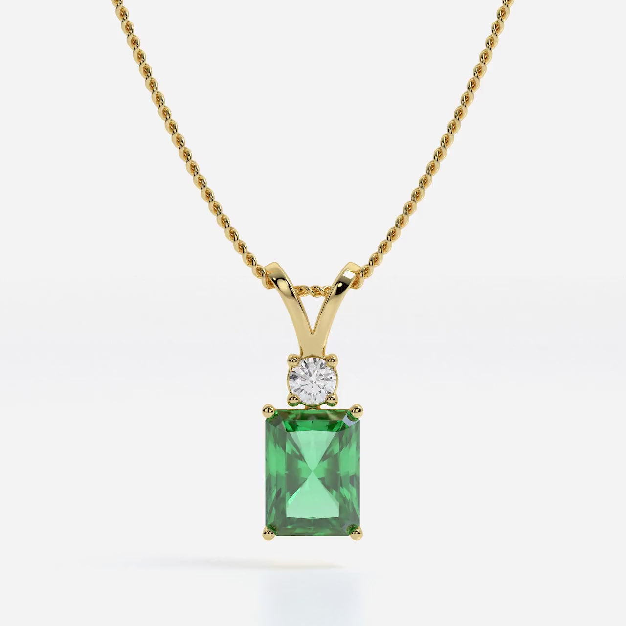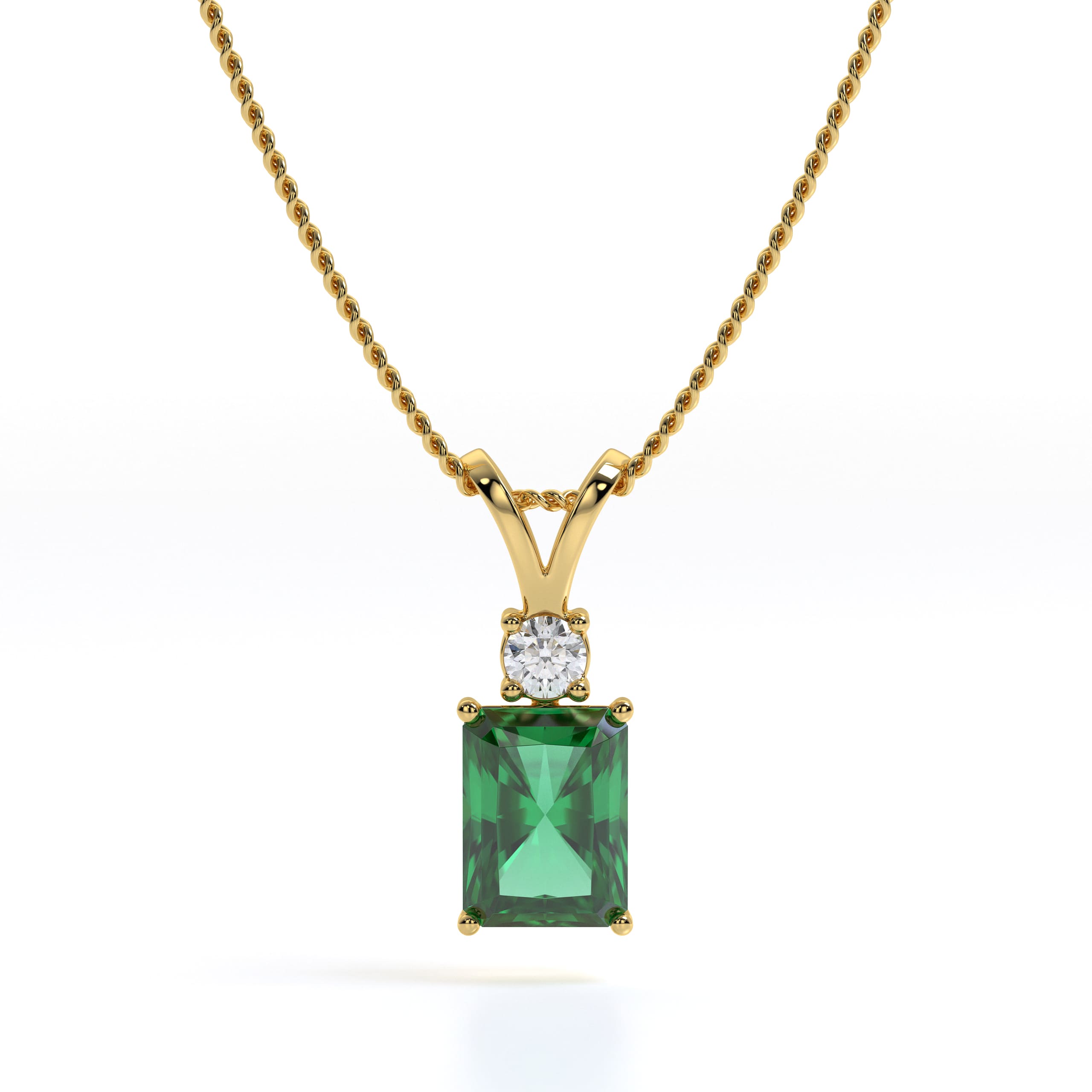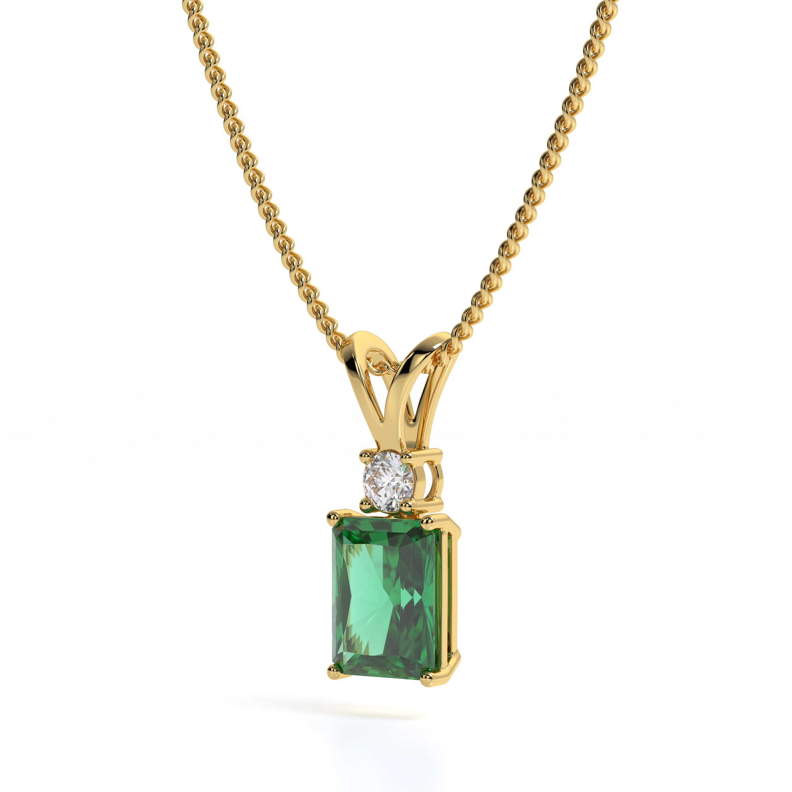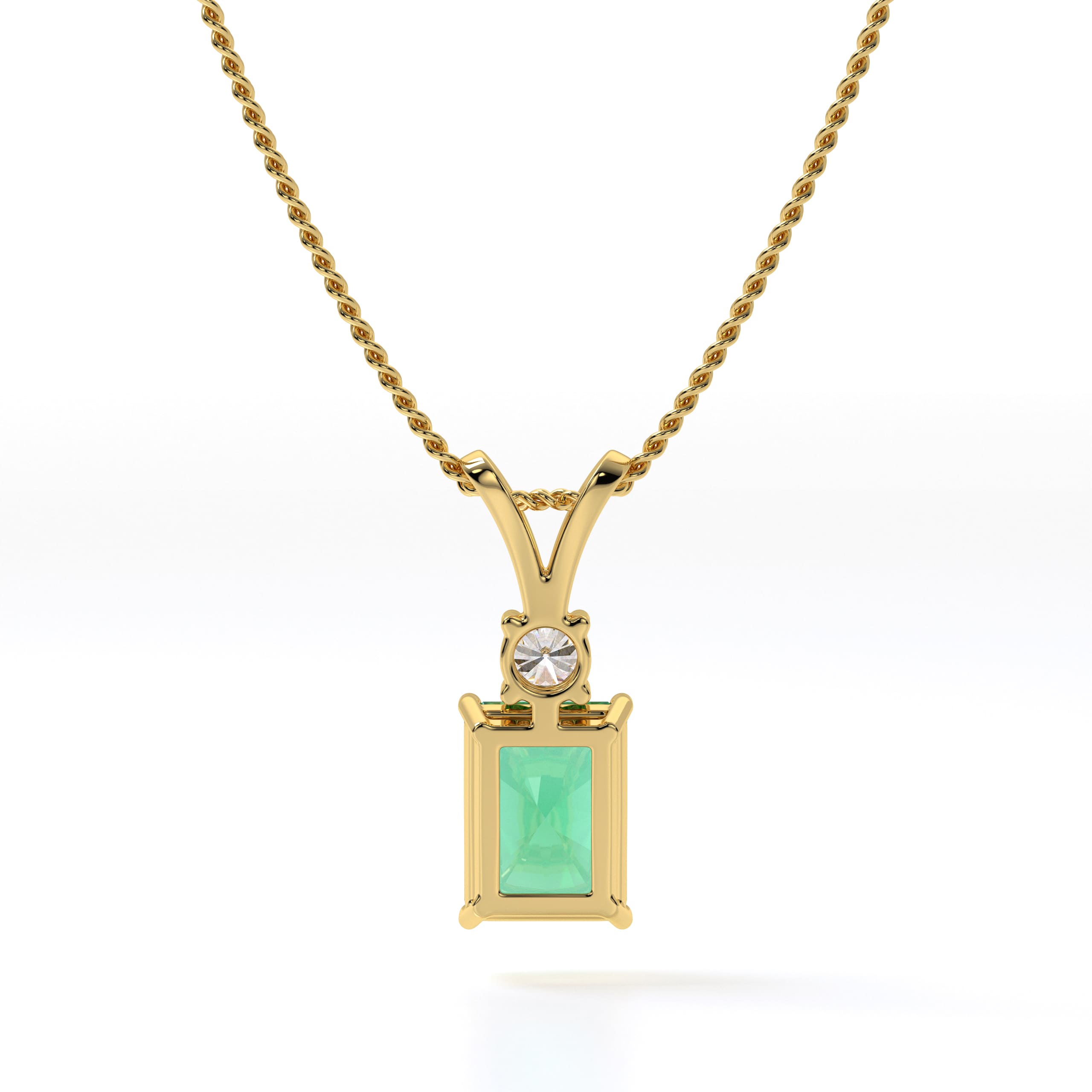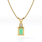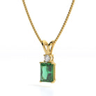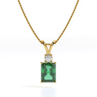 This MYZA Zambian Green Emerald and Lab-Grown Diamond necklace features a radiant Emerald-cut lab-grown diamond, IGI-certified, crafted in 18K hallmarked gold, designed to shine effortlessly.