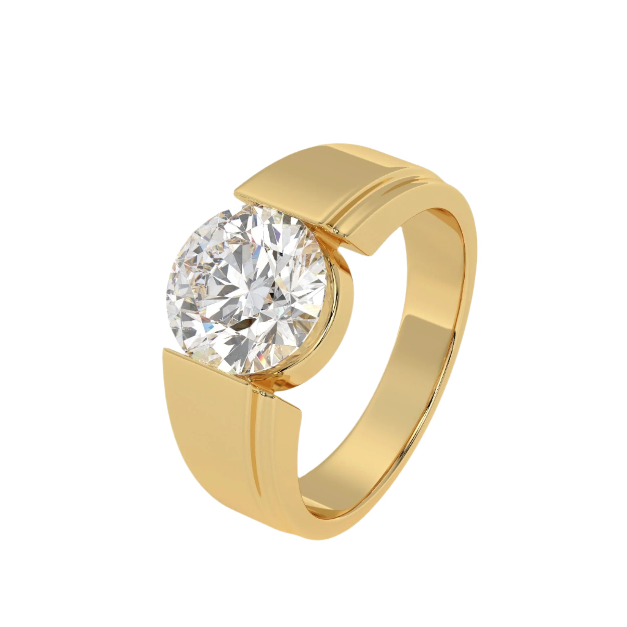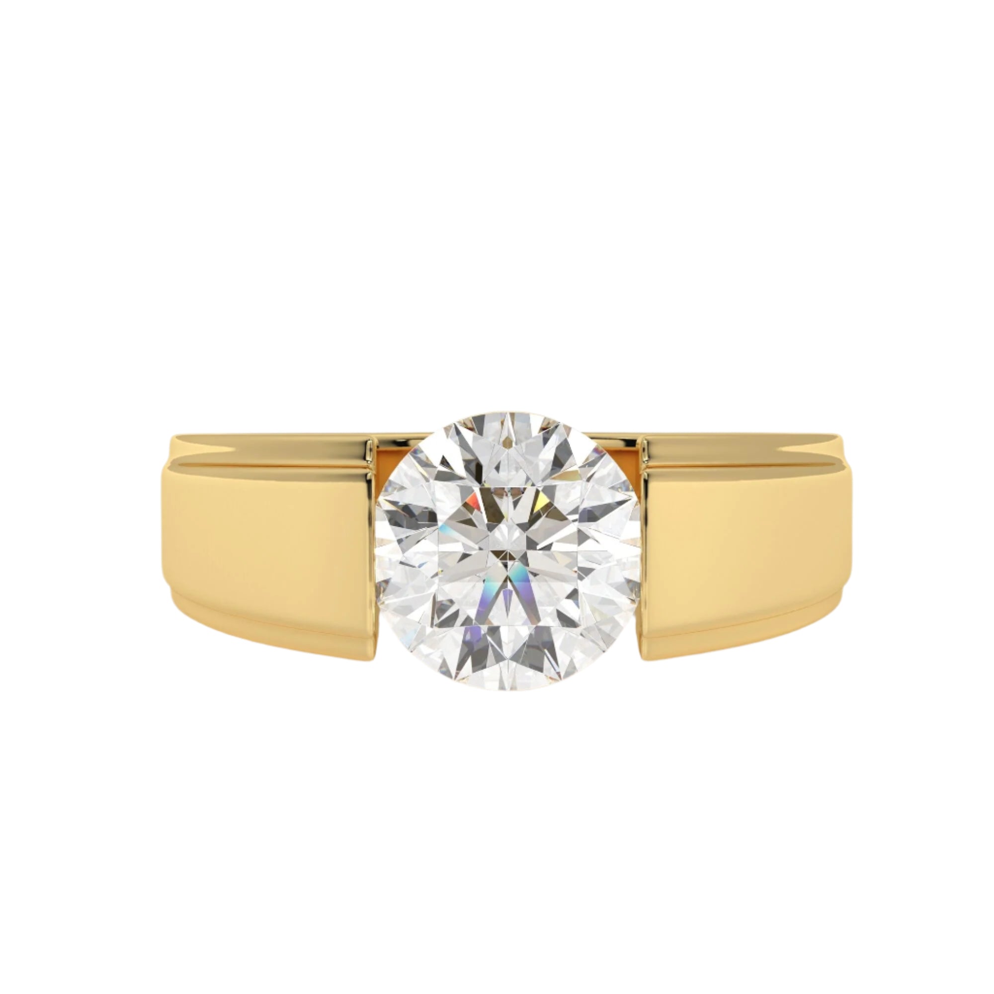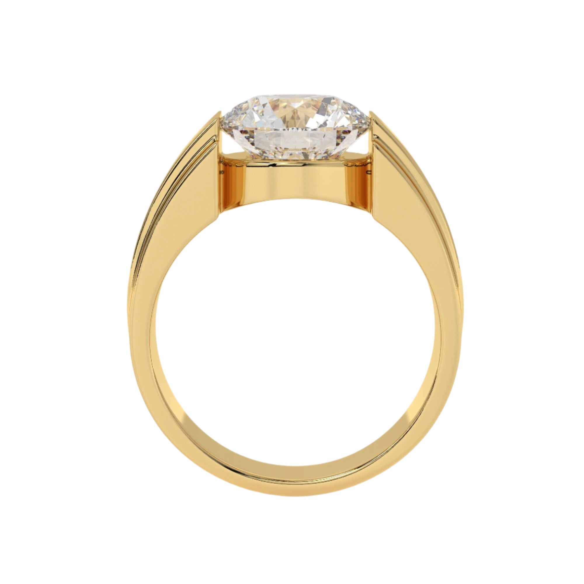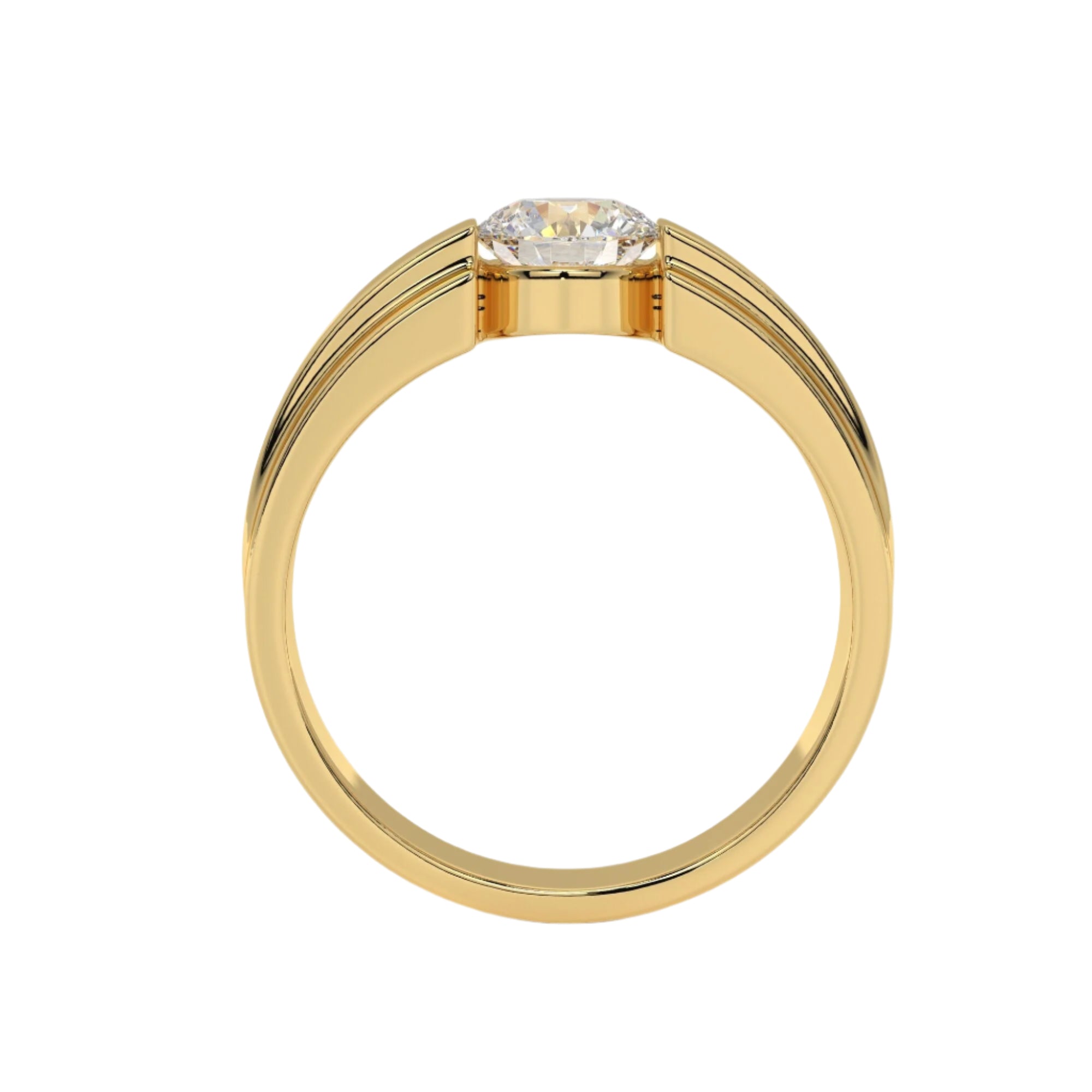 Featuring the timeless MYZA IGI Certified Round Cut Lab-Grown Diamond Men's Ring, elegantly designed in 18K hallmark yellow gold.