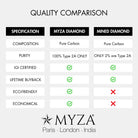 MYZA LAB GROWN (CVD TYPE 2a) only diamonds are from the top 20 percent of the lab grown diamonds available across the globe. Our in-house finest graders and goldsmiths are committed to creating brilliant masterpieces with specialised techniques. MYZA diamond outshines a mined diamond with its clarity, purity, and lustre that lasts a lifetime just like an earth mined diamond.