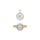 A stunning MYZA Round Halo Pendant & Ring Combo Set, showcasing an IGI-certified lab-grown diamond set in 18K hallmarked yellow gold, embodying timeless elegance with its sleek design.