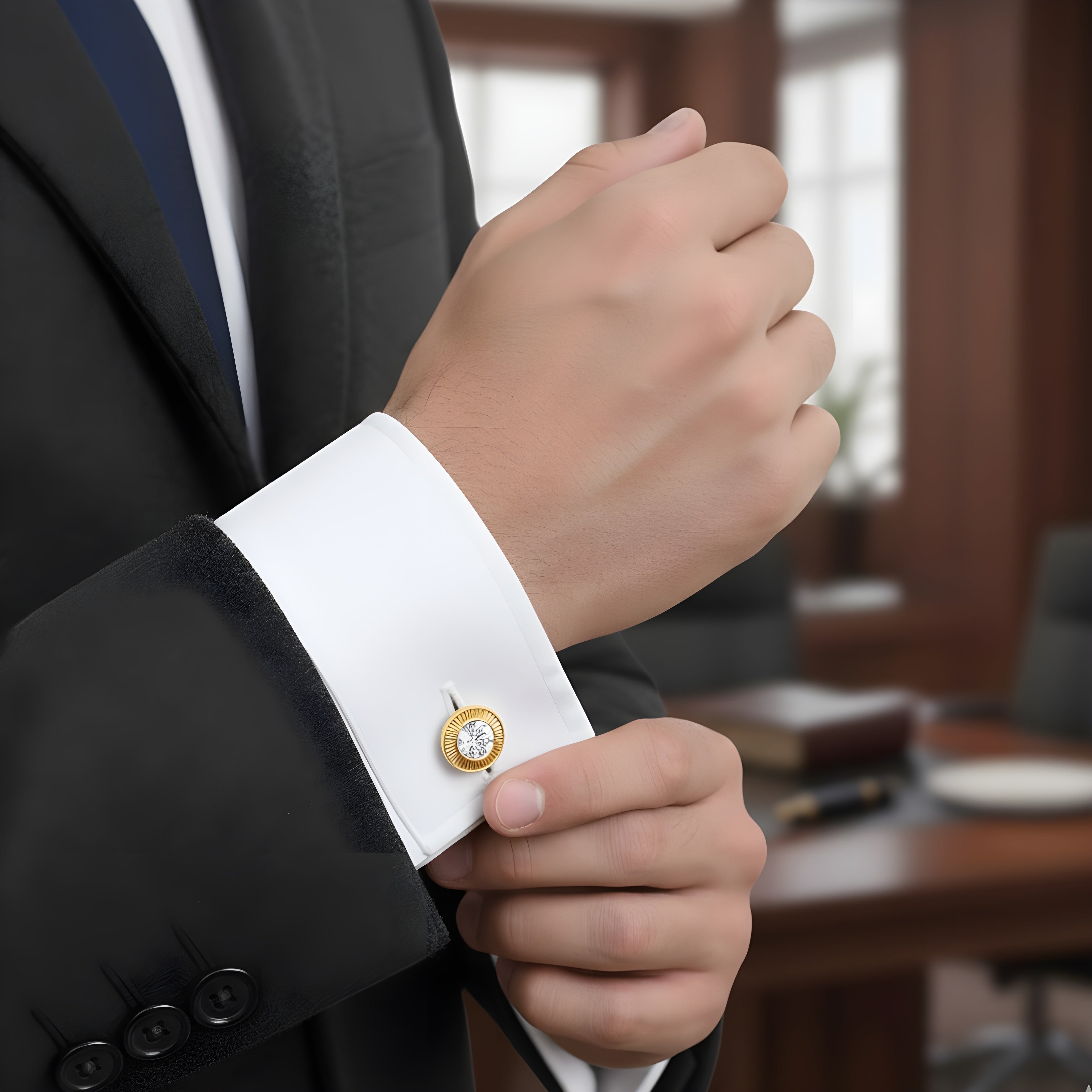 Featuring the timeless MYZA IGI Certified Men's Cufflinks with IGI-certified, lab-grown diamonds, elegantly designed in 18K hallmark yellow gold.