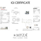 MYZA LAB GROWN (CVD TYPE 2a) only diamonds are from the top 20 percent of the lab grown diamonds available across the globe. Our in-house finest graders and goldsmiths are committed to creating brilliant masterpieces with specialised techniques. MYZA diamond outshines a mined diamond with its clarity, purity, and lustre that lasts a lifetime just like an earth mined diamond.