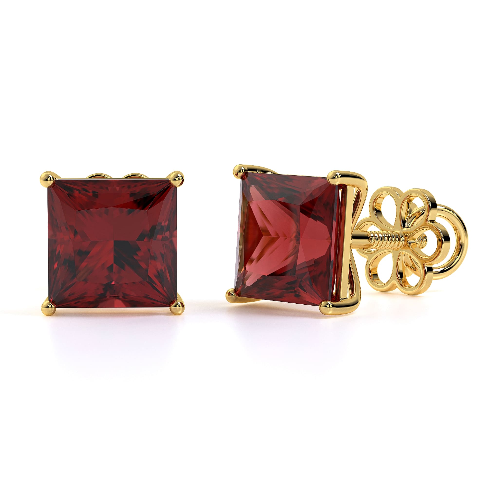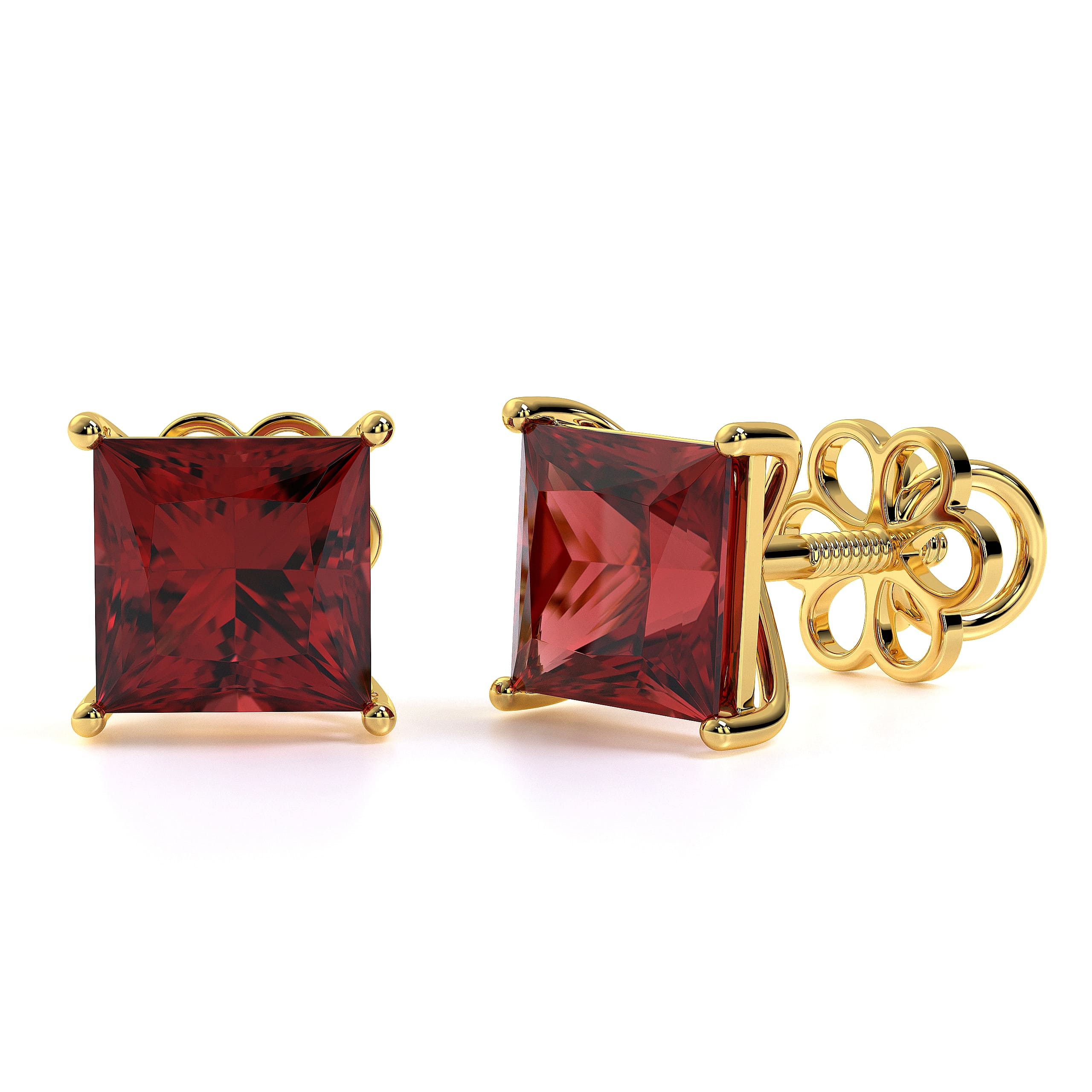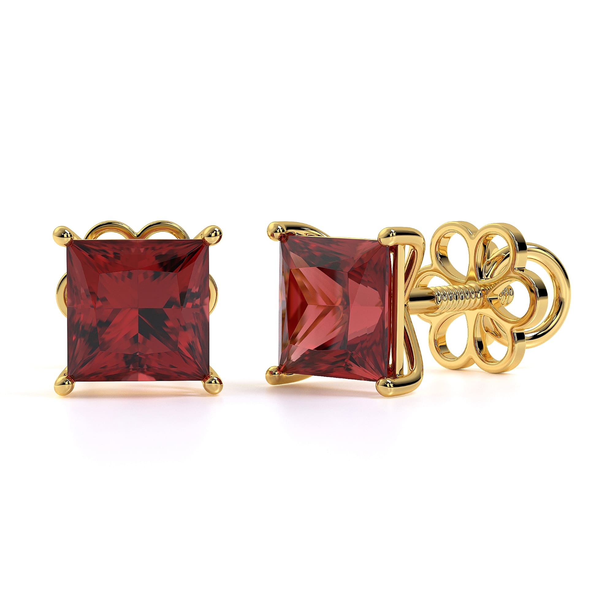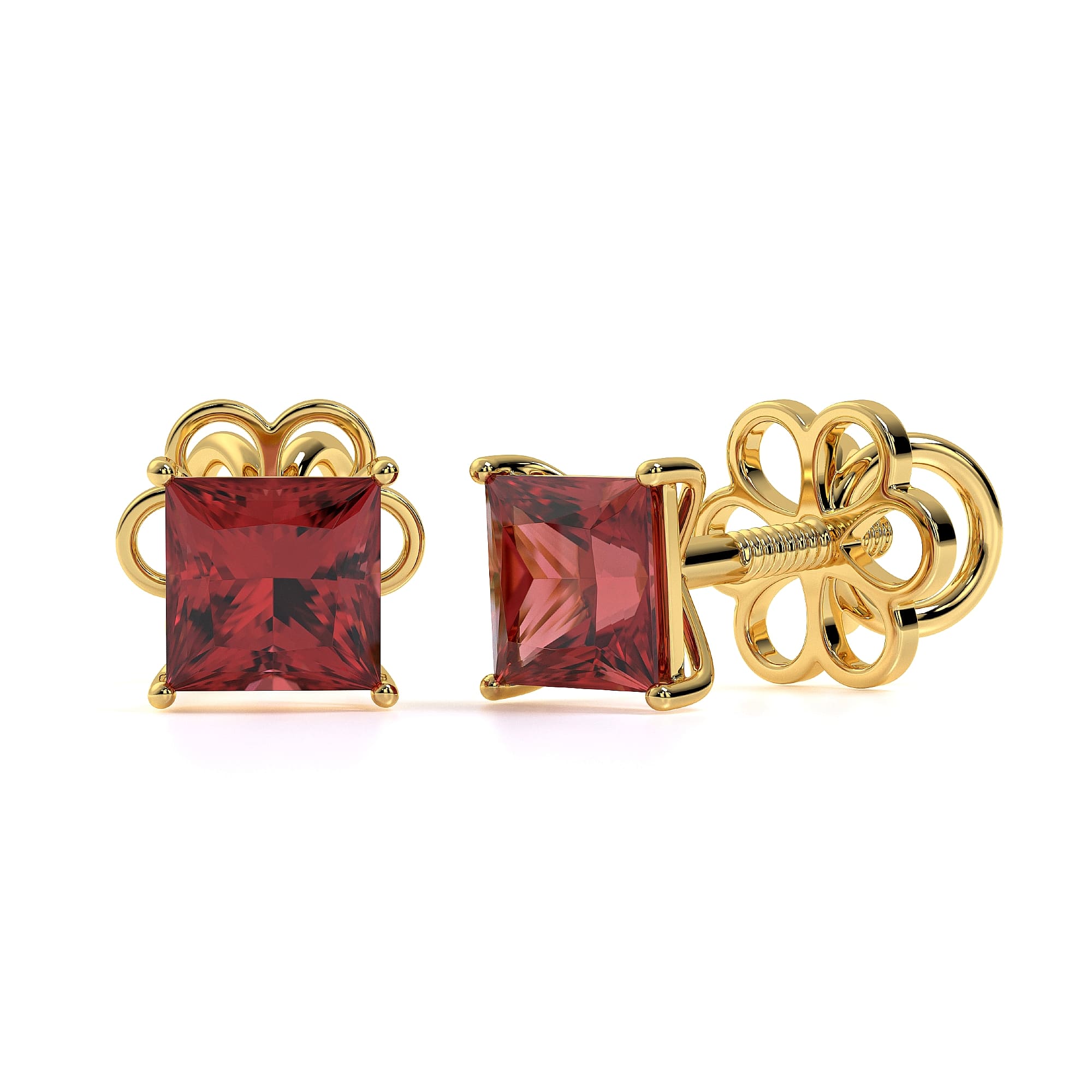 Featuring the timeless MYZA Princess Cut Lab-Grown Ruby Earrings with IGI-certified, elegantly designed in 18K hallmark yellow gold.