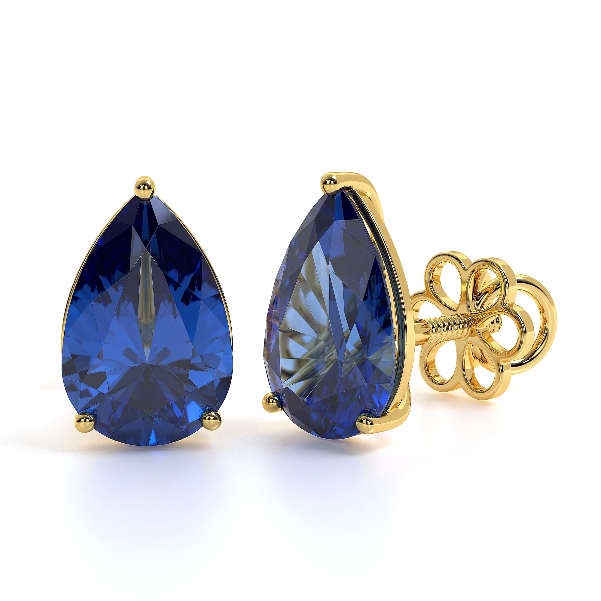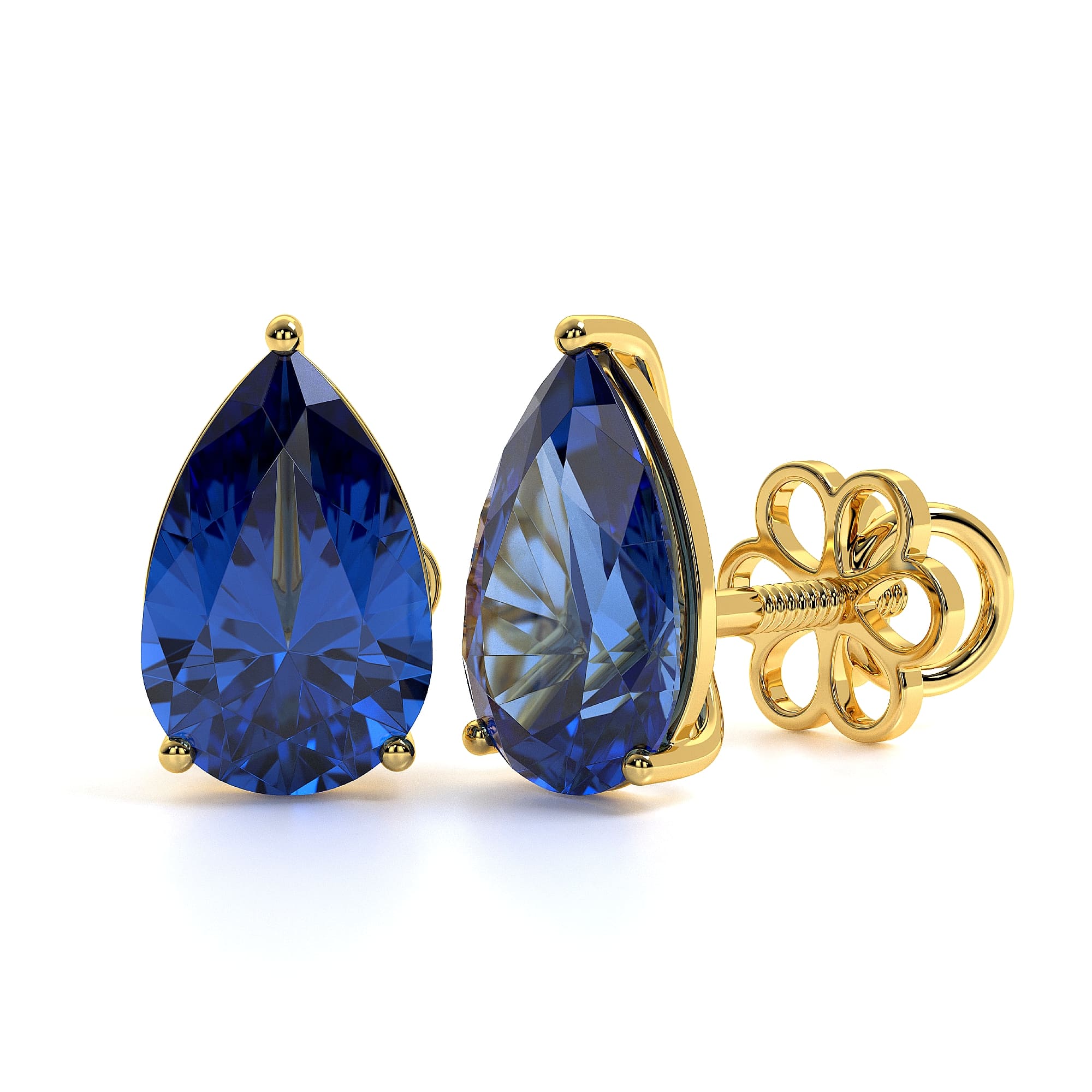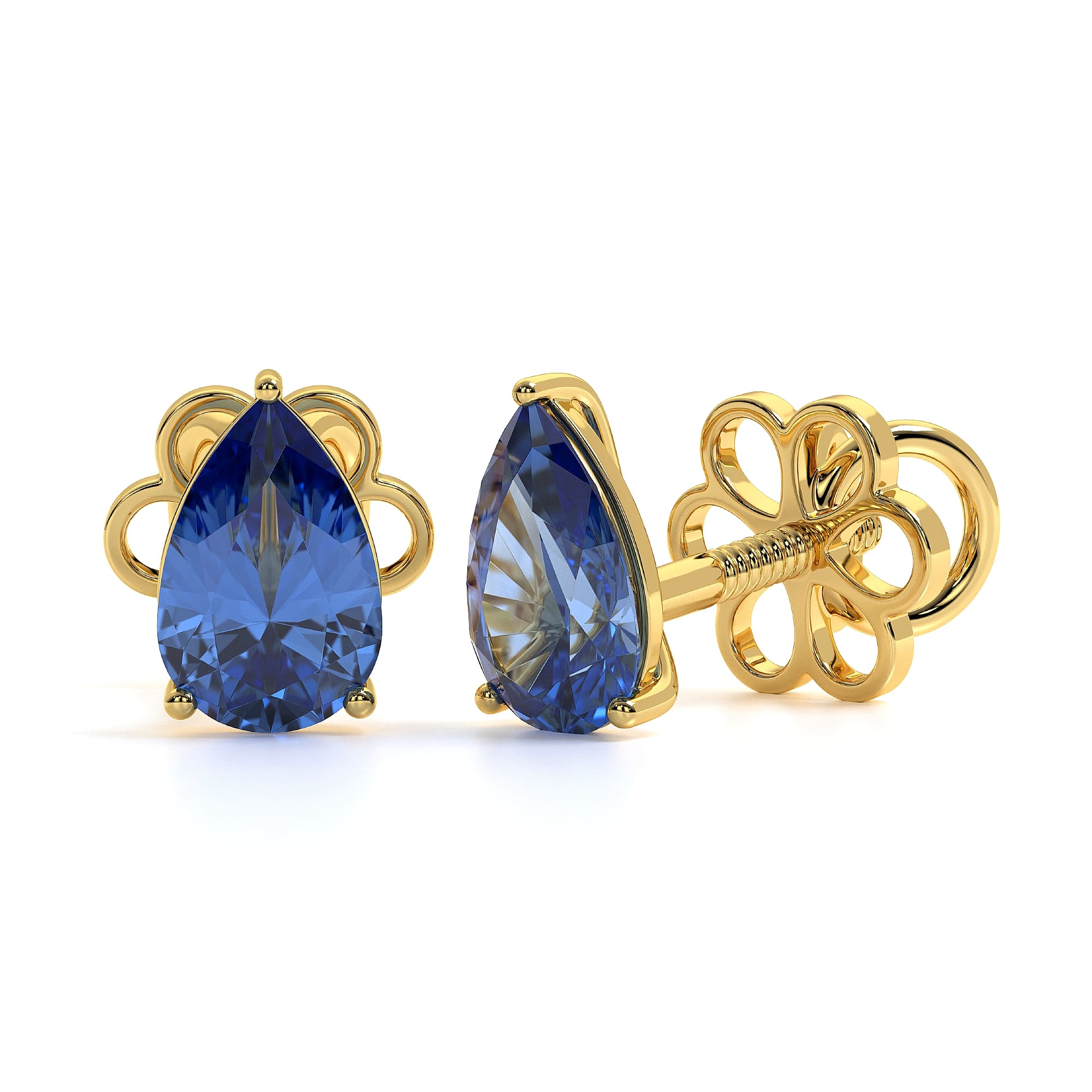 Featuring the timeless MYZA Pear Cut Lab-Grown Sapphire Earrings with IGI-certified, elegantly designed in 18K hallmark yellow gold.