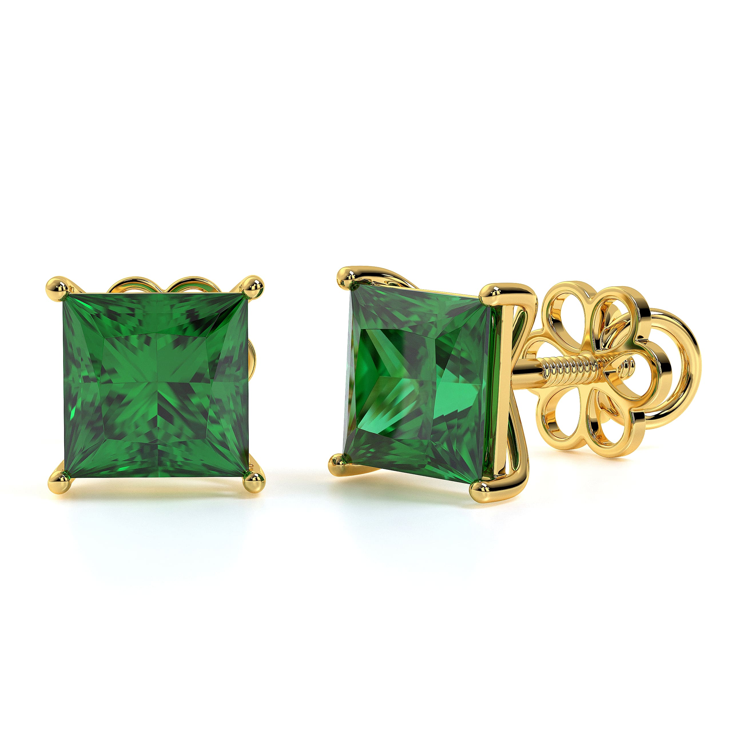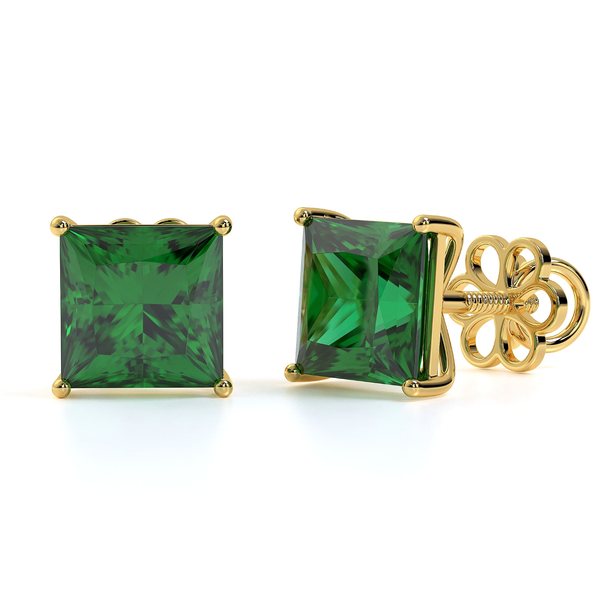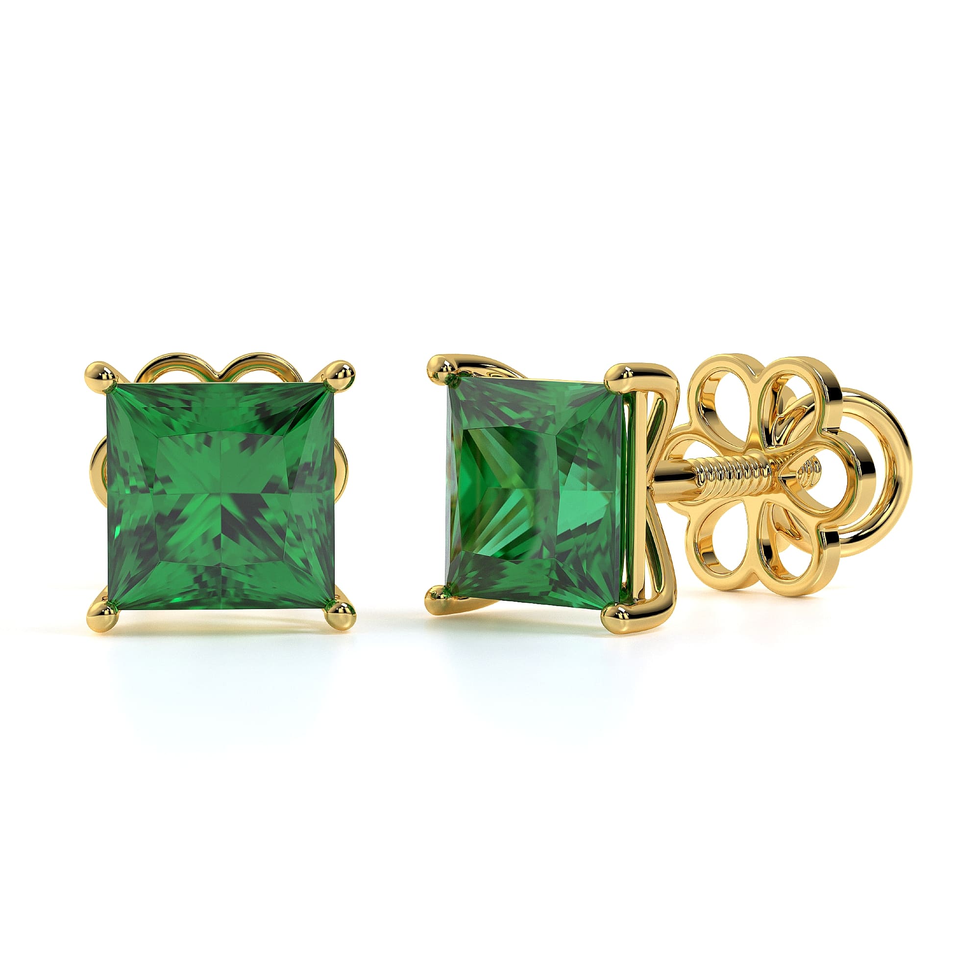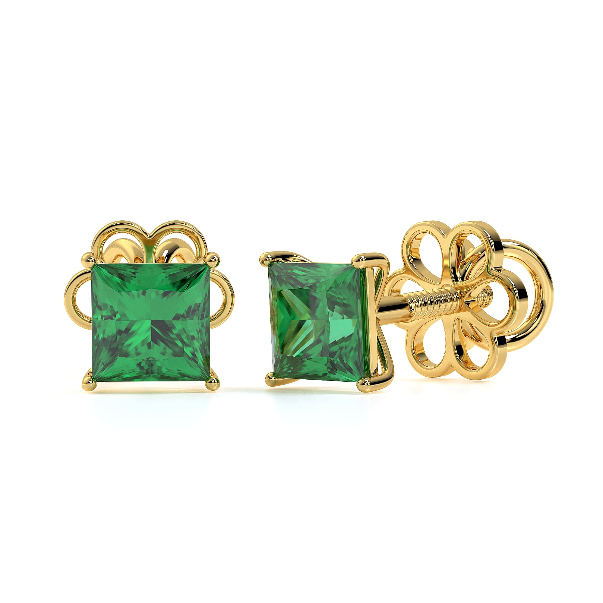 Featuring the timeless MYZA Princess Cut Lab-Grown Zambian Emerald Earrings with IGI-certified, elegantly designed in 18K hallmark yellow gold.