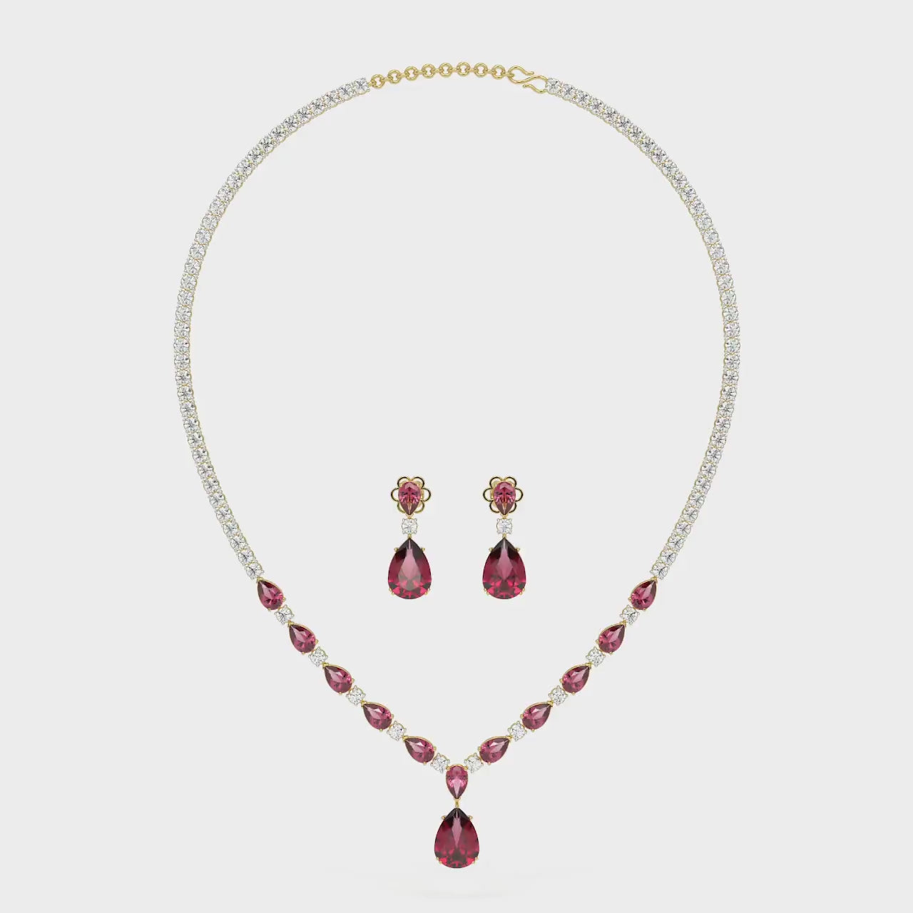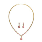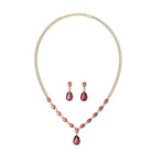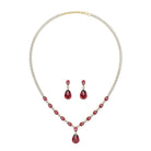 MYZA IGI-Certified Pear Cut Ruby Gemstone and Round Diamond Necklace with Earrings Set in 18K Hallmarked Gold