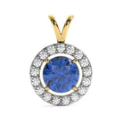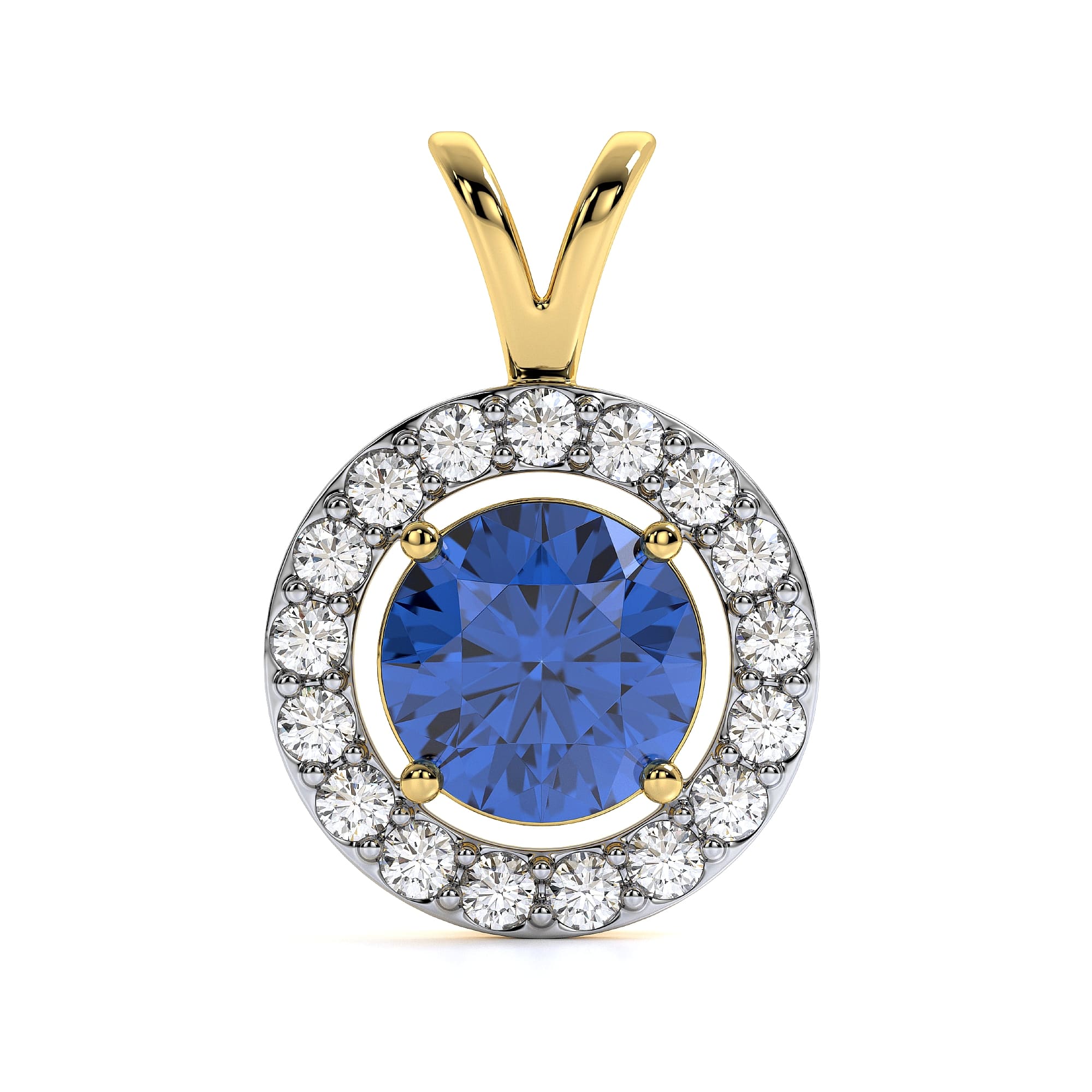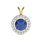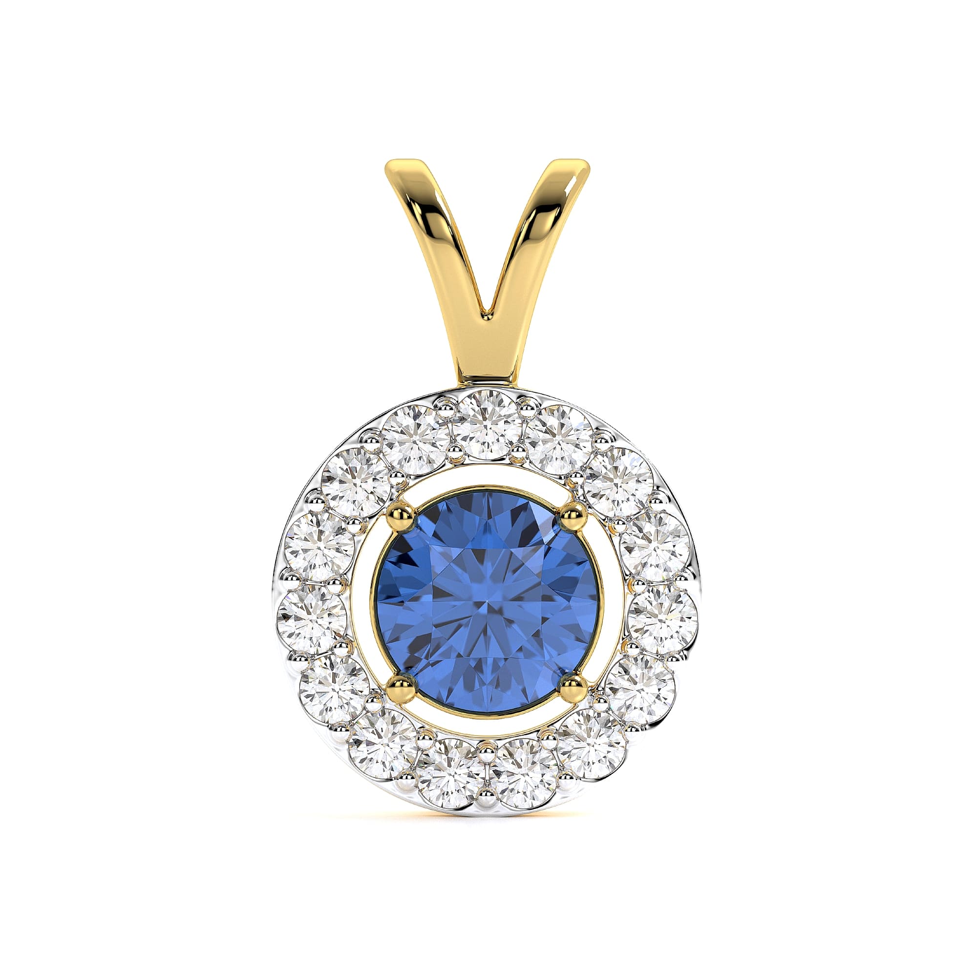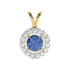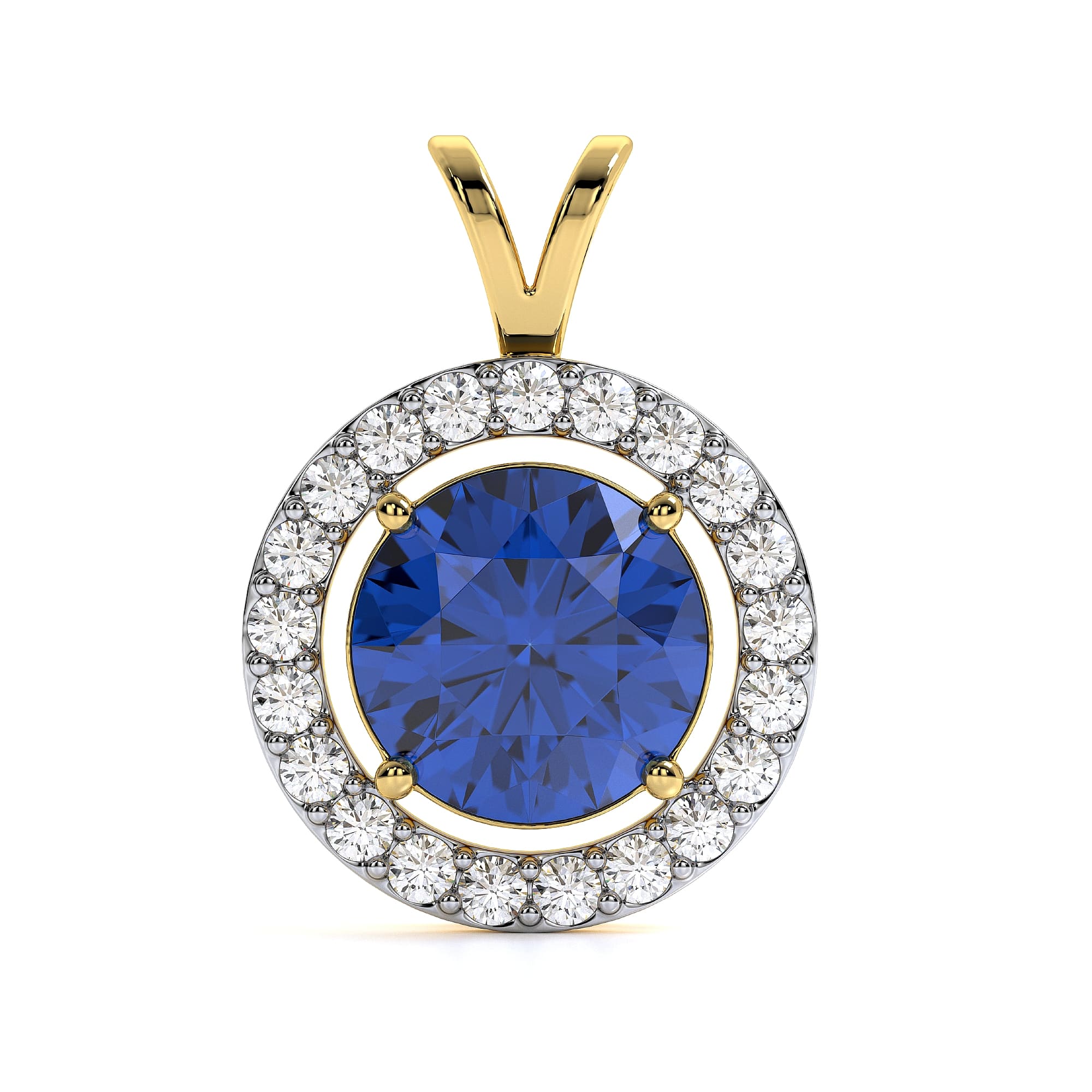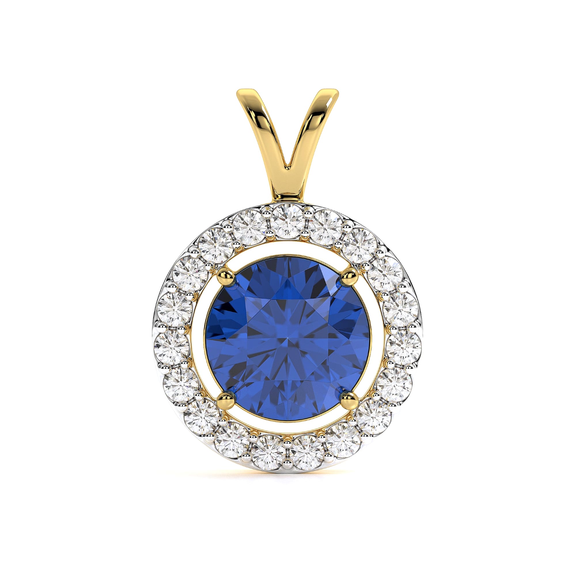 This MYZA Pendant features a radiant Round Cut Lab-Grown Sapphire Gemstone Halo Pendant, IGI-certified, crafted in 18K hallmarked gold, designed to shine effortlessly.