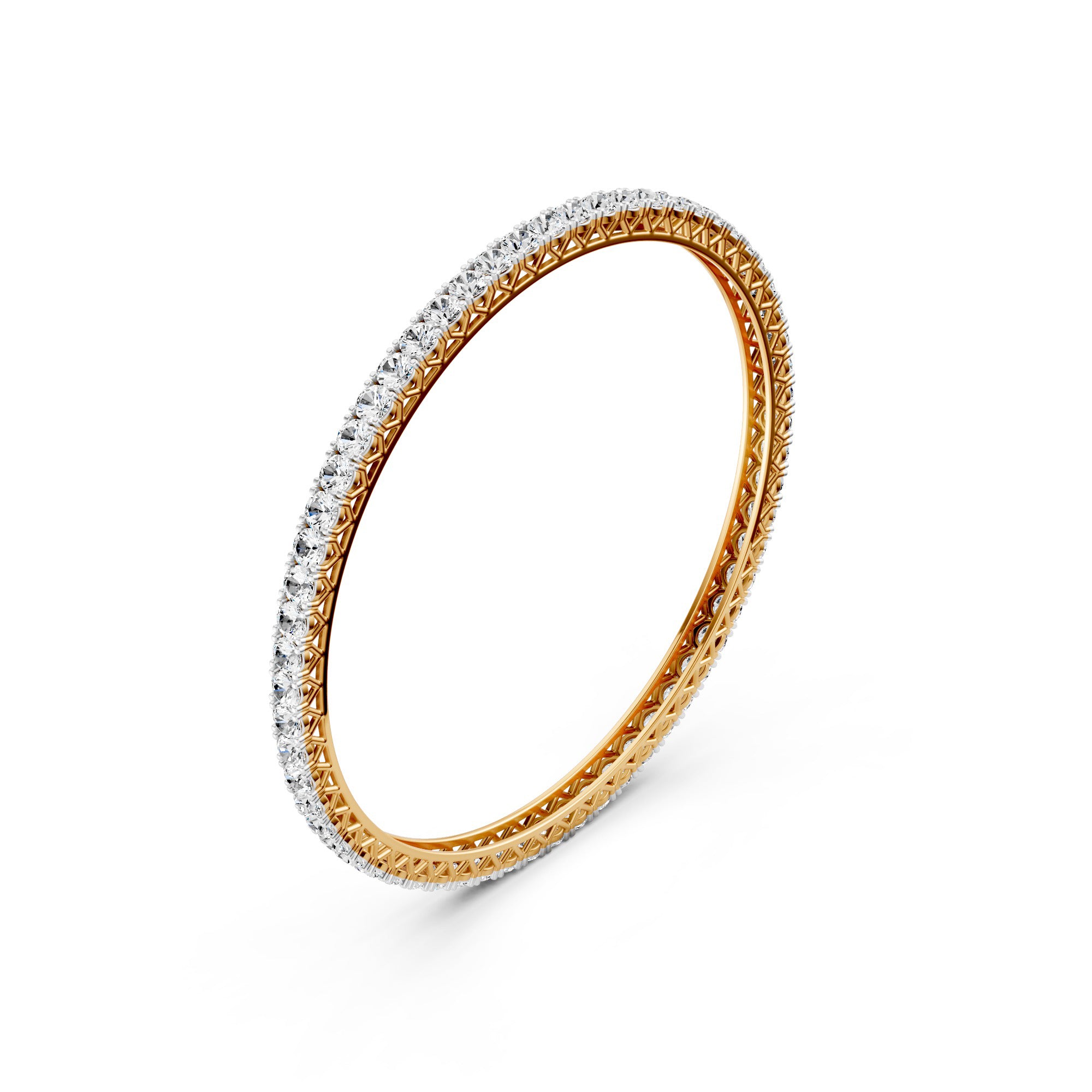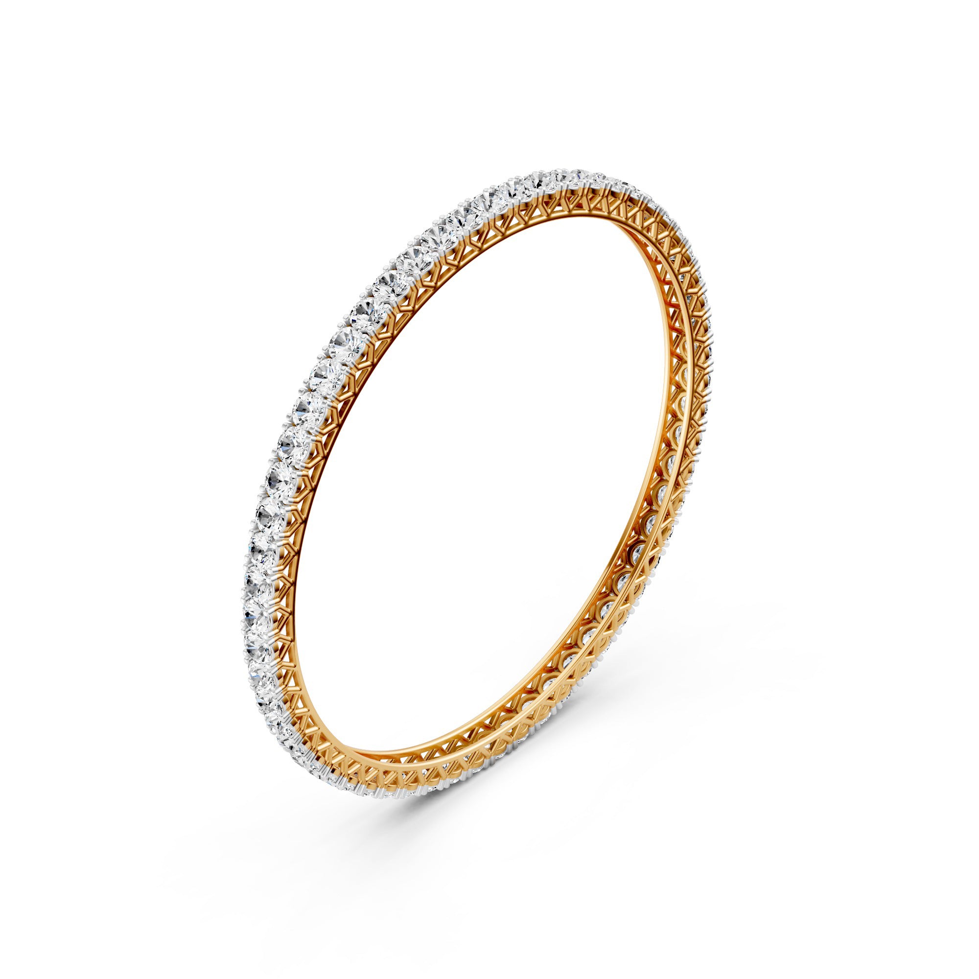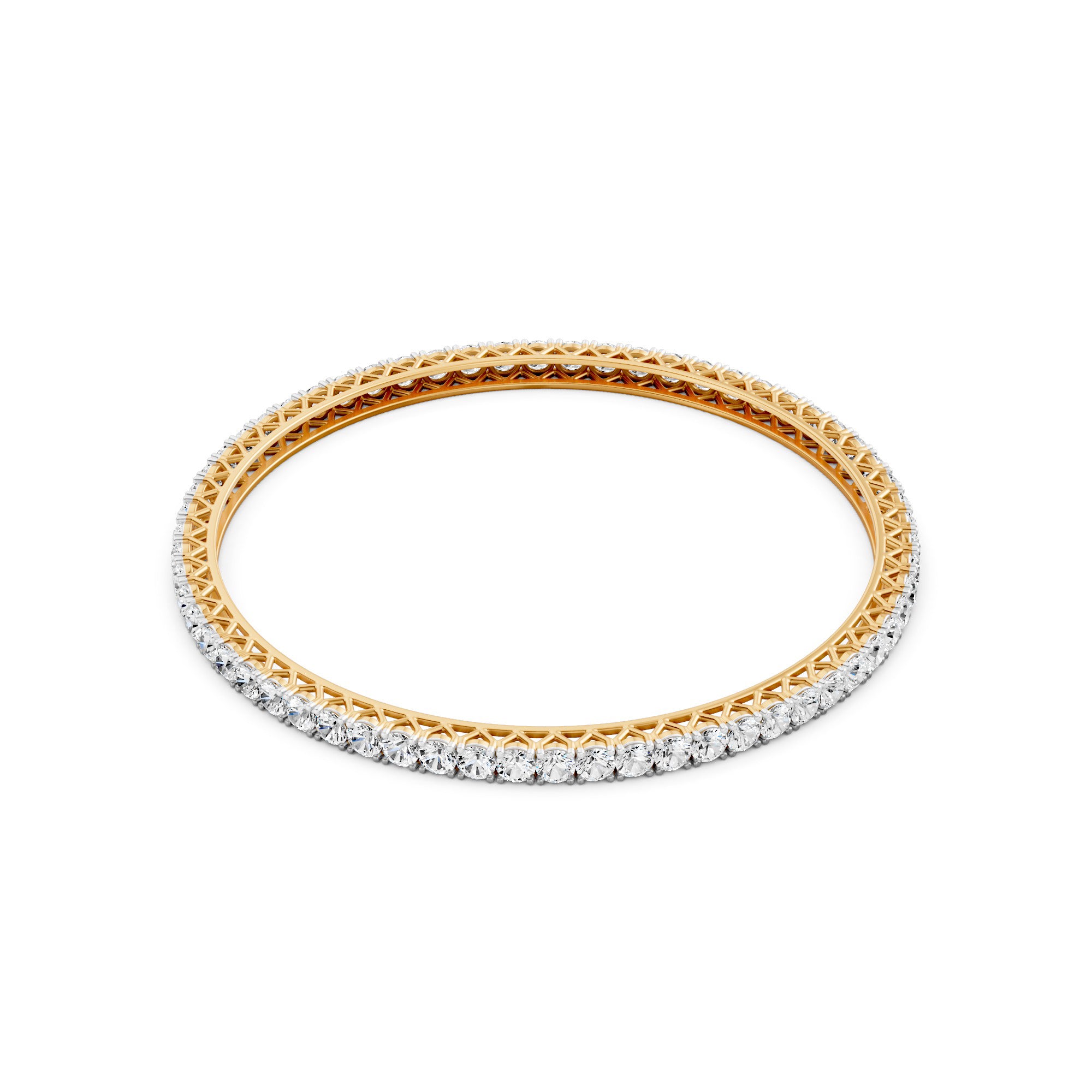 Featuring the timeless MYZA 11.2 to 12.4 Carats (20 Cent Each) MYZA Certified Lab Diamond Bangle in 18K Hallmark Yellow Gold