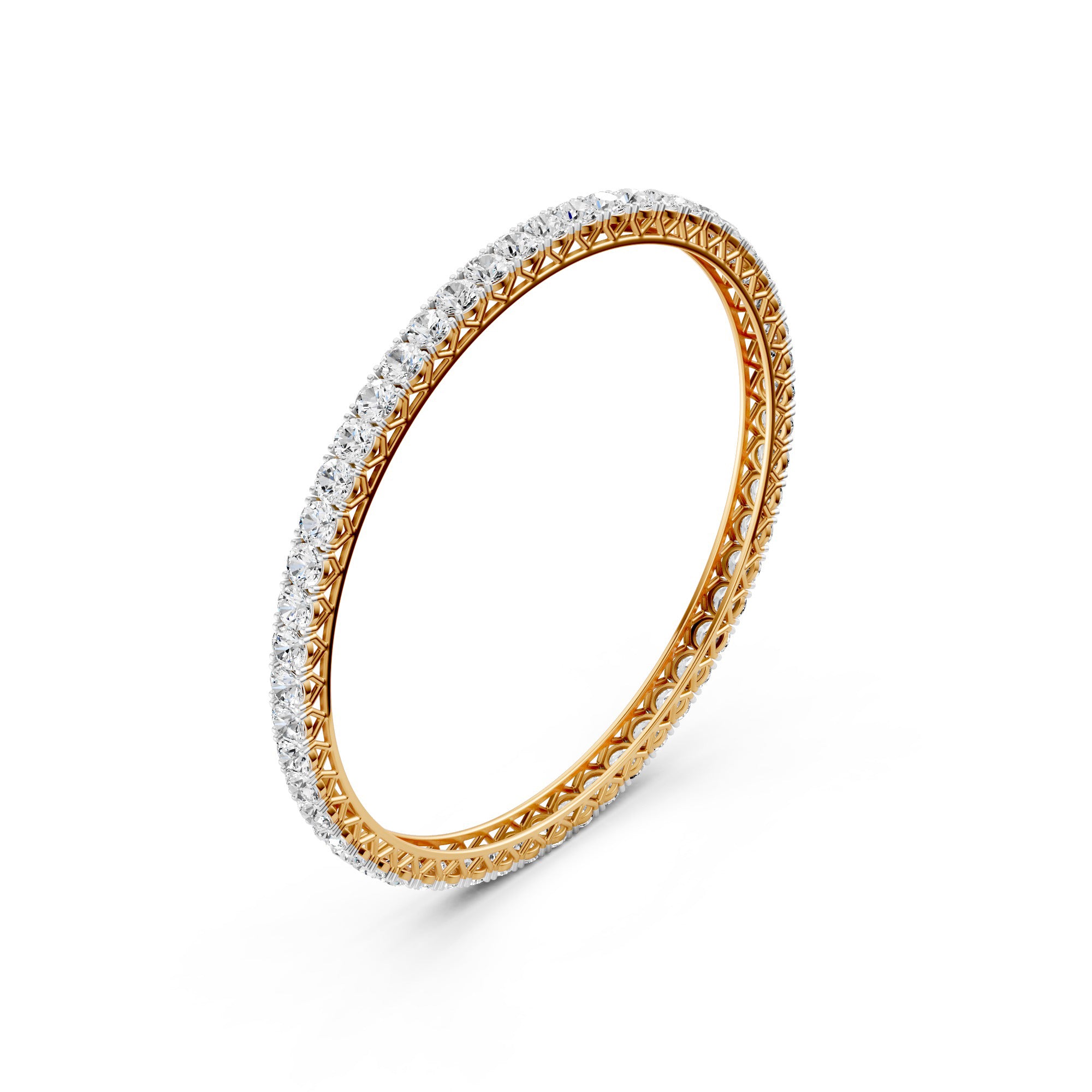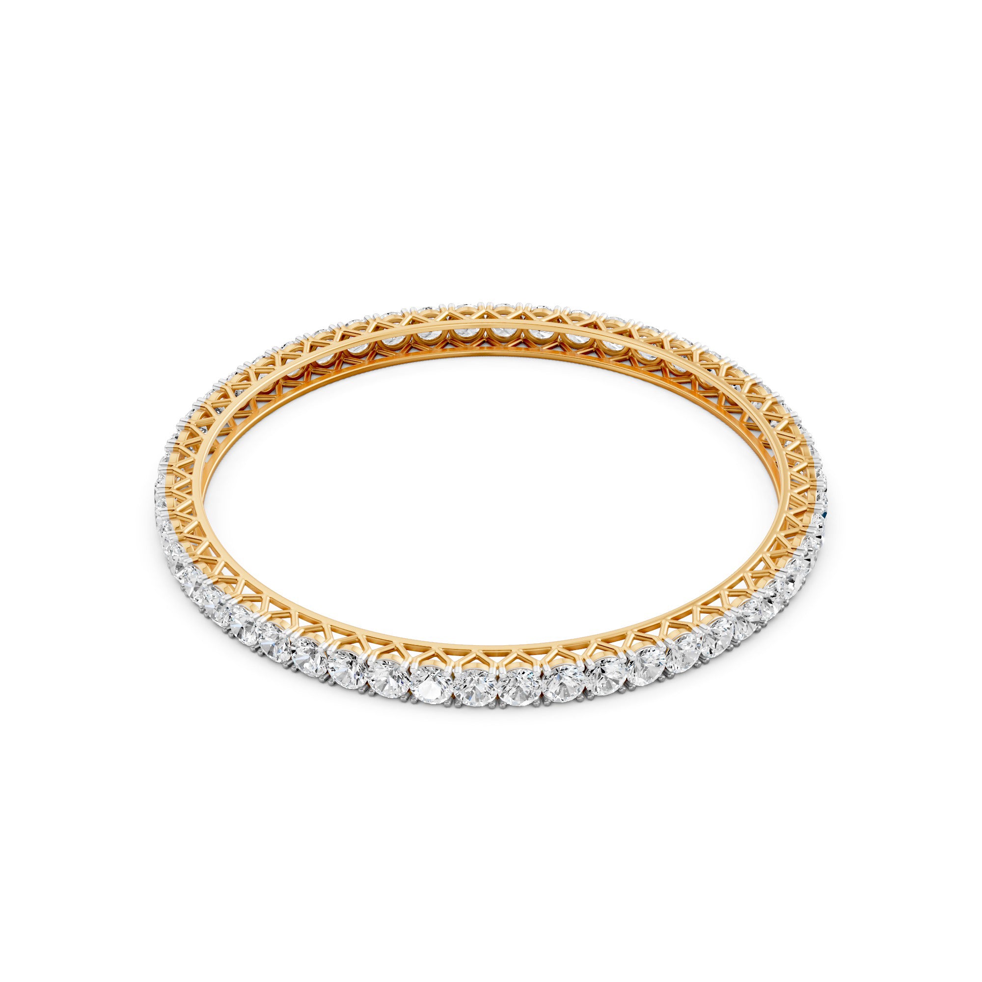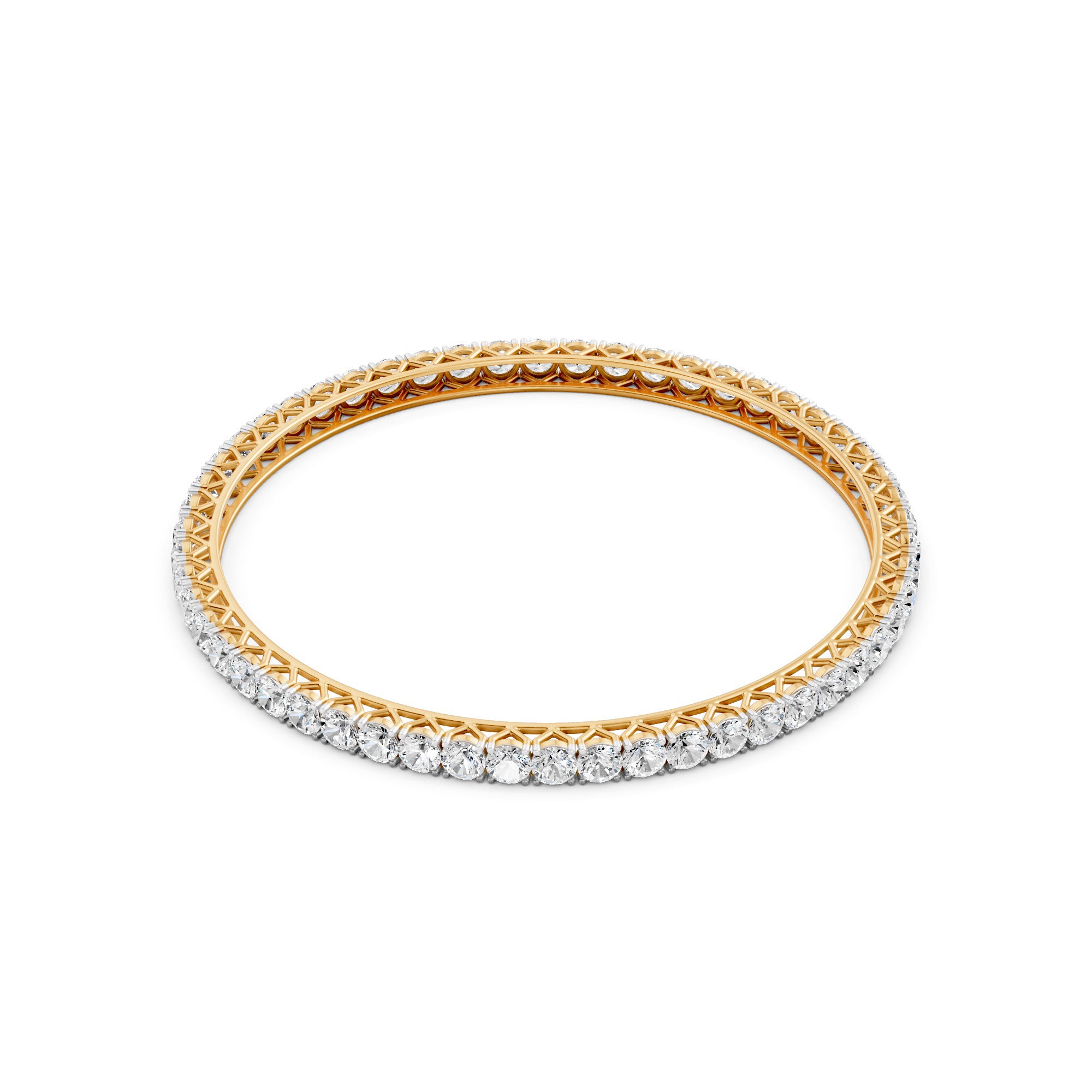 Featuring the timeless MYZA 12.5 to 13.5 Carats (25 Cent Each) MYZA Certified Lab Diamond Bangle in 18K Hallmark Yellow Gold