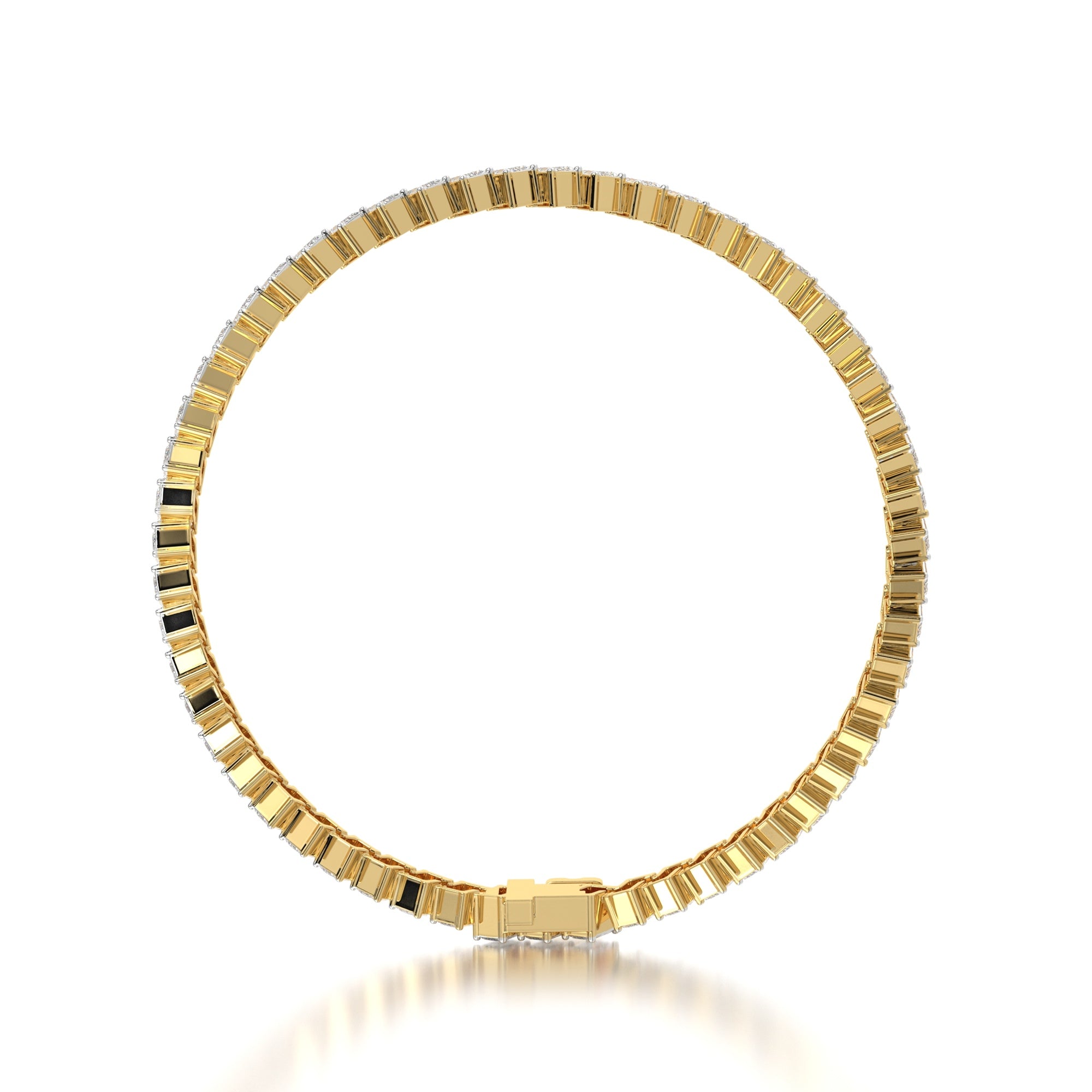 Featuring the timeless MYZA 5.5 Carat IGI Certified Lab Grown Emerald Cut Diamond Tennis Bracelet in 18K Hallmark Gold