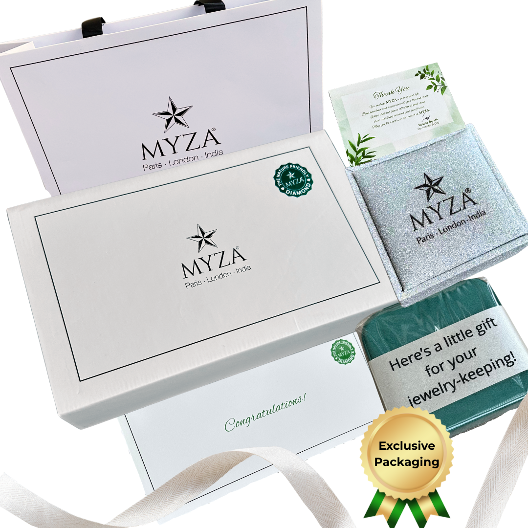 MYZA LAB GROWN (CVD TYPE 2a) only diamonds are from the top 20 percent of the lab grown diamonds available across the globe. Our in-house finest graders and goldsmiths are committed to creating brilliant masterpieces with specialised techniques. MYZA diamond outshines a mined diamond with its clarity, purity, and lustre that lasts a lifetime just like an earth mined diamond.