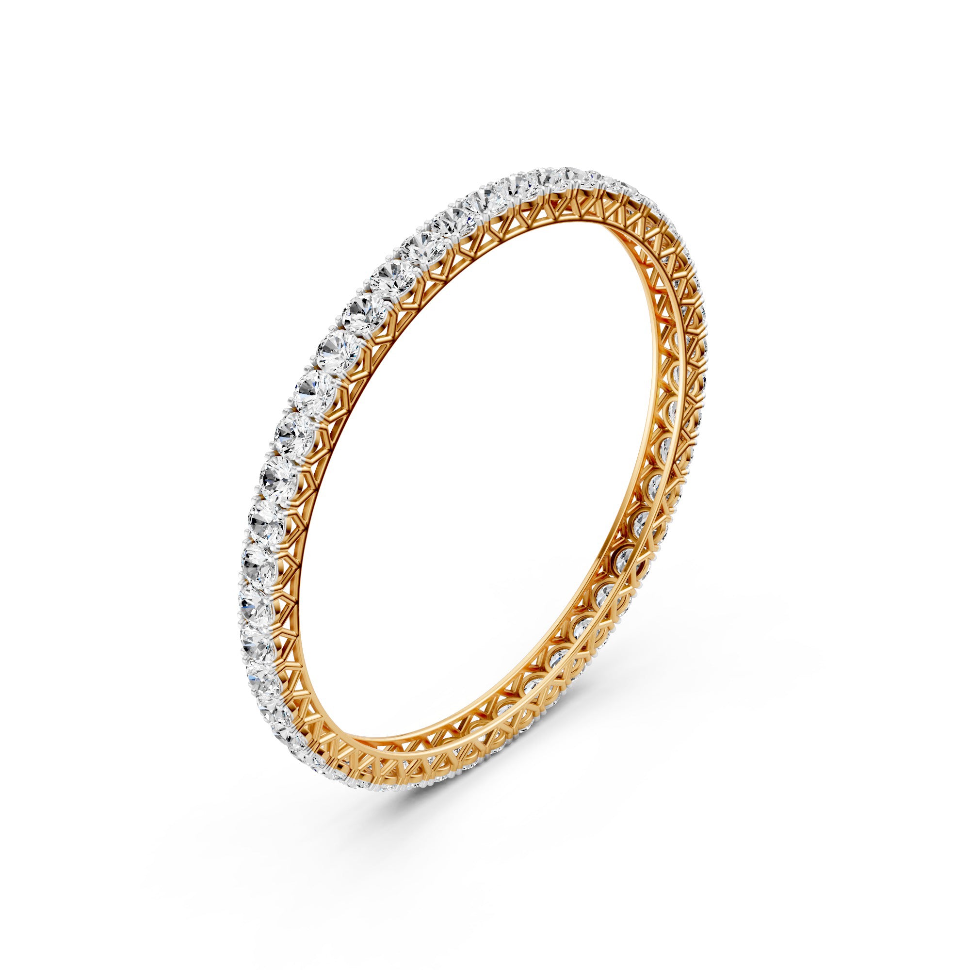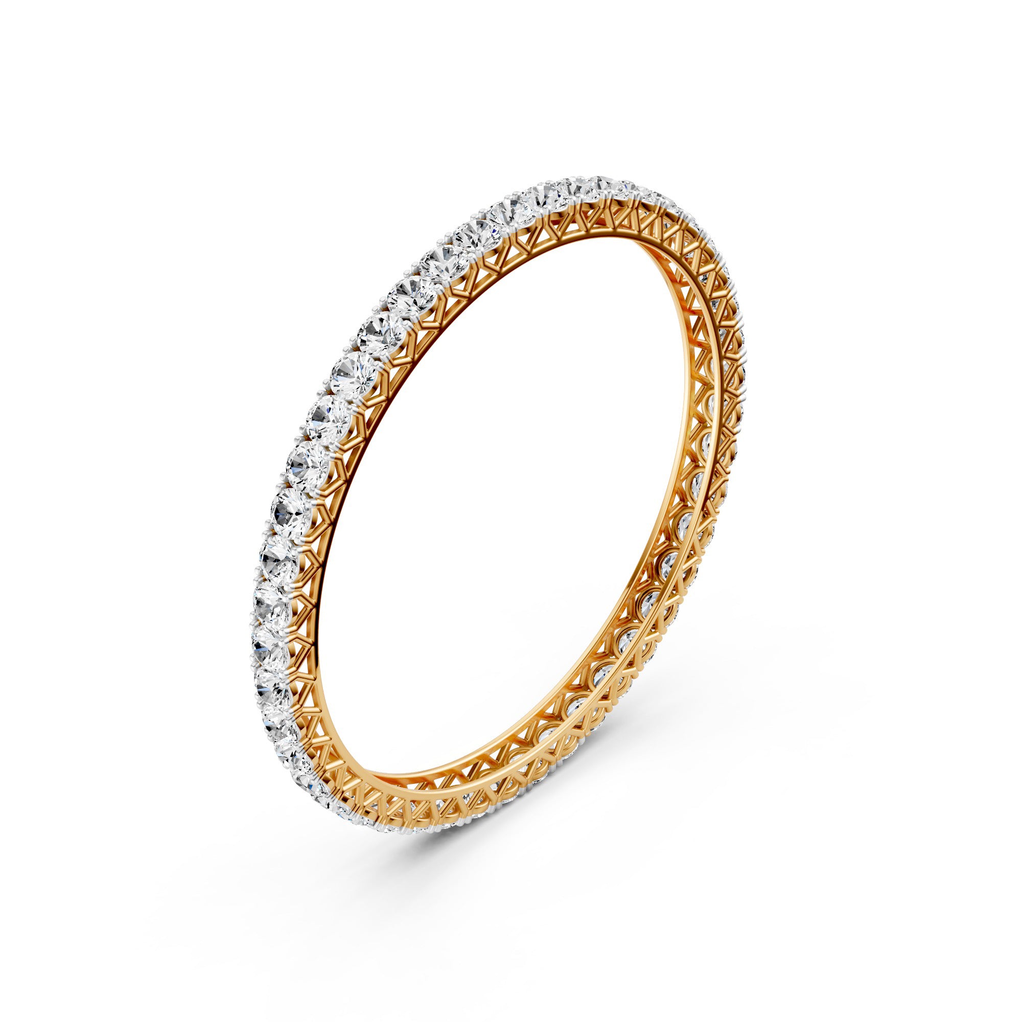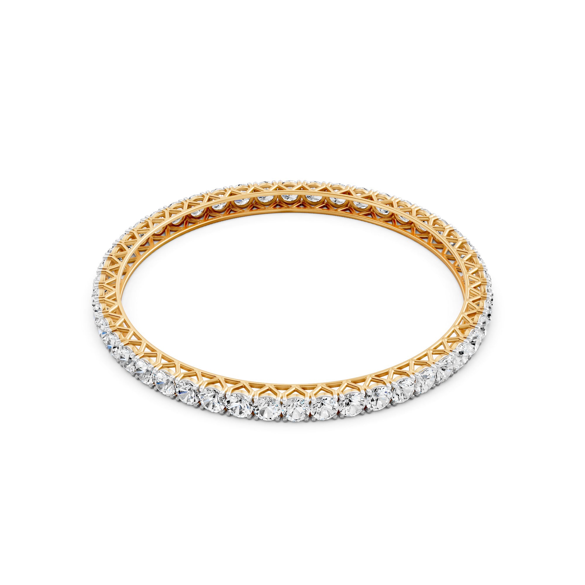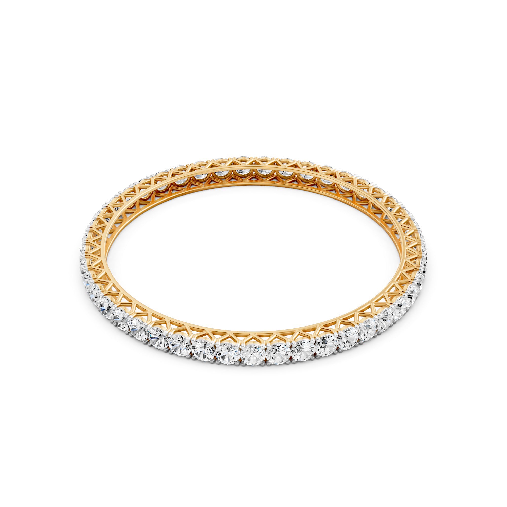 Featuring the timeless MYZA 16.2 to 17.64 Carats (36 Cent Each) MYZA Certified Lab Diamond Bangle in 18K Hallmark Yellow Gold