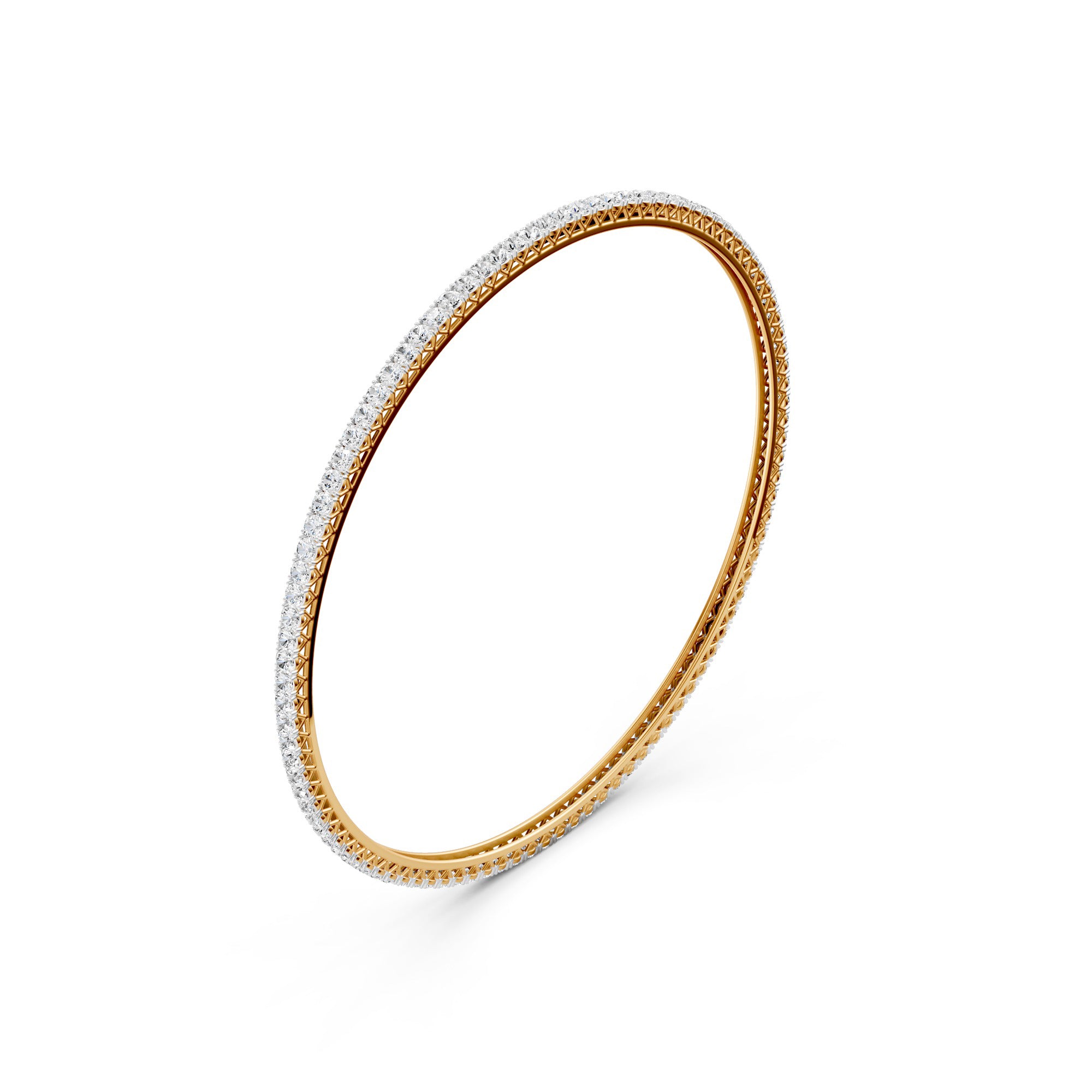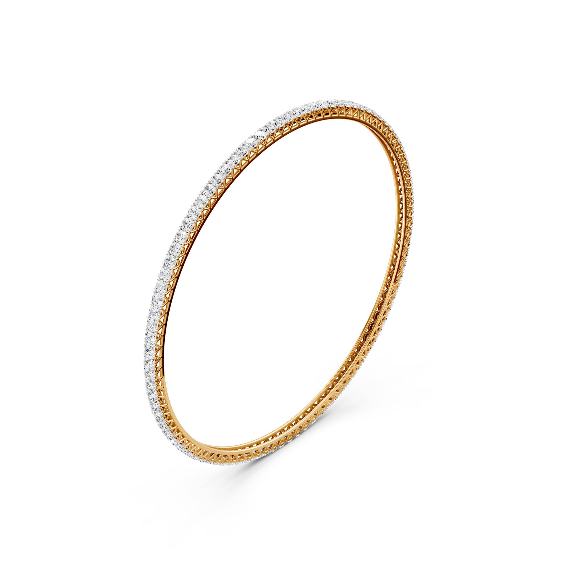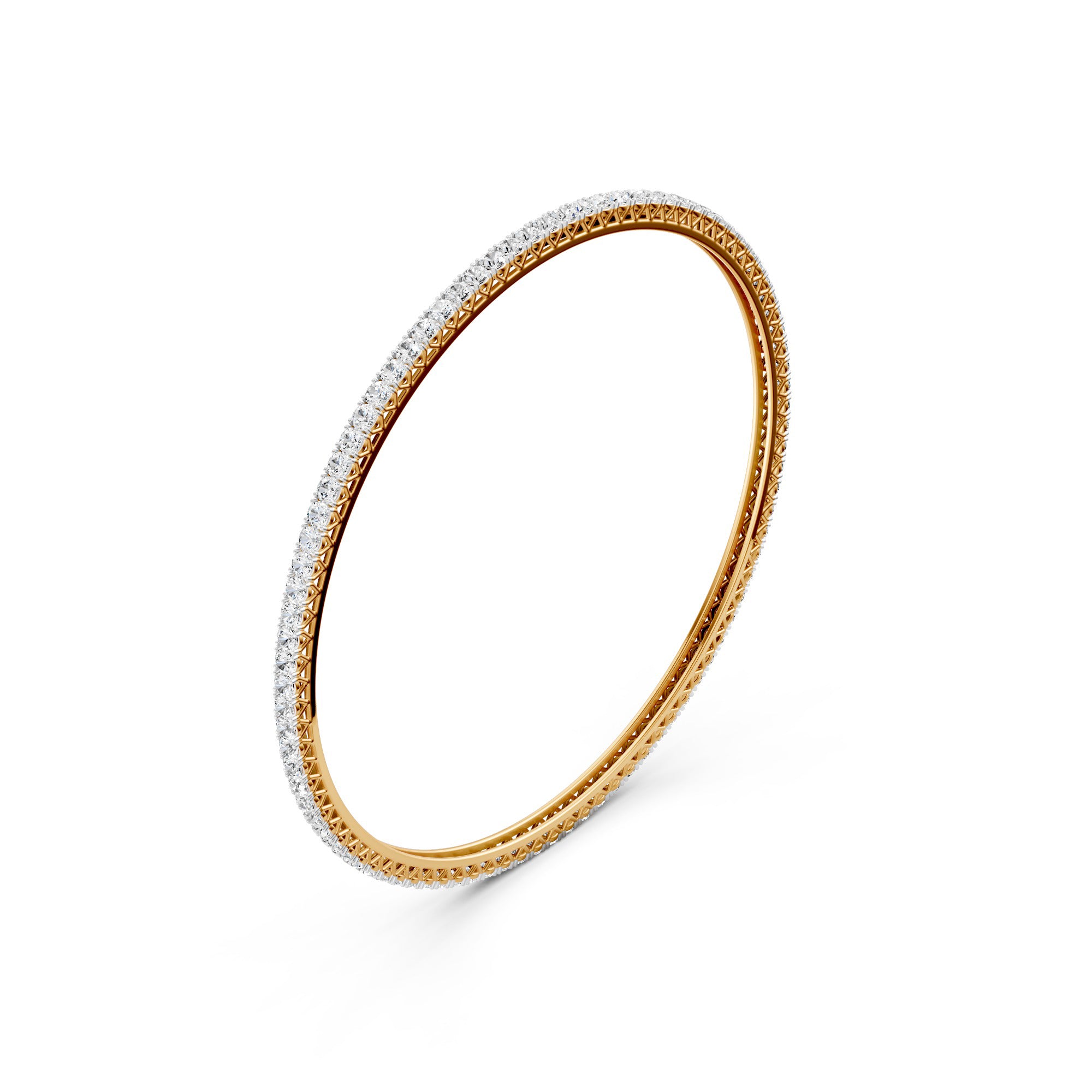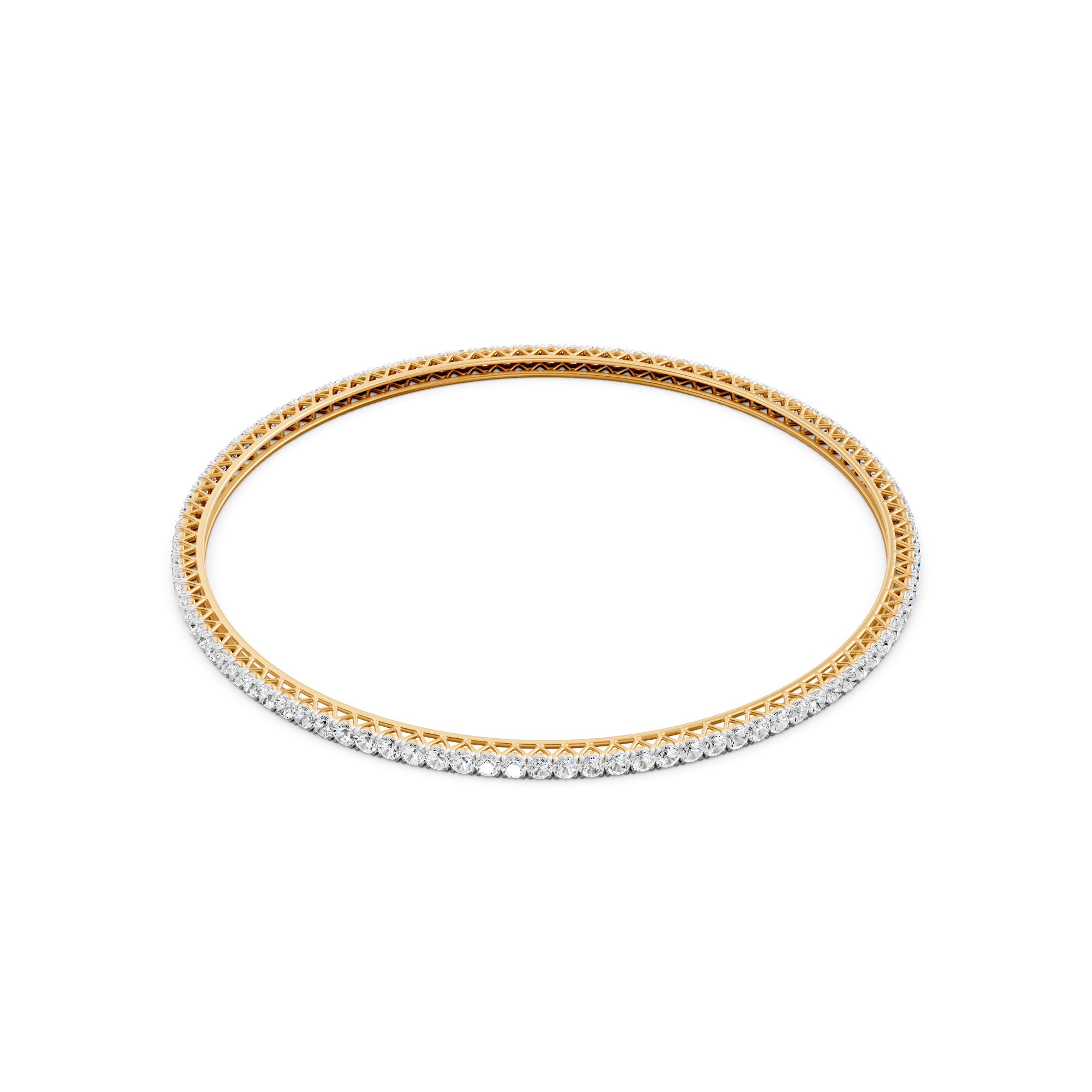Featuring the timeless MYZA 2.76 to 4.98 Carats (3 Cent Each) MYZA Certified Lab Diamond Bangle in 18K Hallmark Yellow Gold