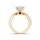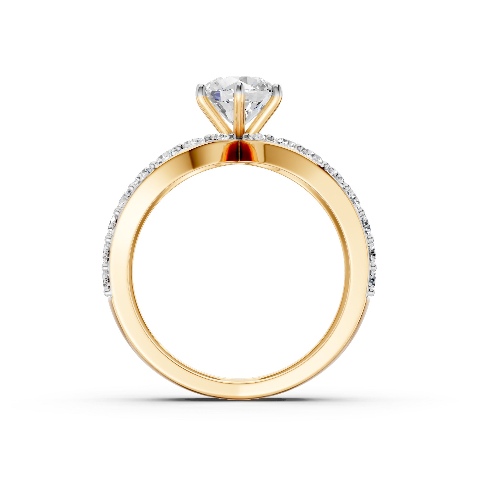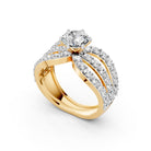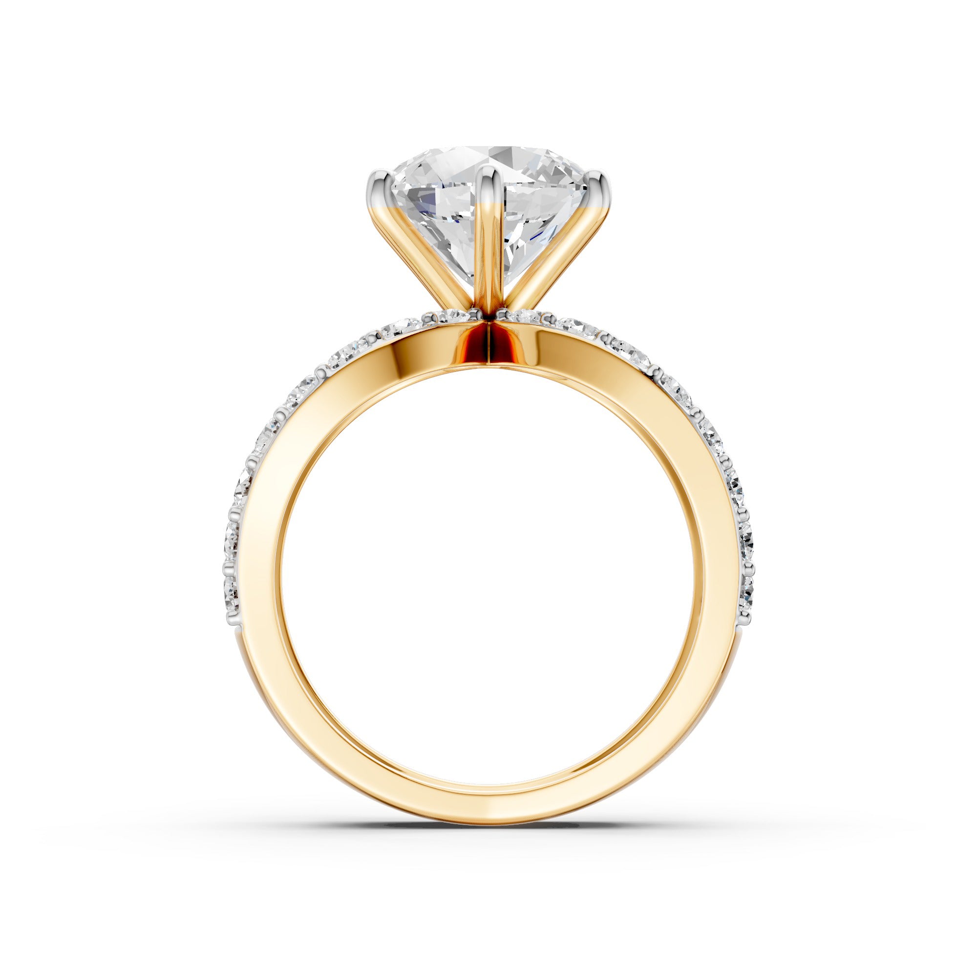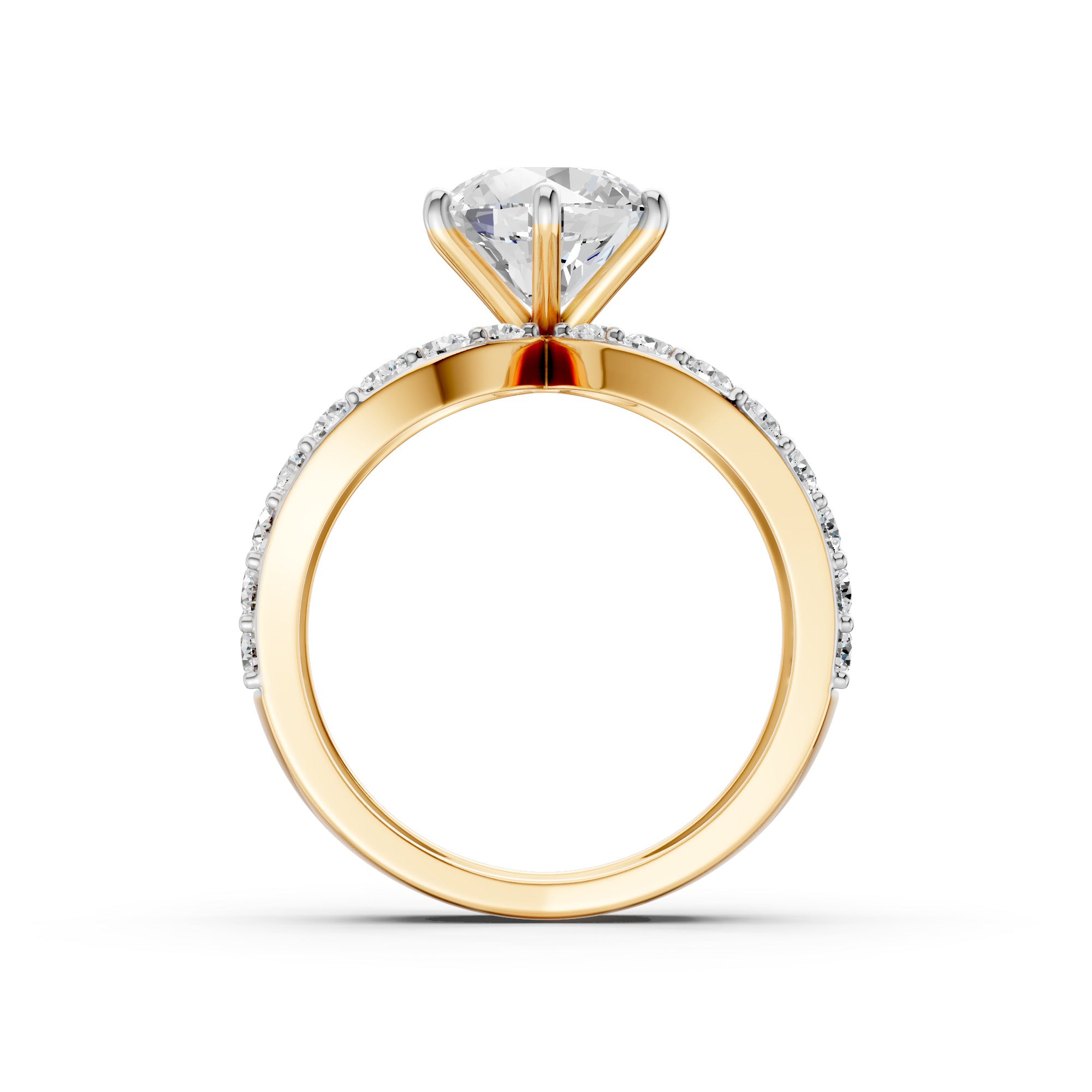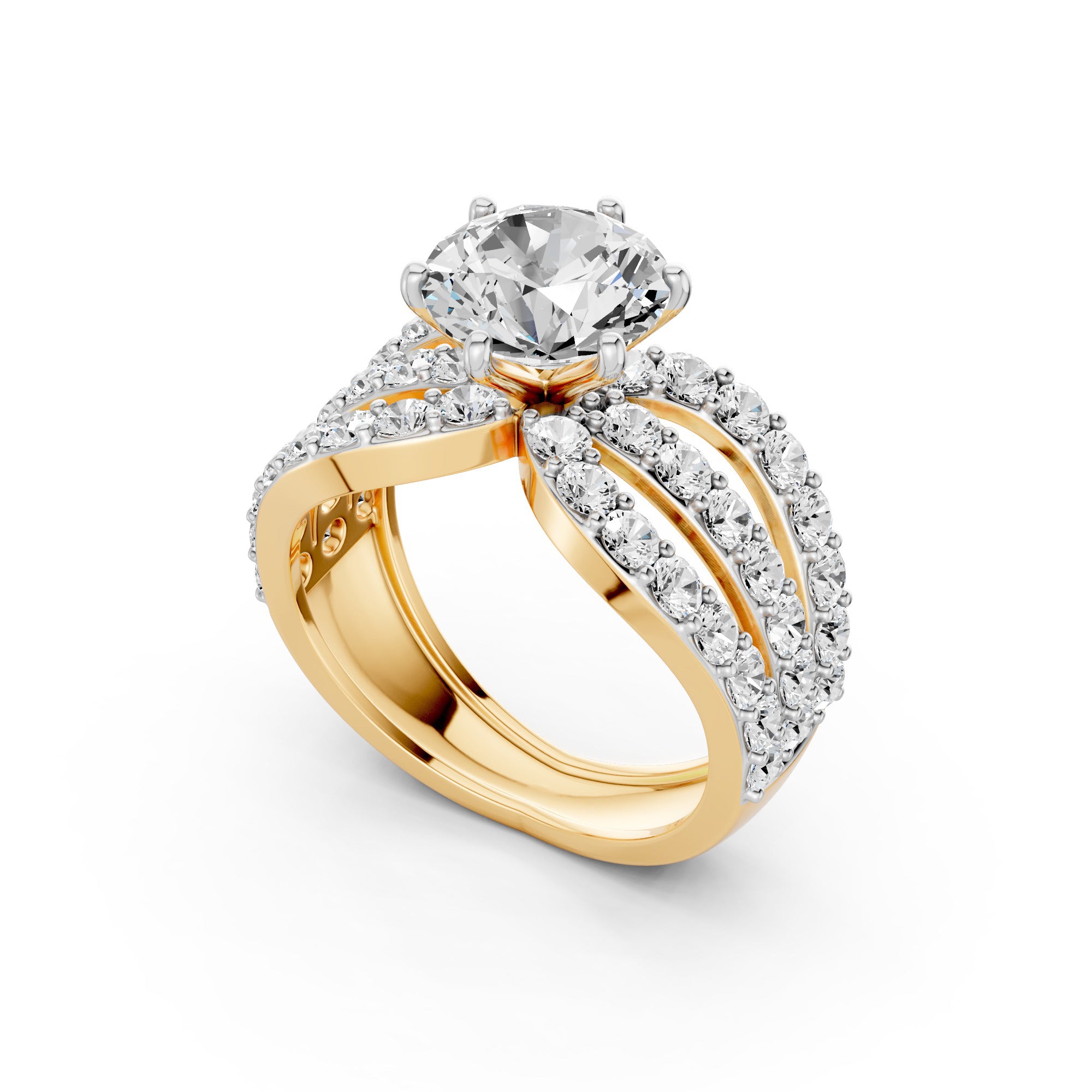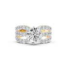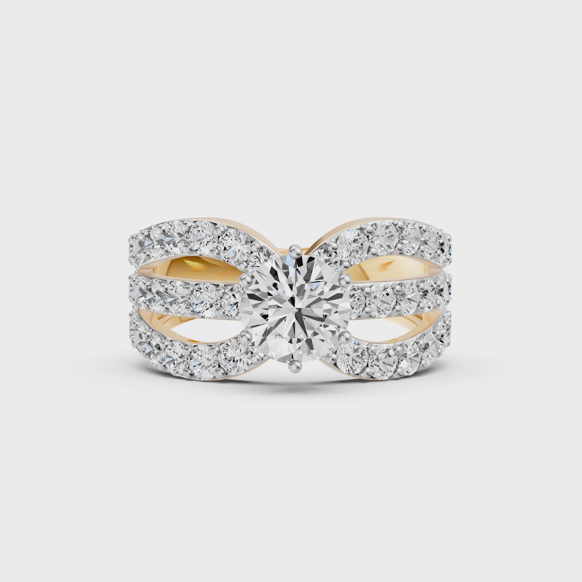 Introducing the exquisite MYZA Split Shank Round Cut Ring featuring IGI-certified lab-grown diamond, meticulously set in 18K hallmark yellow gold.