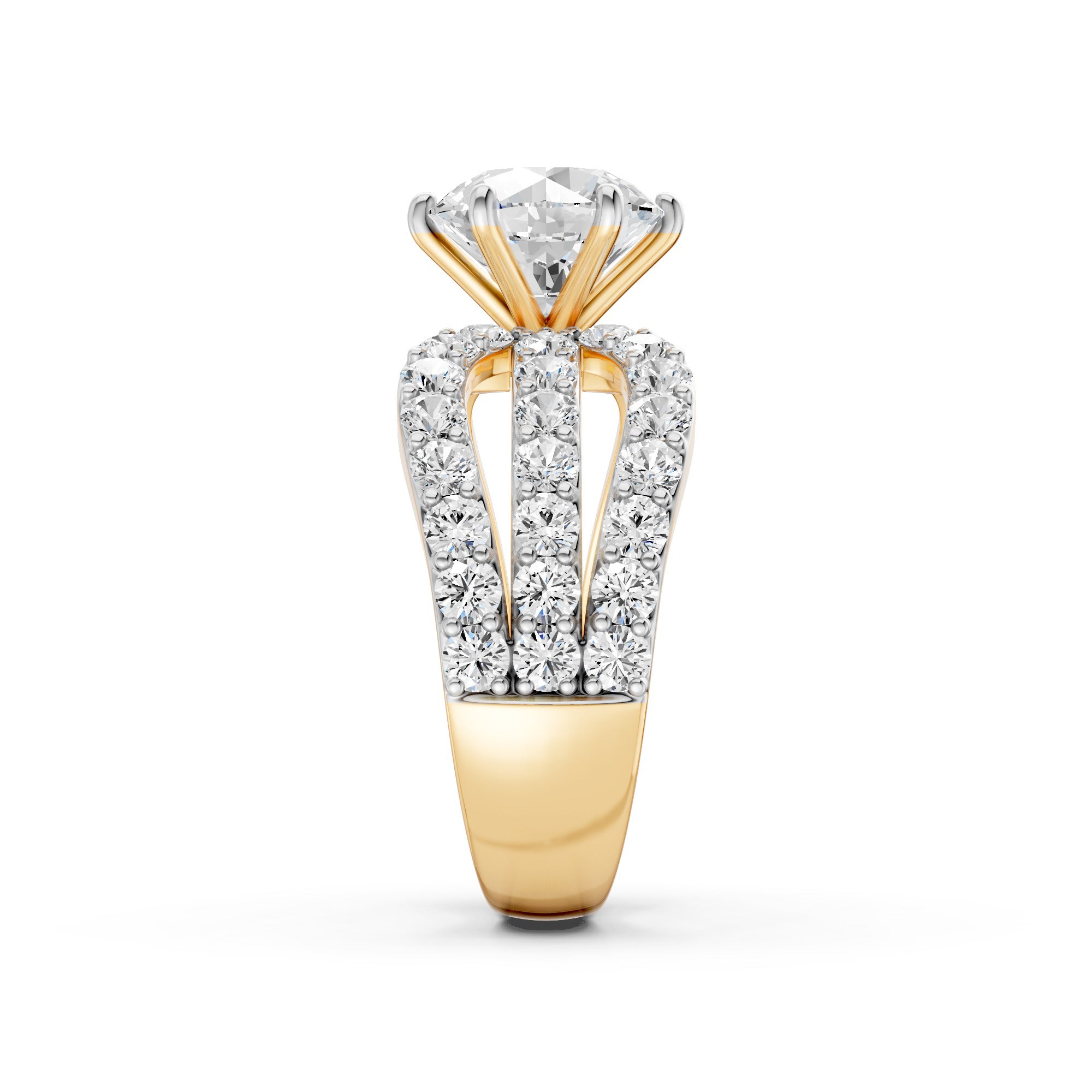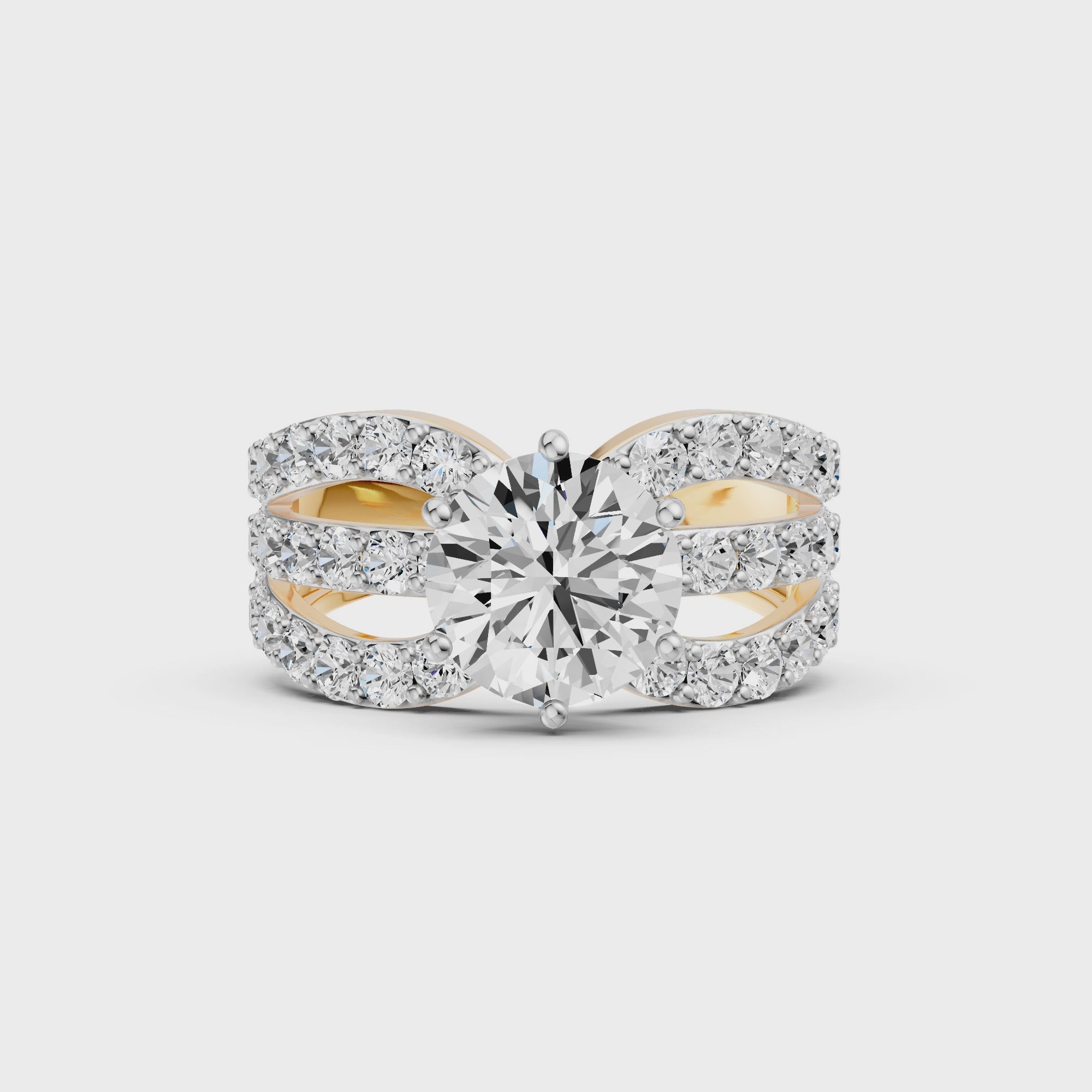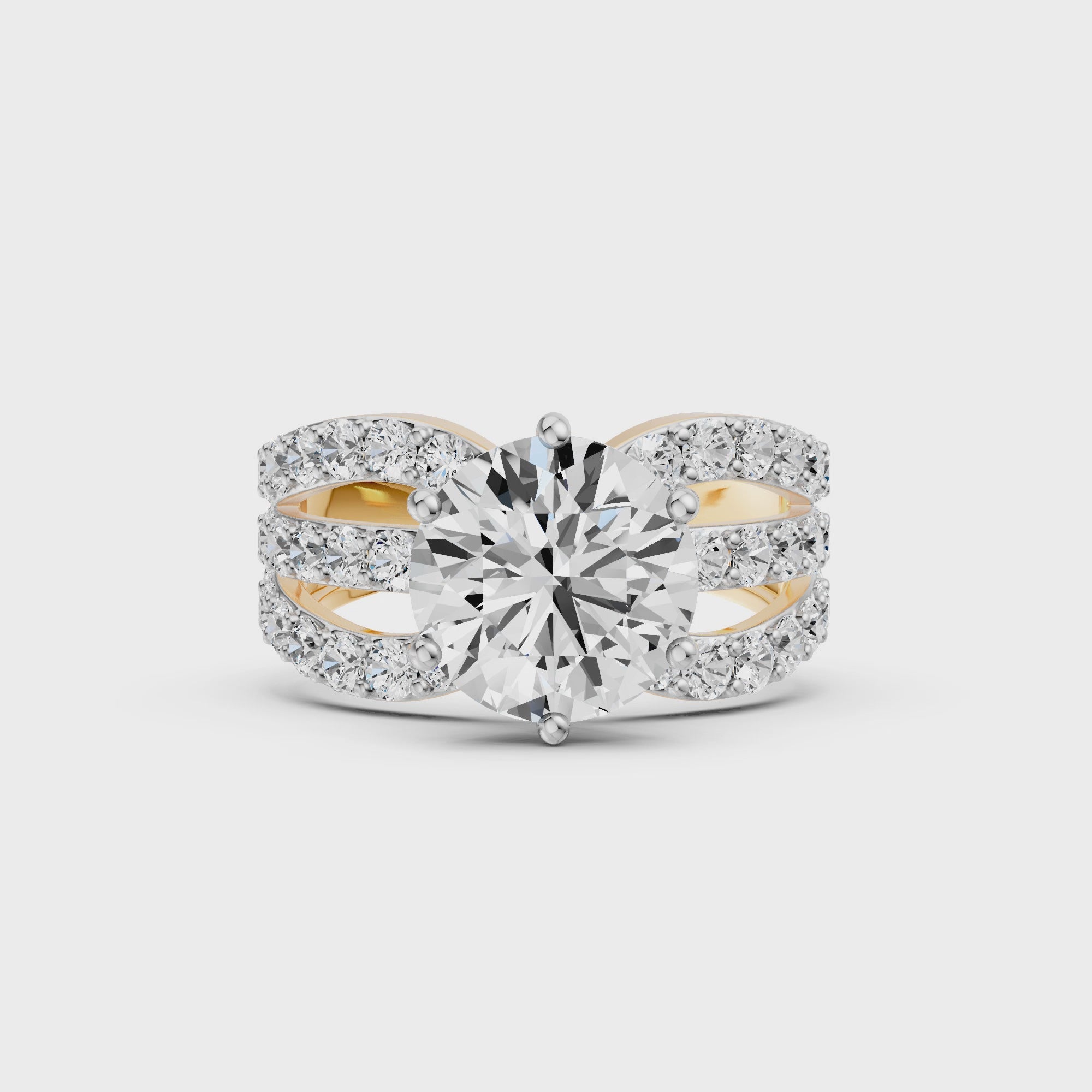 1 to 4 Carats MYZA (DVVS2) IGI Certified Split Shank Round Cut Lab-Grown Diamond Ring in 18K Hallmark Gold