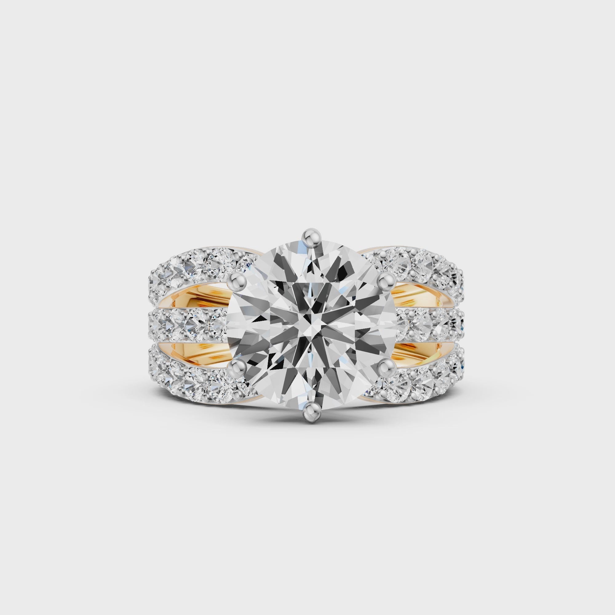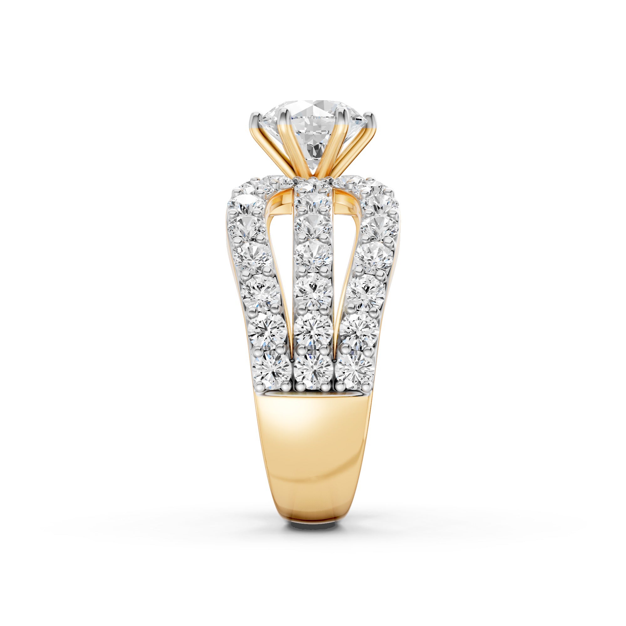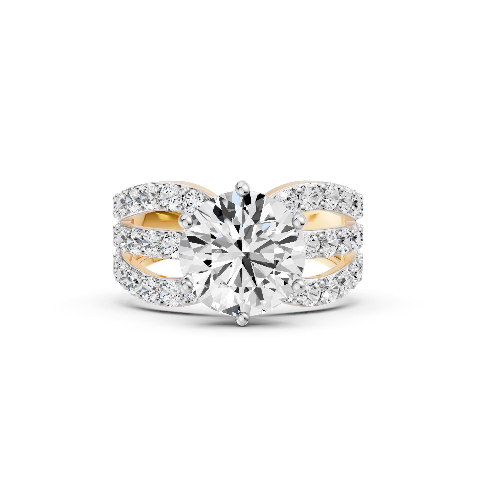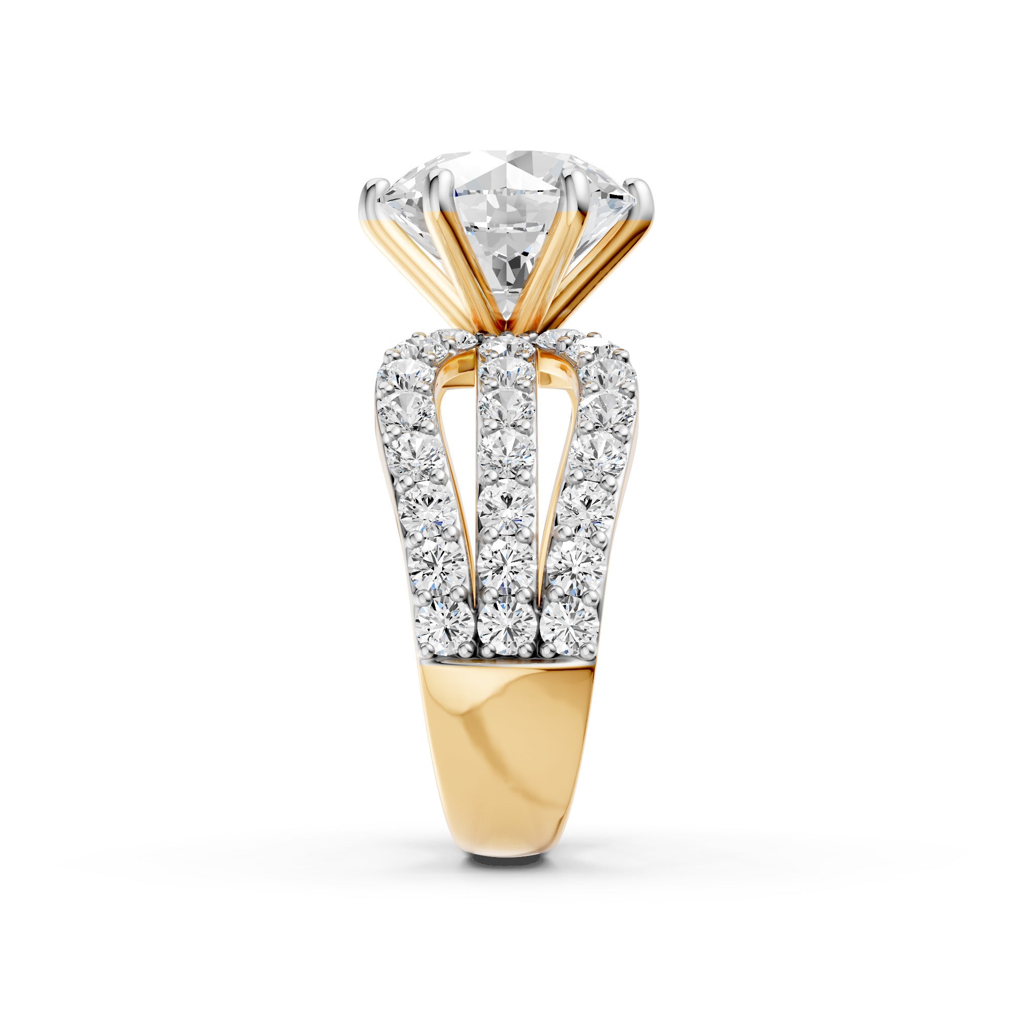 1 to 4 Carats MYZA (DVVS2) IGI Certified Split Shank Round Cut Lab-Grown Diamond Ring in 18K Hallmark Gold