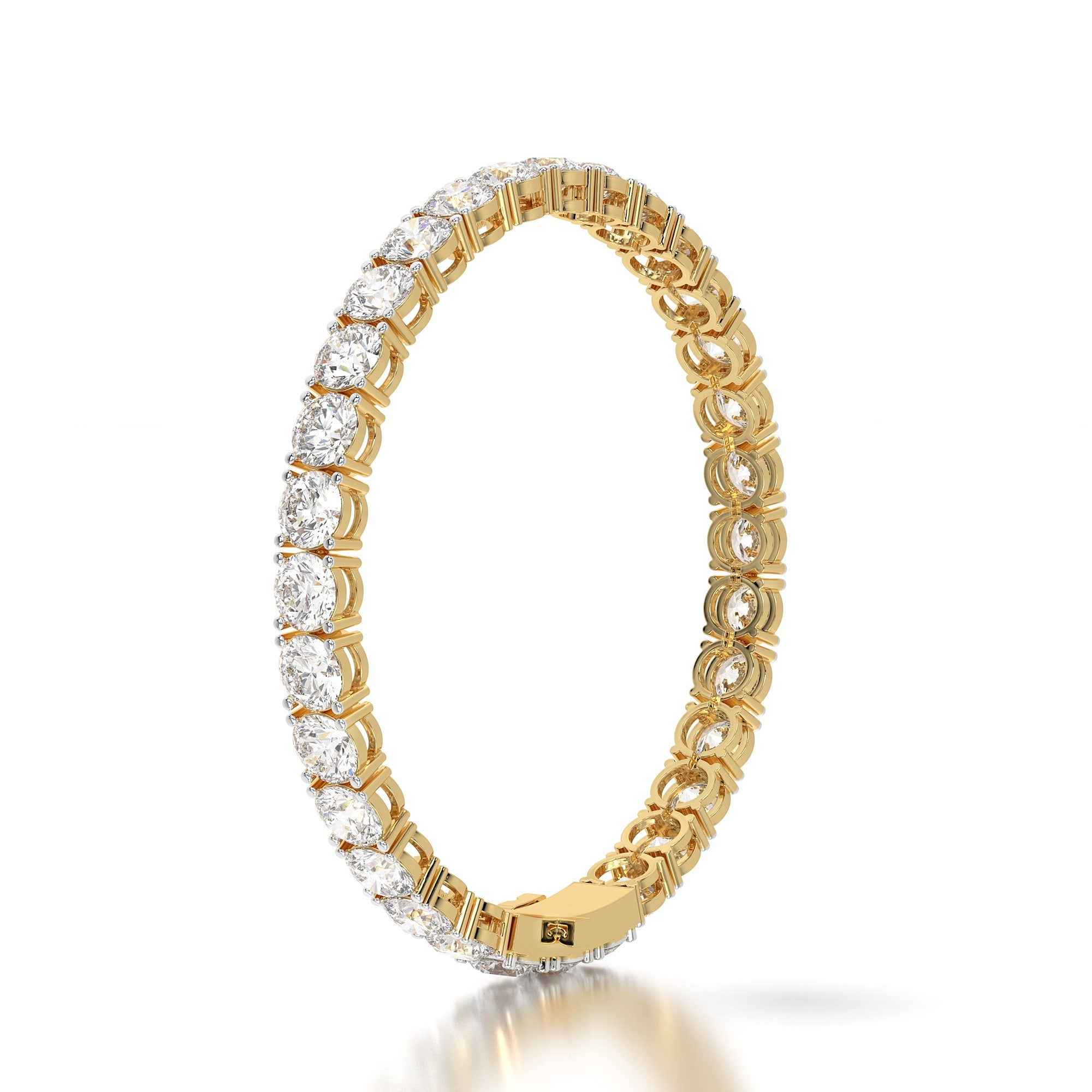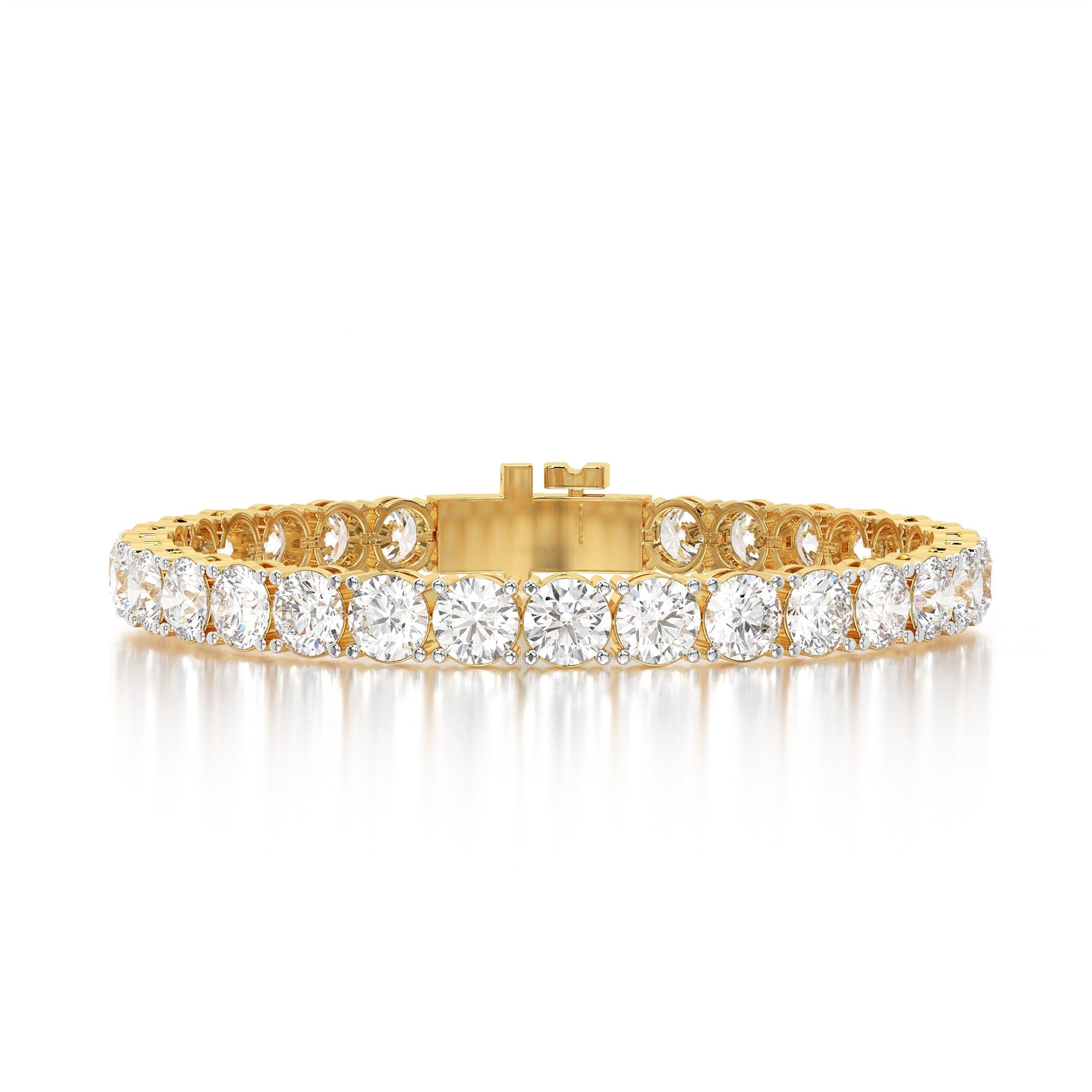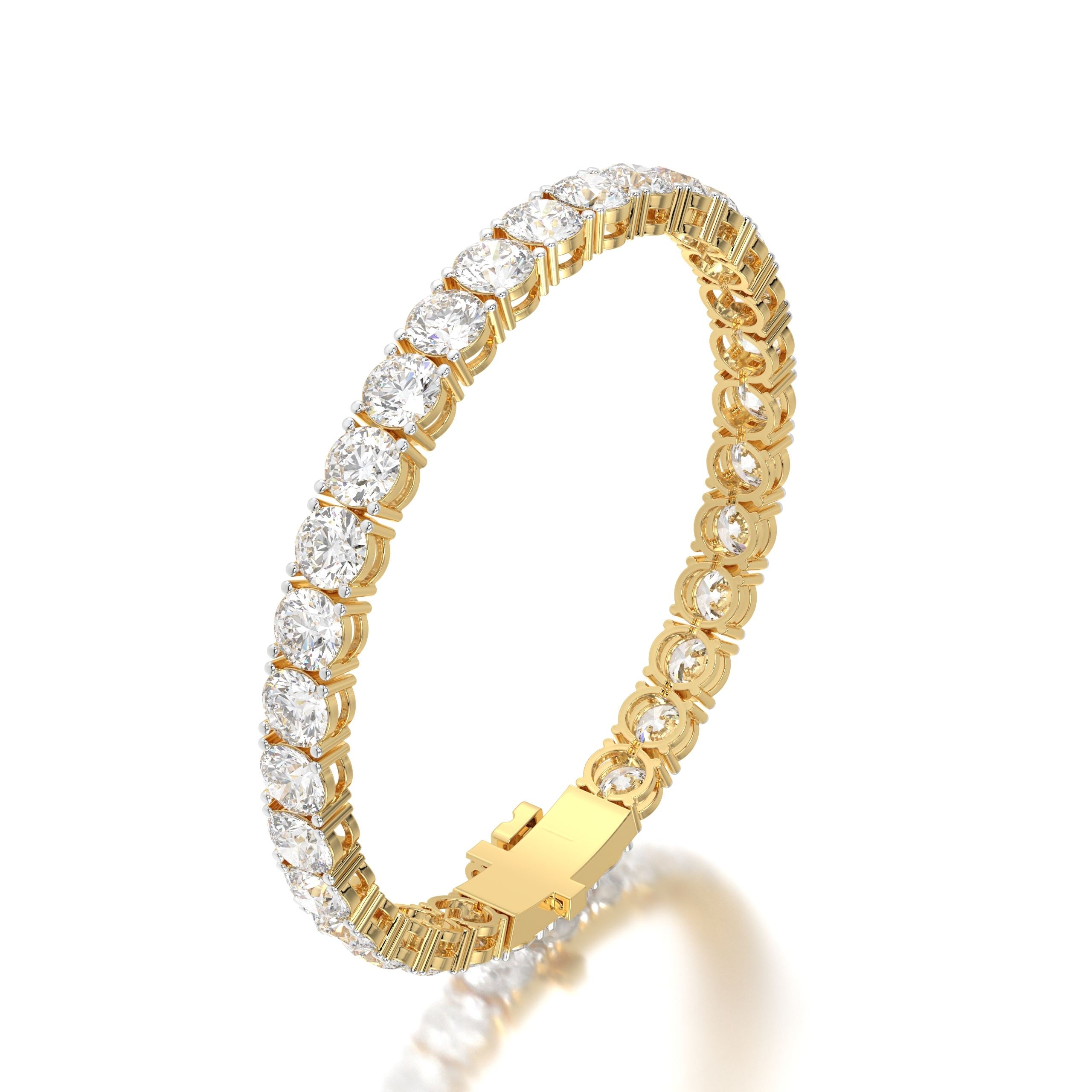Featuring the timeless MYZA 16 Carat MYZA IGI Certified Lab Round Diamond Tennis Bracelet in 18K Hallmark Gold.