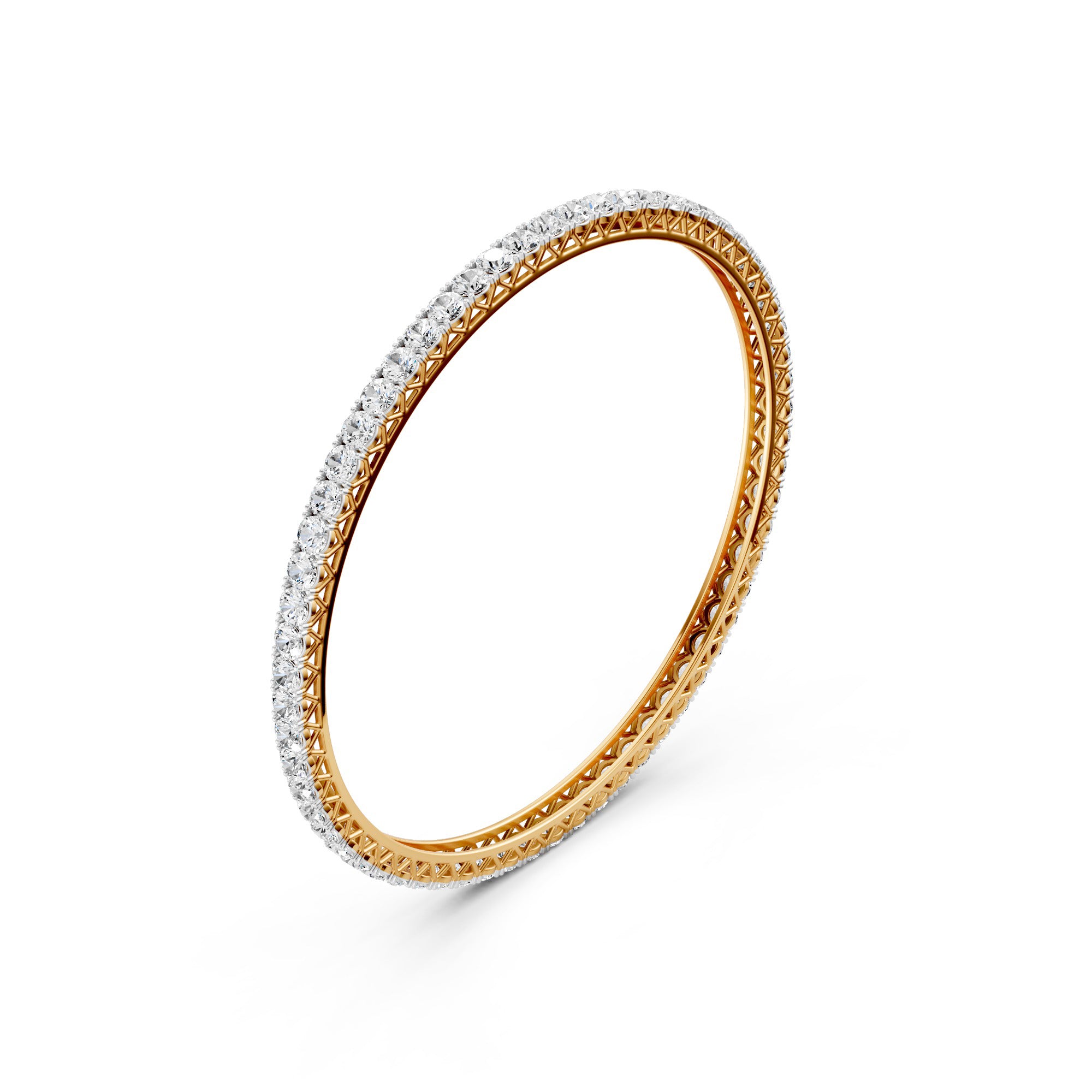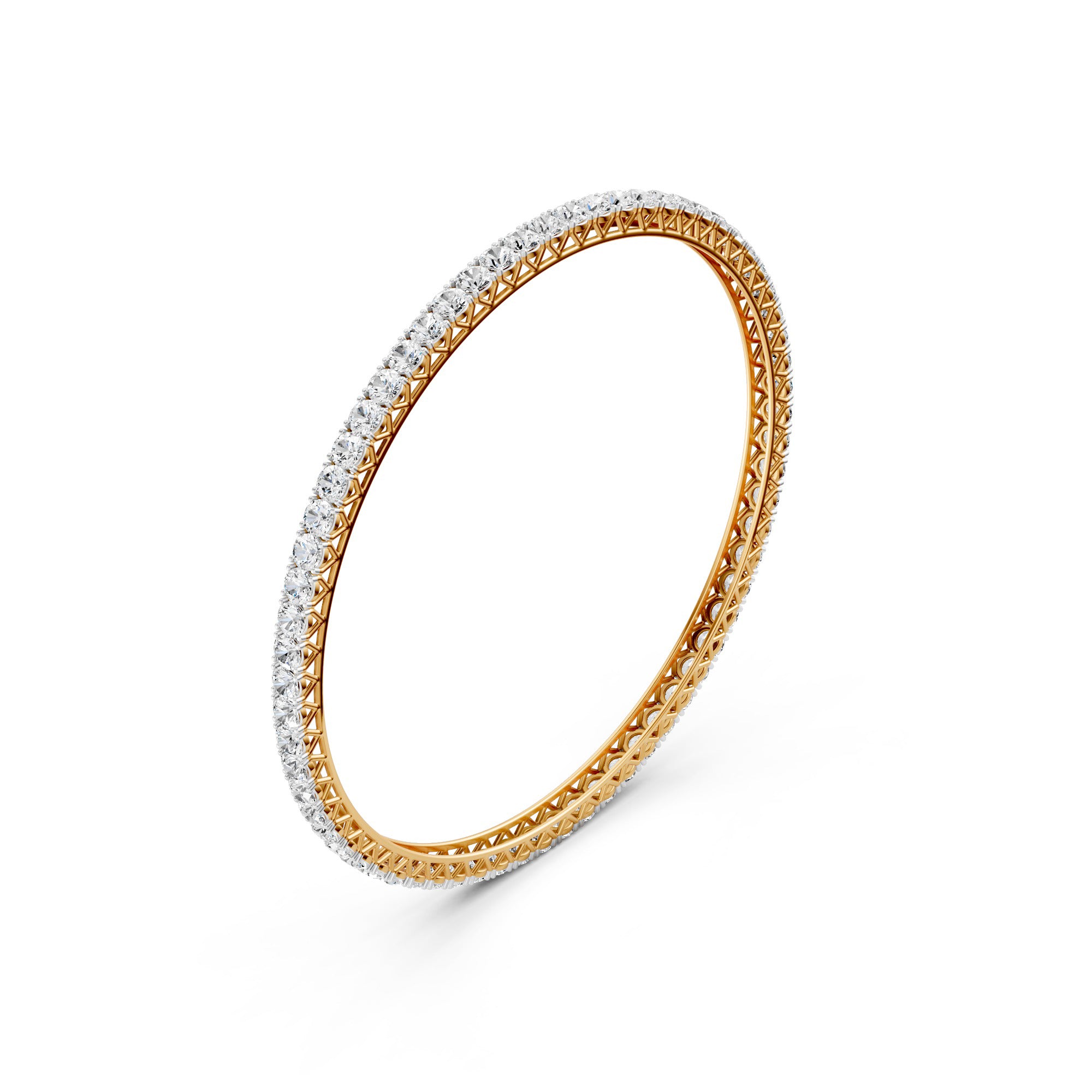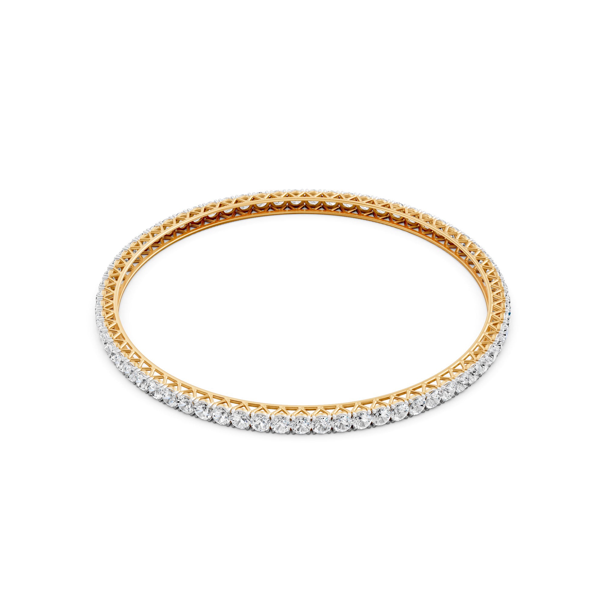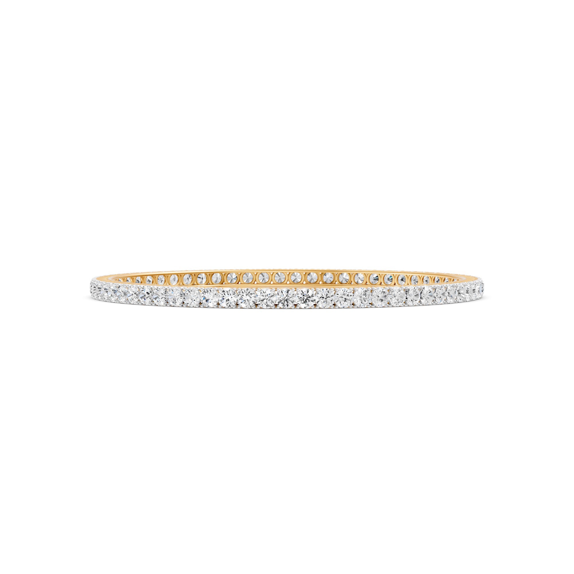 Featuring the timeless MYZA 6.4 to 7 Carats (10 Cent Each) MYZA Certified Lab Grown Diamond Bangle in 18K Hallmark Yellow Gold