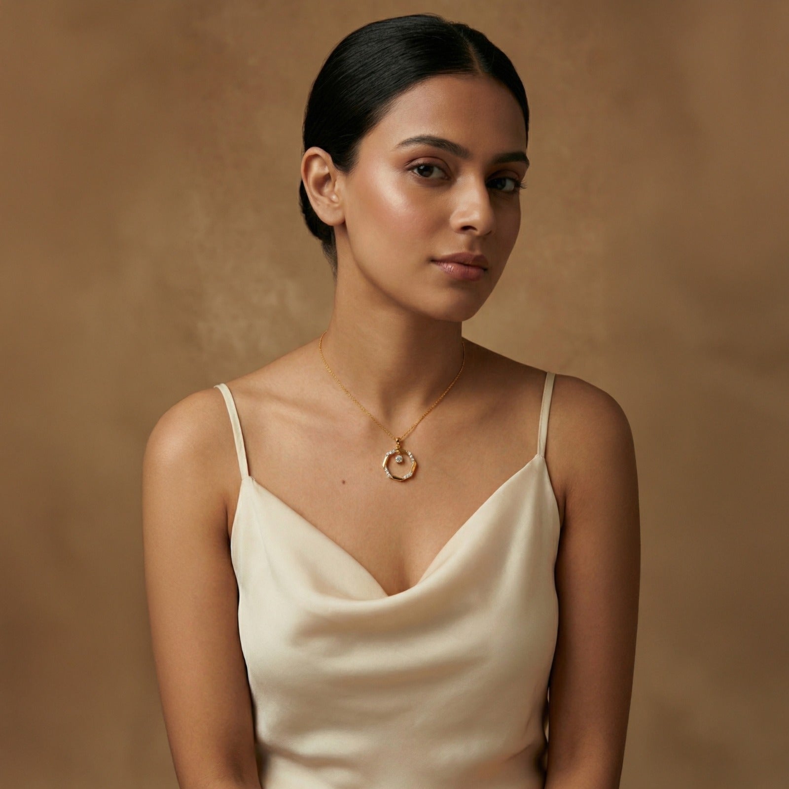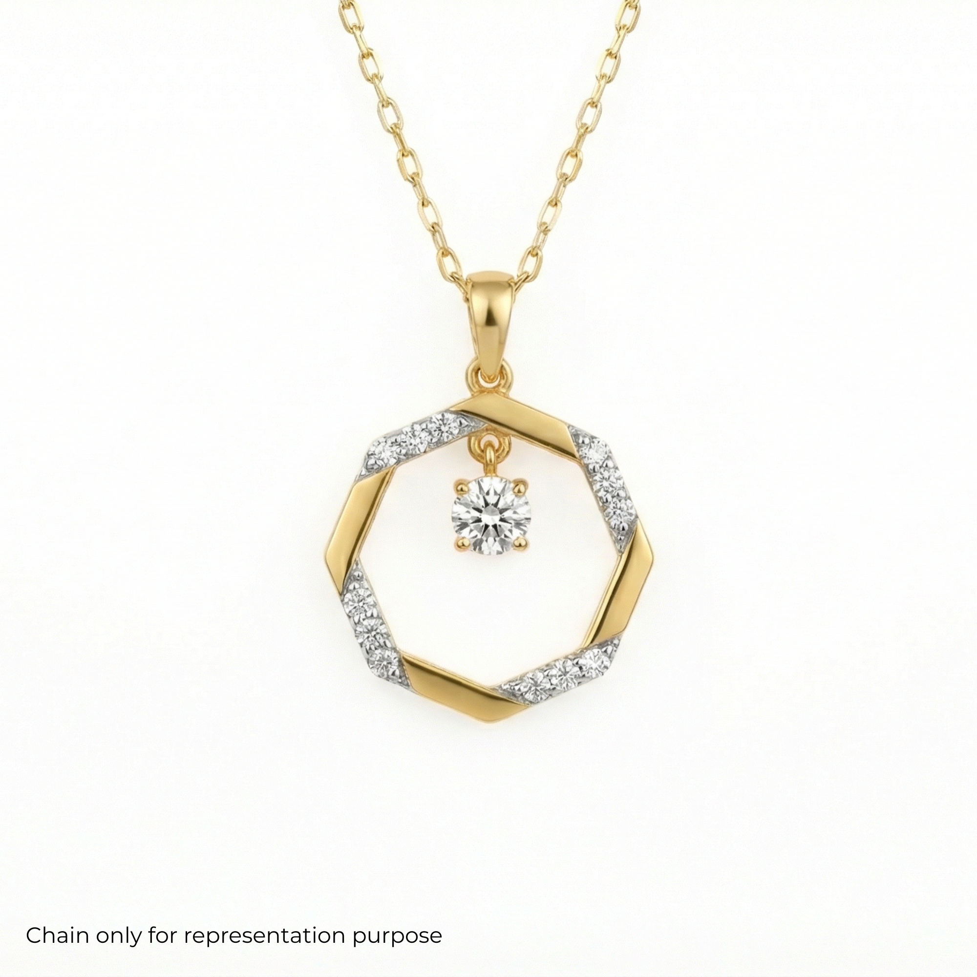 This dazzling MYZA pendant showcases an IGI-certified, eco-friendly lab-grown round diamond elegantly set in premium 18K hallmark yellow gold, radiating timeless beauty.