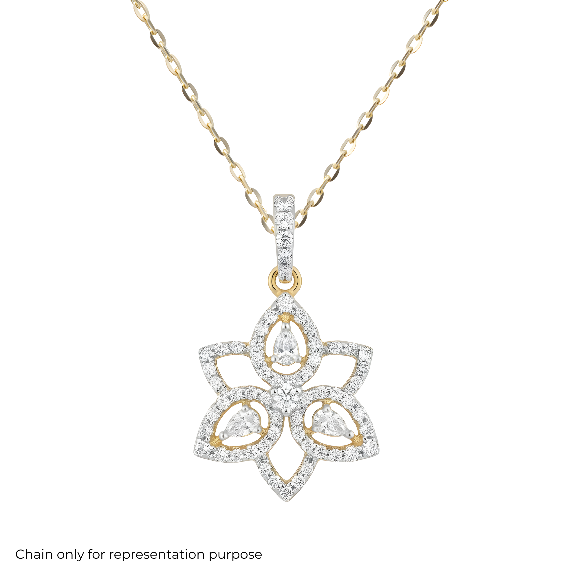 1.39 Carats MYZA IGI Certified Lab-Grown Flower Round Cut Diamond Pendant in 18K Hallmarked Gold