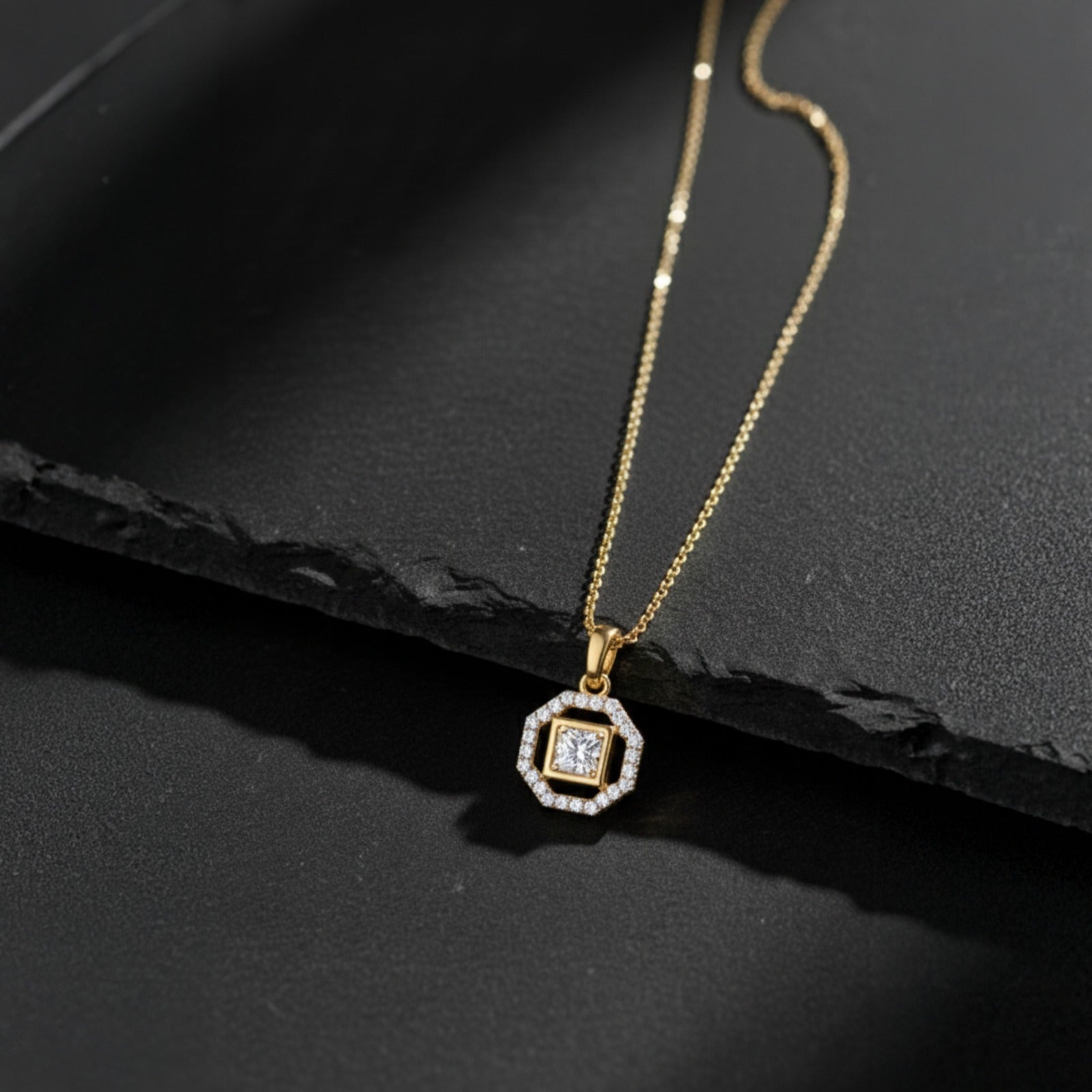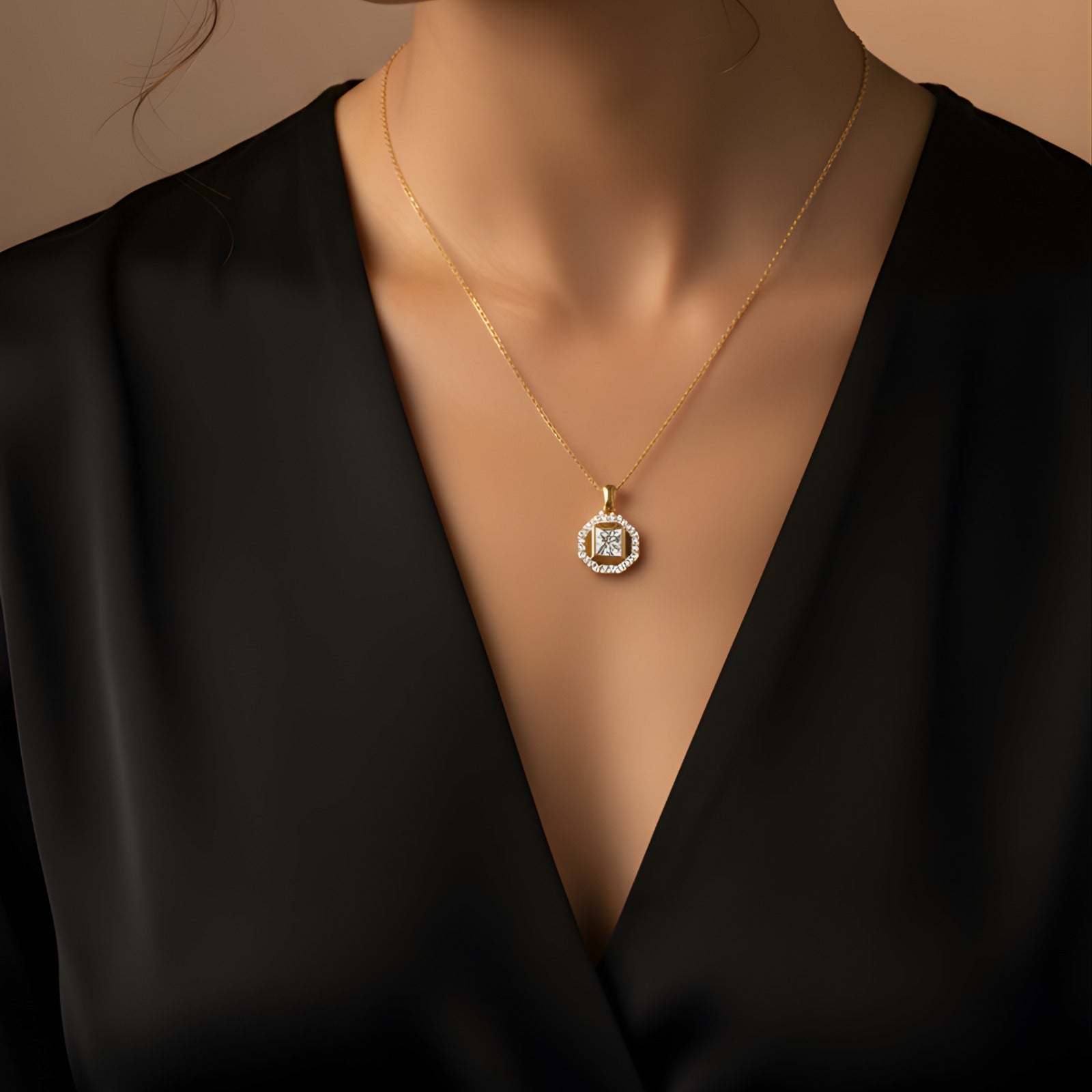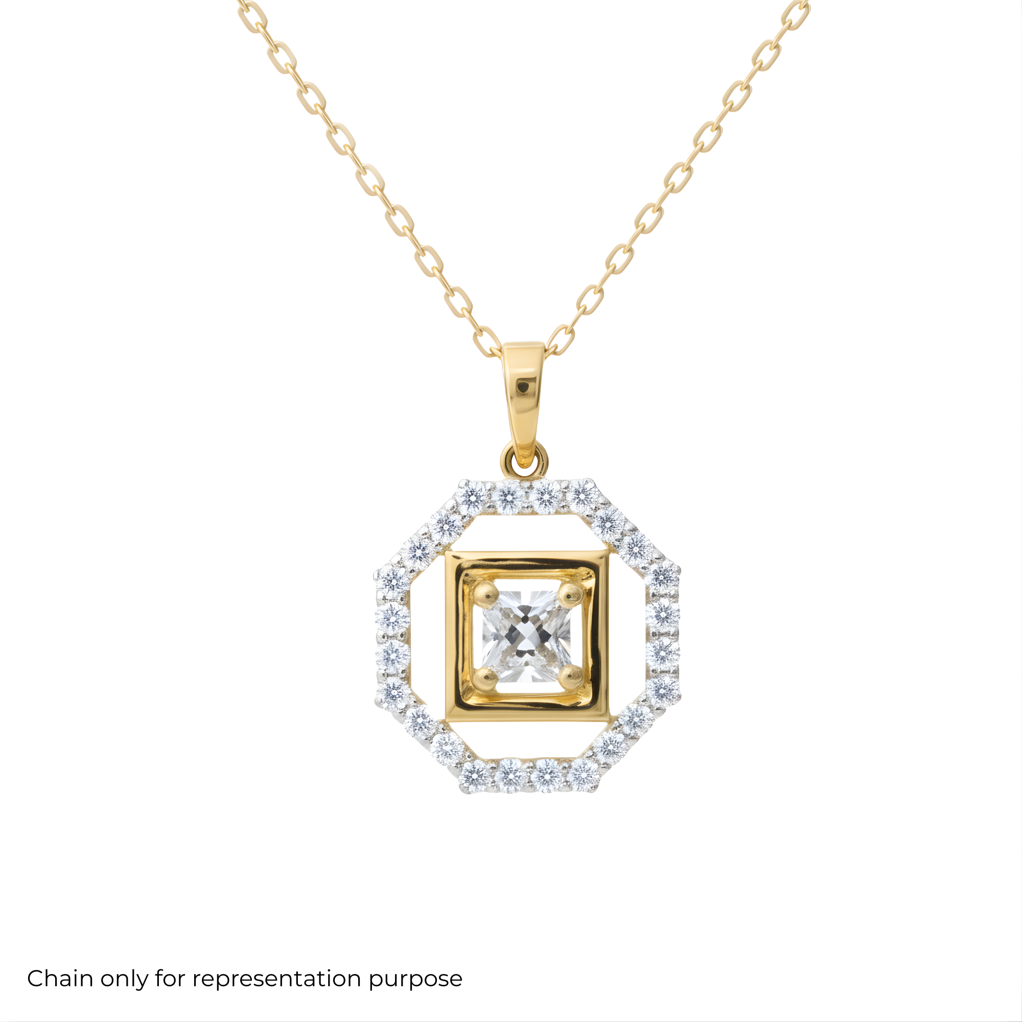 1 to 5 Carats MYZA IGI Certified Princess Cut Lab-Grown Diamond Necklace with Chain in 18K Hallmark Gold