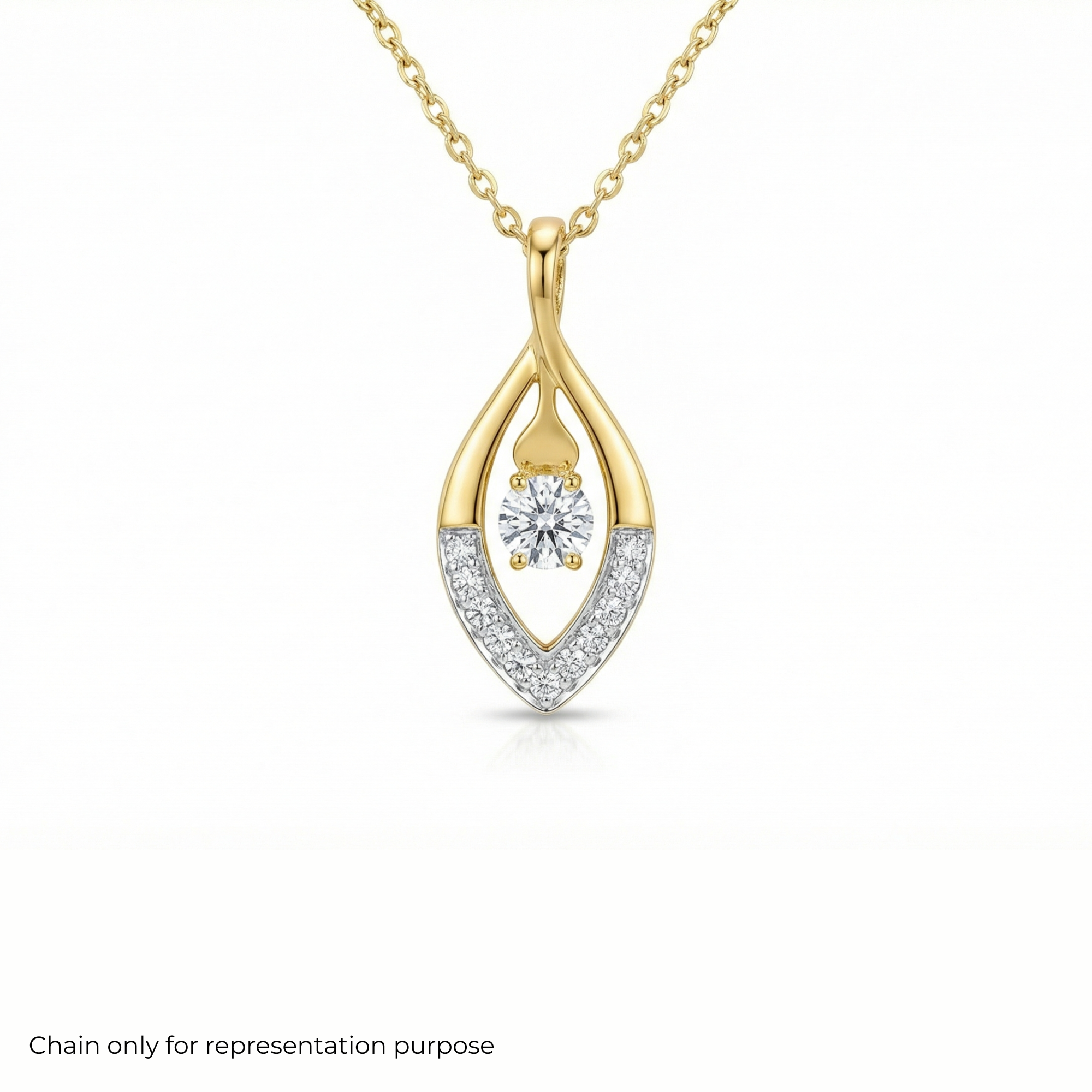 This dazzling MYZA pendant showcases an IGI-certified, eco-friendly lab-grown round diamond elegantly set in premium 18K hallmark yellow gold, radiating timeless beauty.