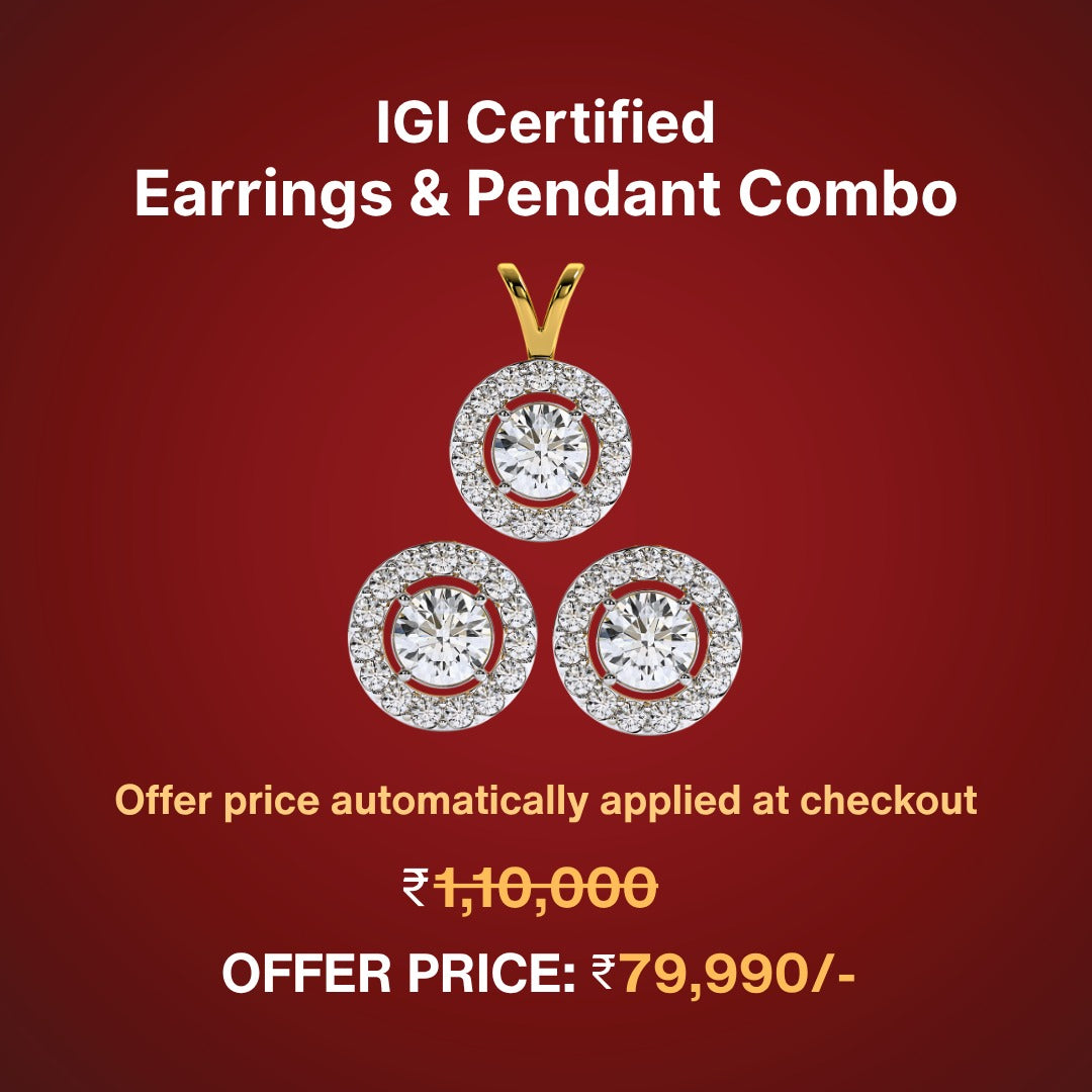 Combo Offer : 2.2 Carat MYZA IGI Certified Lab-Grown Round Diamond Pendant & Earrings Set in 14K Hallmark Gold