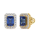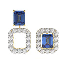 4 Carat (2 Carat Each x 2 Pcs) Convertible MYZA IGI Certified Emerald Cut Lab Grown Sapphire & Diamond Earrings in 18K Hallmark Gold