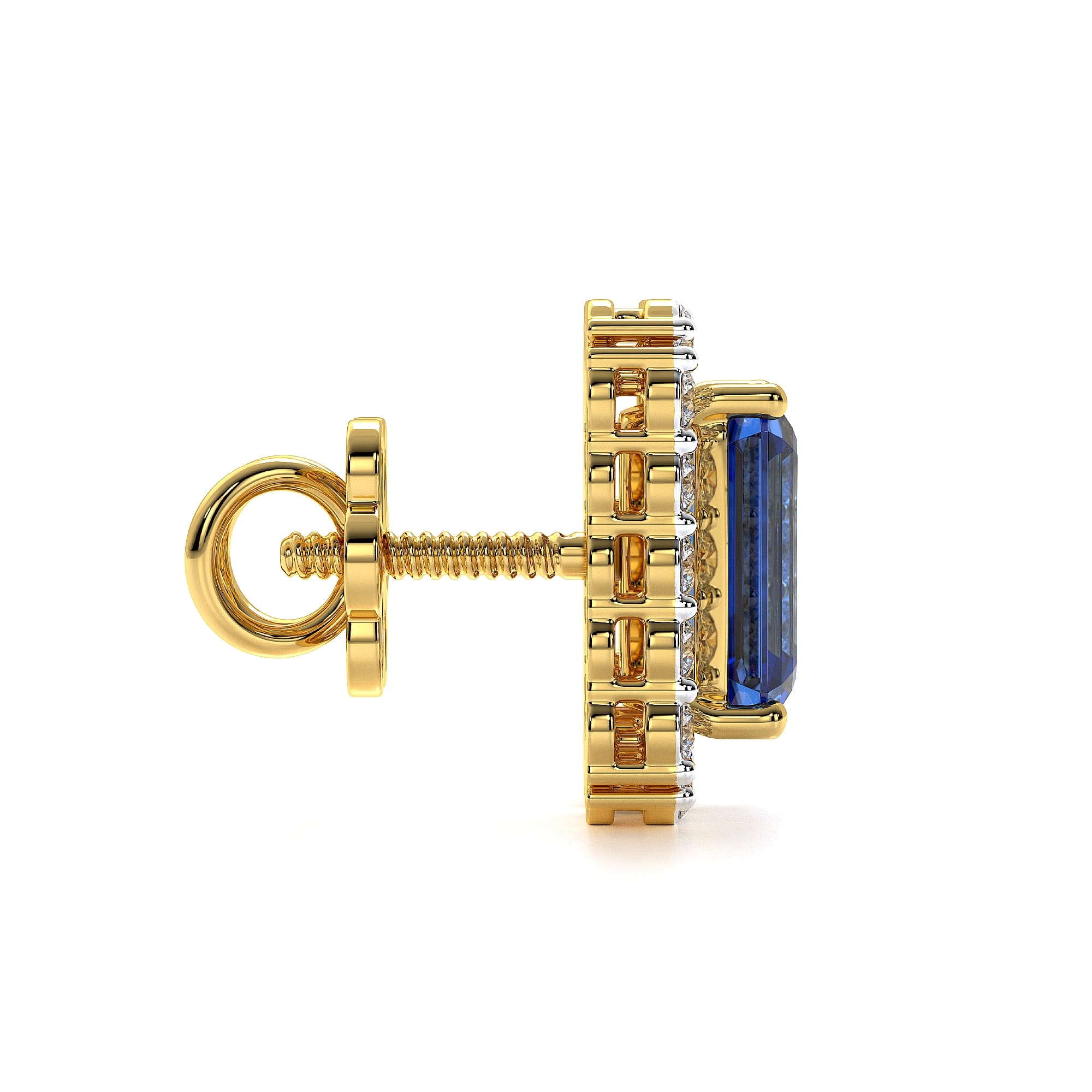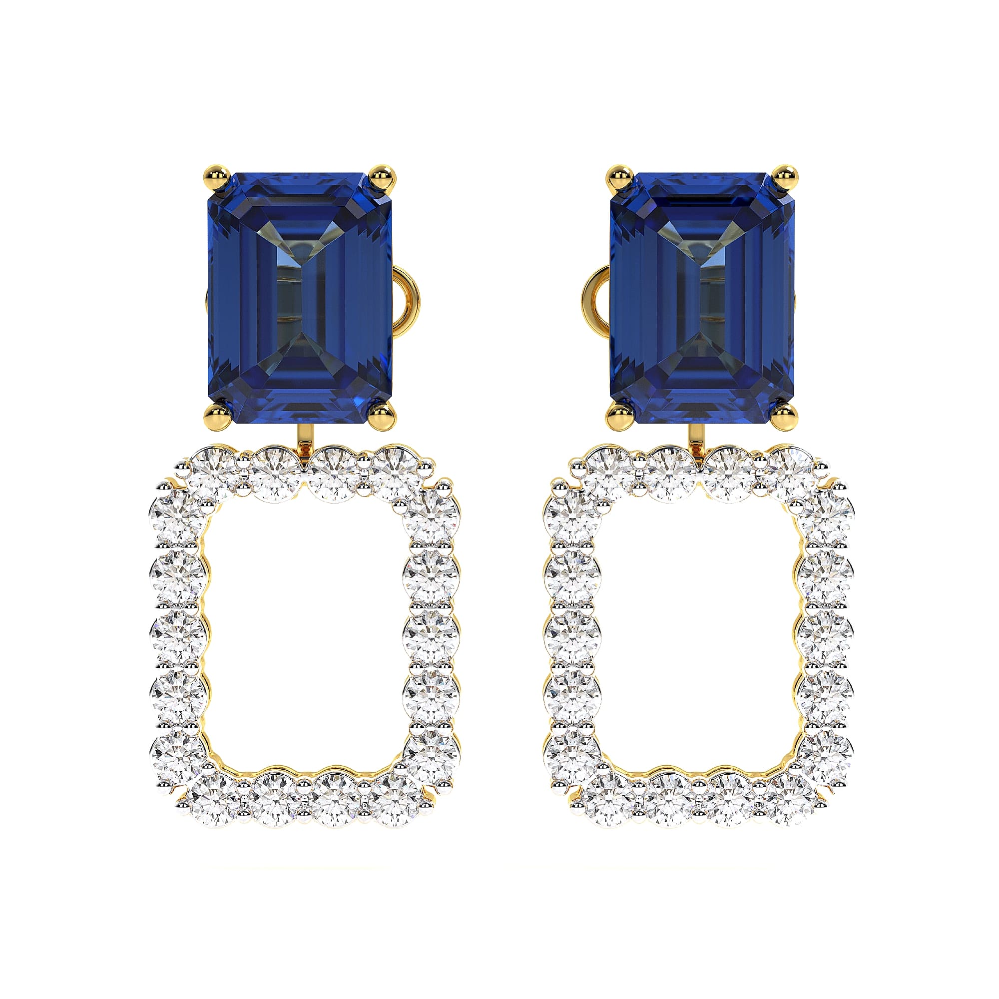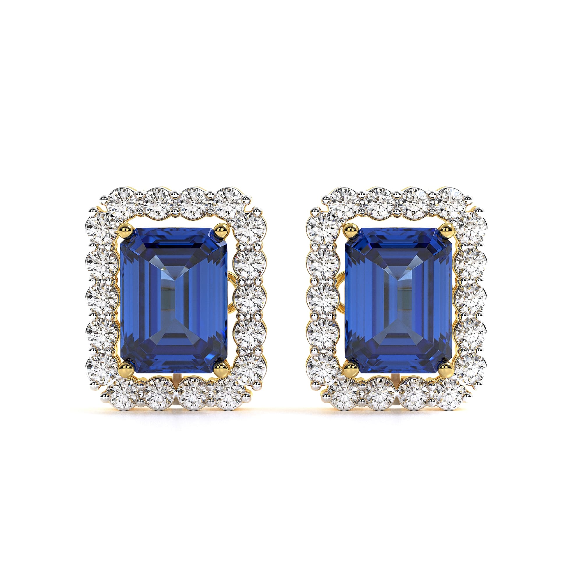 Featuring the timeless MYZA Emerald Cut Lab Grown Sapphire & Diamond Earrings with IGI-certified, lab-grown diamonds, elegantly designed in 18K hallmark yellow gold.