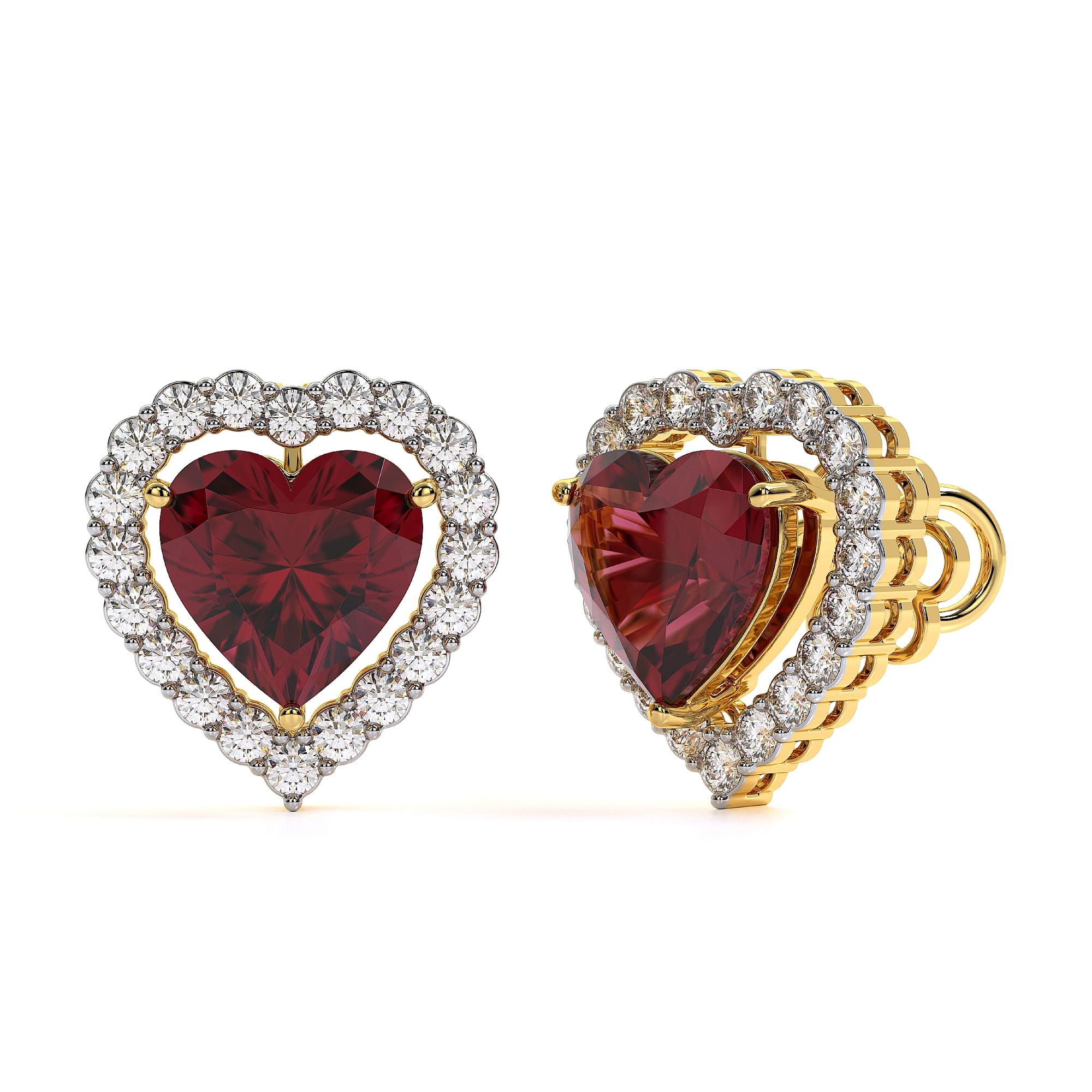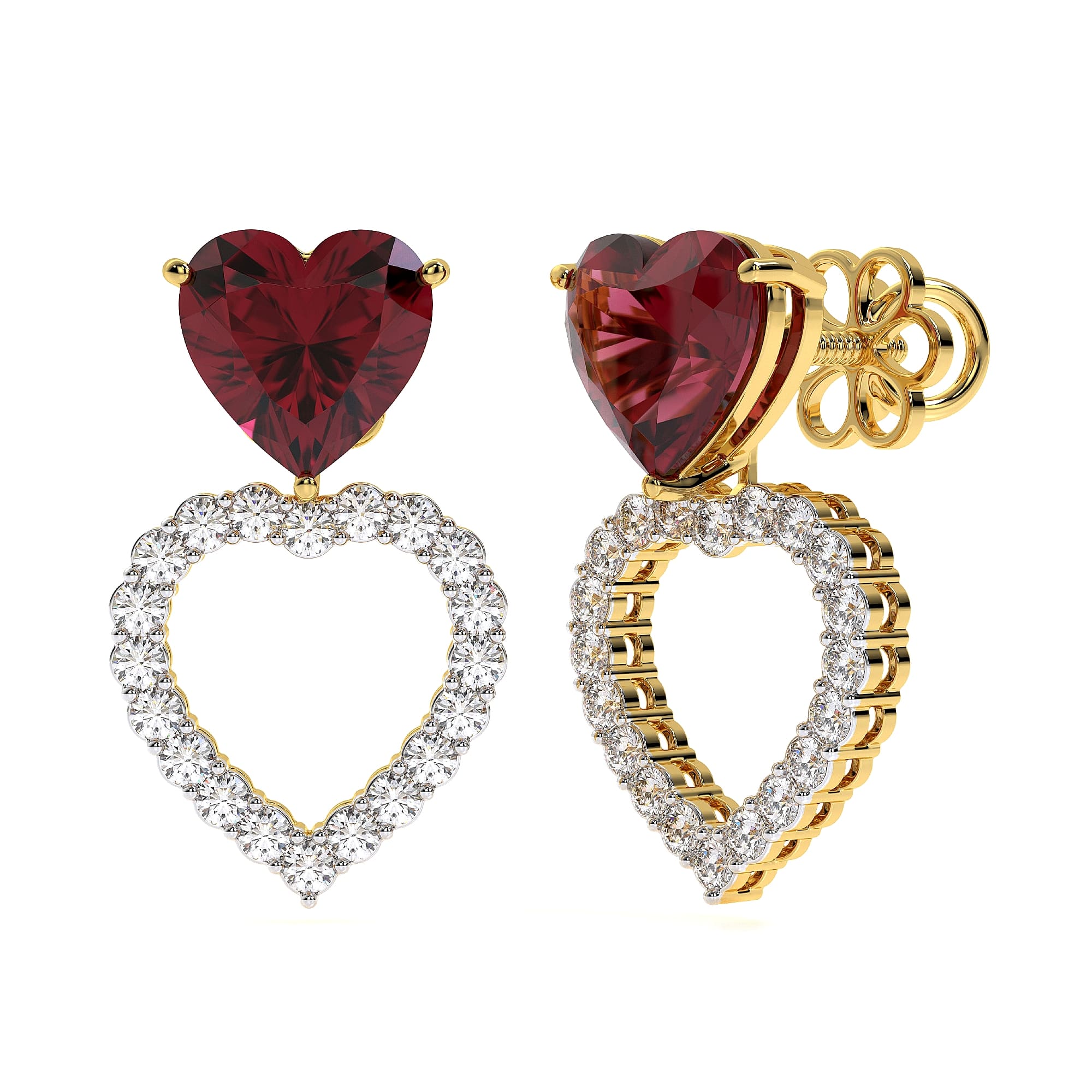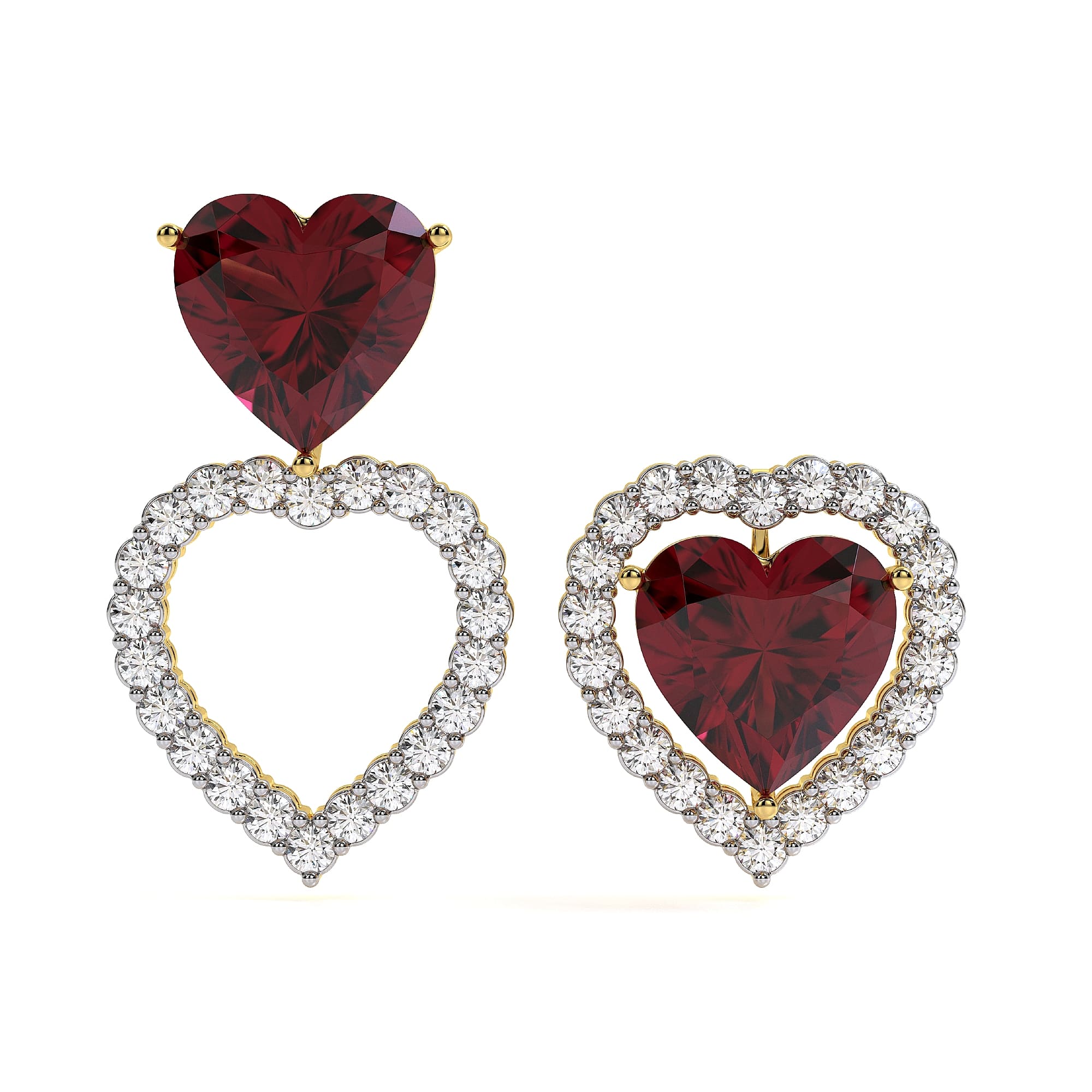Featuring the timeless MYZA Heart Shape Lab Grown Ruby & Diamond Earrings with IGI-certified, elegantly designed in 18K hallmark yellow gold.