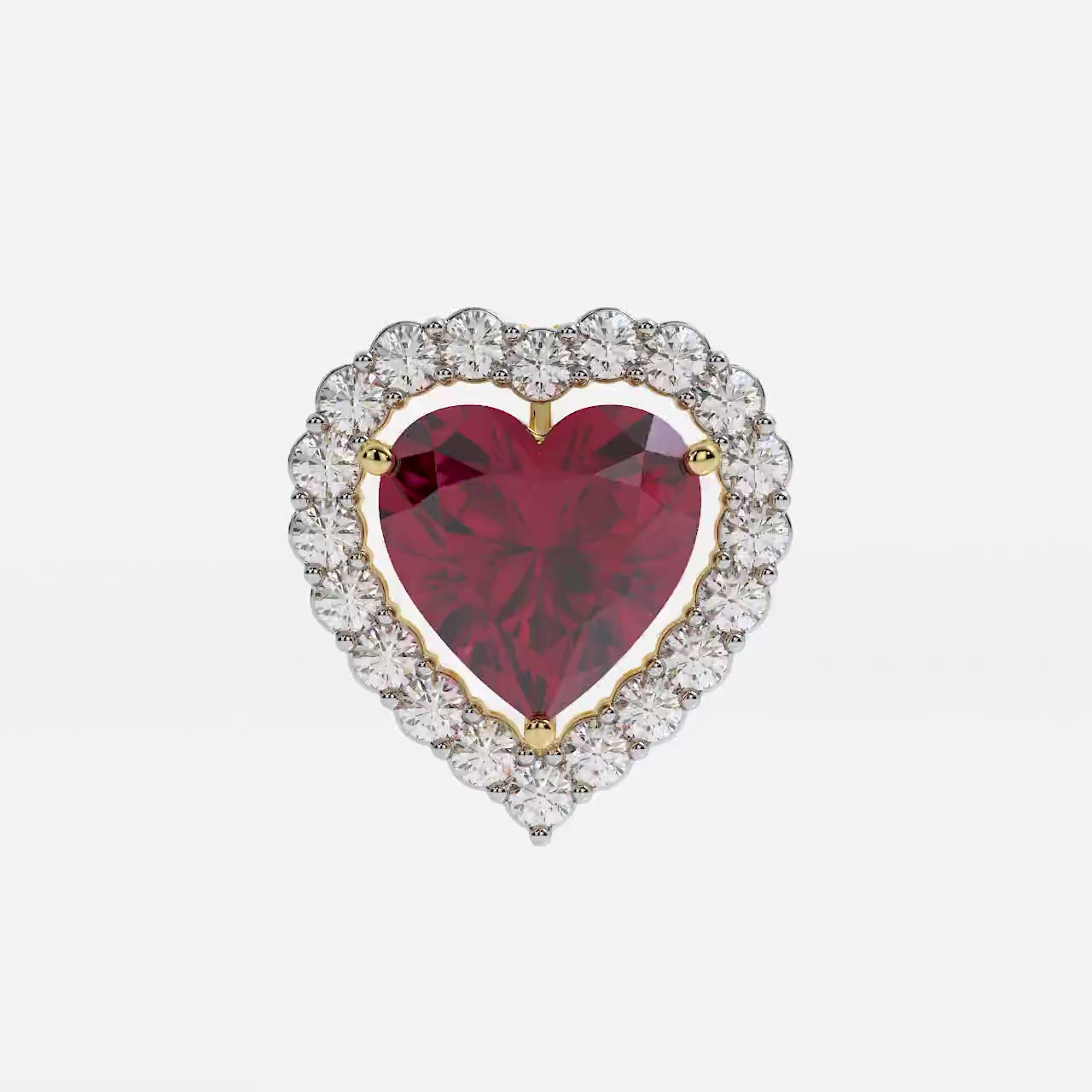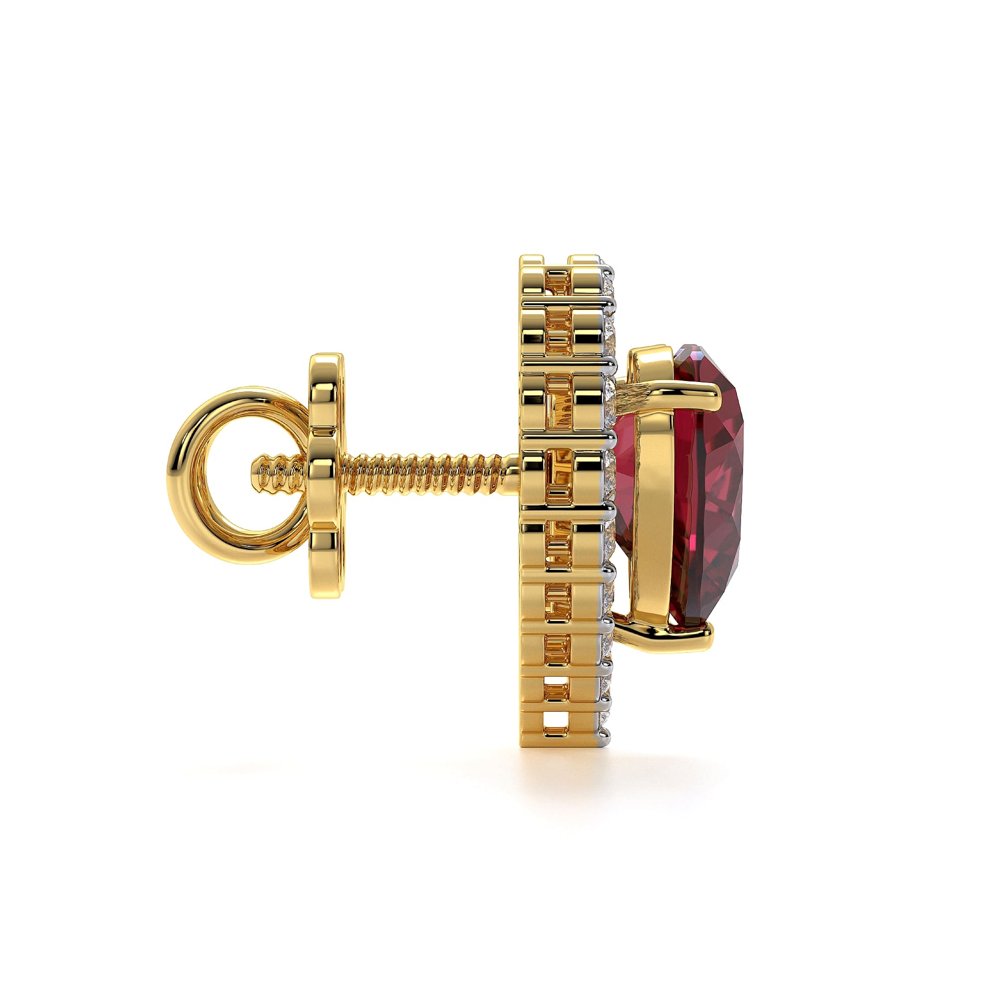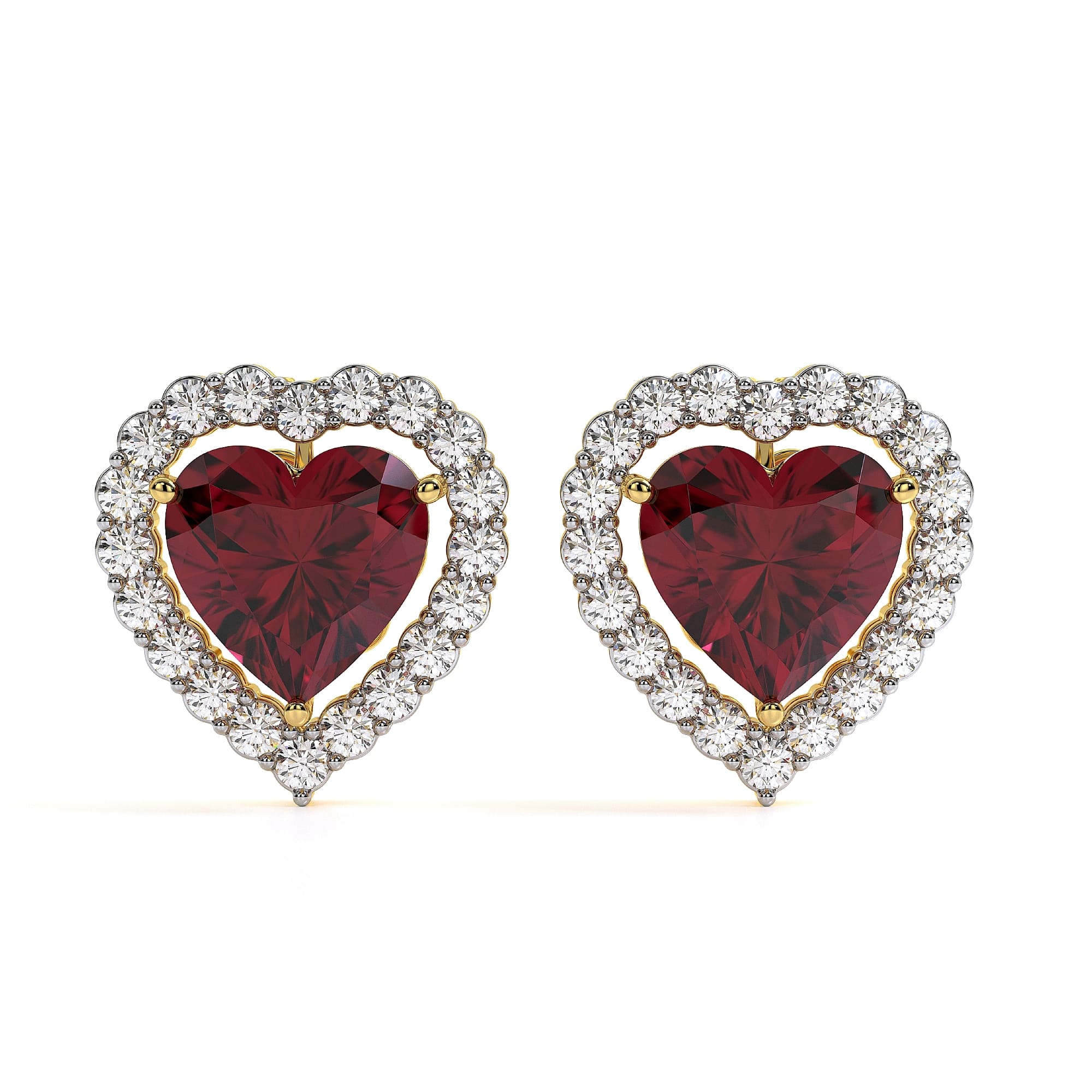 Featuring the timeless MYZA Heart Shape Lab Grown Ruby & Diamond Earrings with IGI-certified, elegantly designed in 18K hallmark yellow gold.