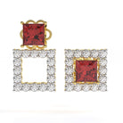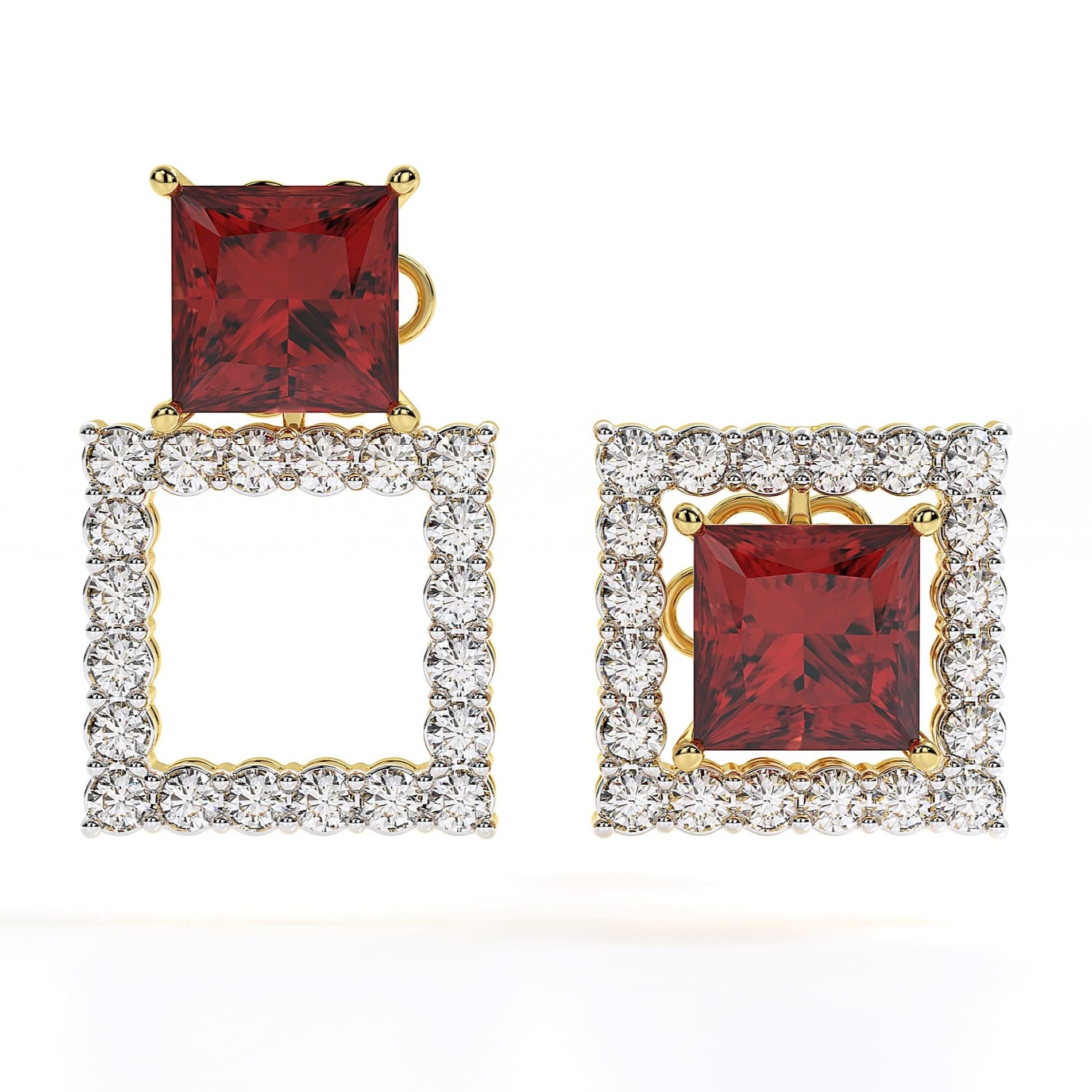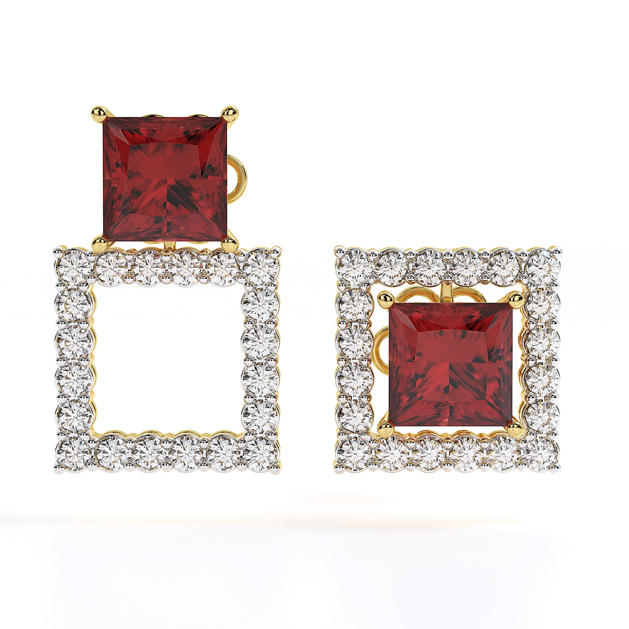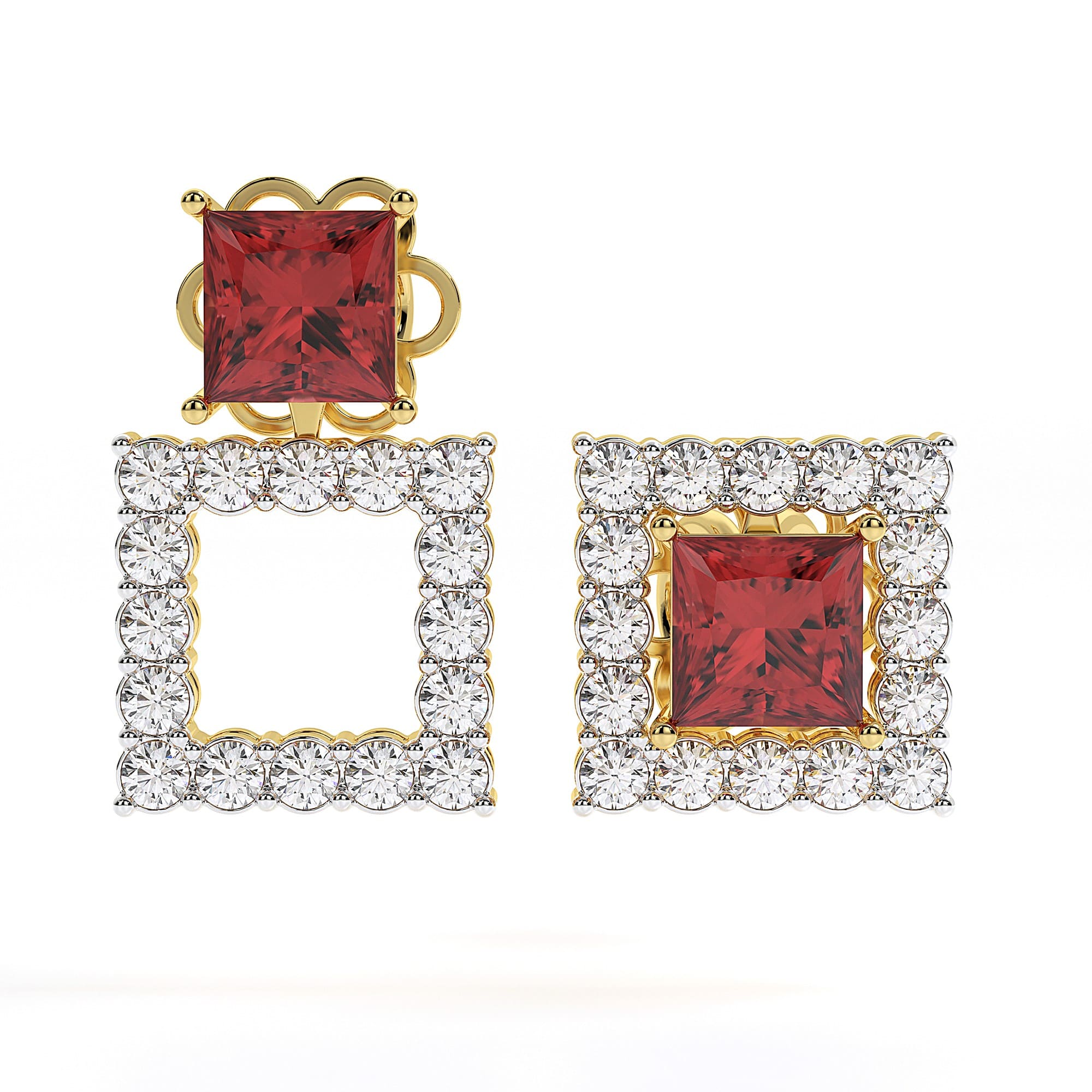 Featuring the timeless MYZA Princess Cut Lab Grown Ruby & Diamond Earrings with IGI-certified, lab-grown diamonds, elegantly designed in 18K hallmark yellow gold.
