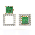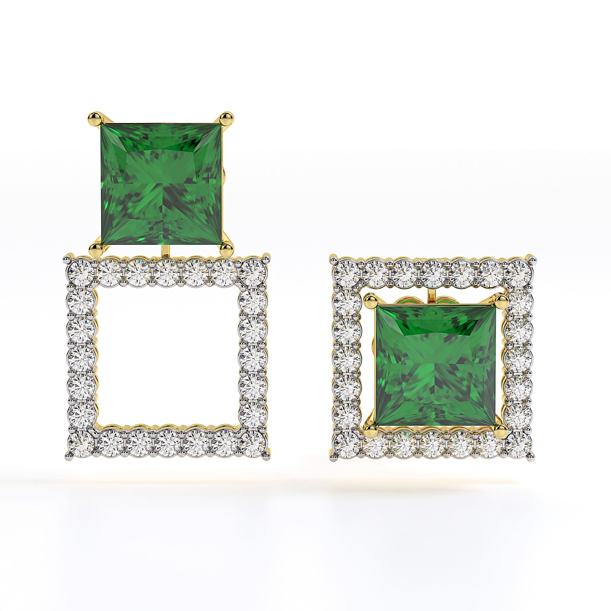 Featuring the timeless MYZA Princess Cut Lab Grown Zambian Emerald & Diamond Earrings with IGI-certified, lab-grown diamonds, elegantly designed in 18K hallmark yellow gold.