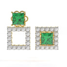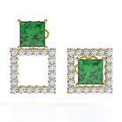 4 Carat (2 Carat Each x 2 Pcs) Convertible MYZA IGI Certified Princess Cut Lab Grown Zambian Emerald & Diamond Earrings in 18K Hallmark Gold