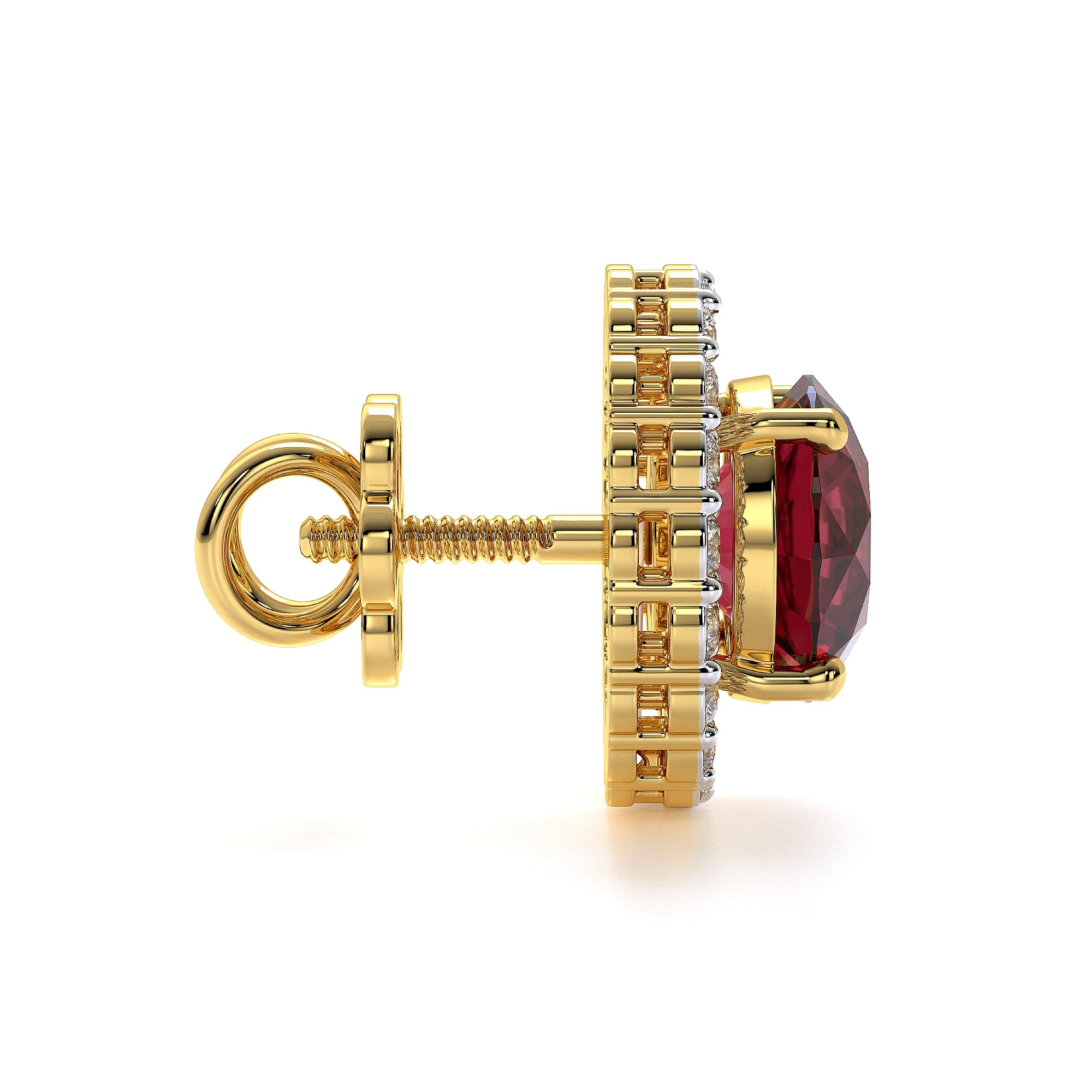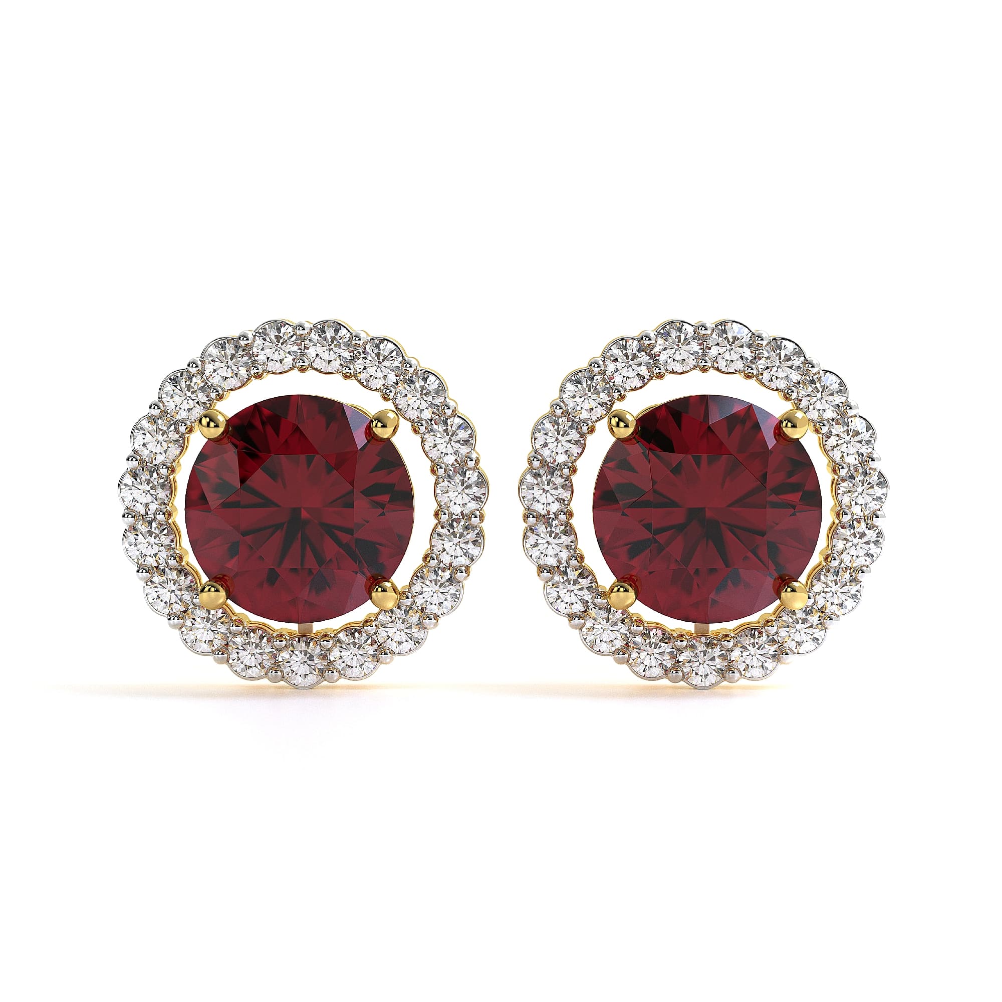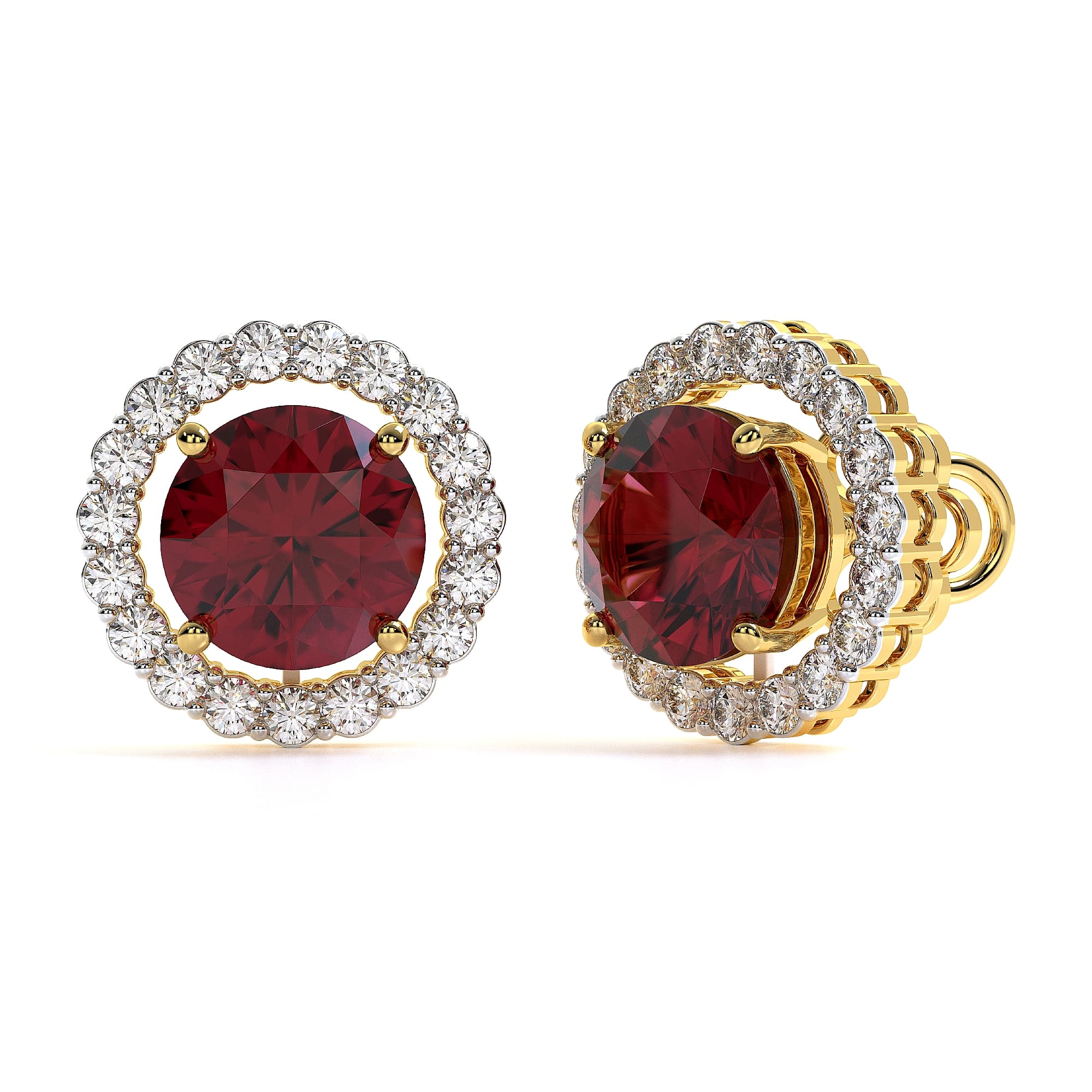 Featuring the timeless MYZA Convertible Round Shape Lab Grown Ruby Gemstone & Diamond Earrings with IGI-certified, lab-grown diamonds, elegantly designed in 18K hallmark yellow gold.