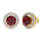 4.5 Carat (2.25 Carat Each x 2 Pcs) Convertible MYZA IGI Certified Round Shape Lab Grown Ruby Gemstone & Diamond Earrings in 18K Hallmark Gold