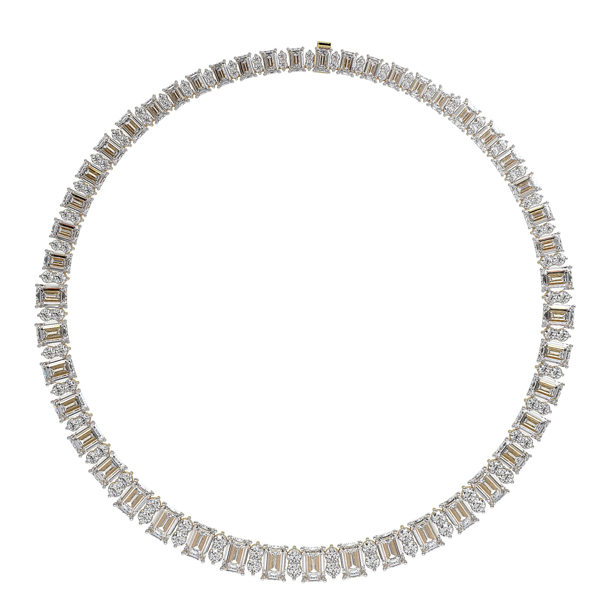 Myza Emerald Cut Lab-Grown Diamond & Round Lab Diamond Tennis Necklace in 18K Hallmark Gold