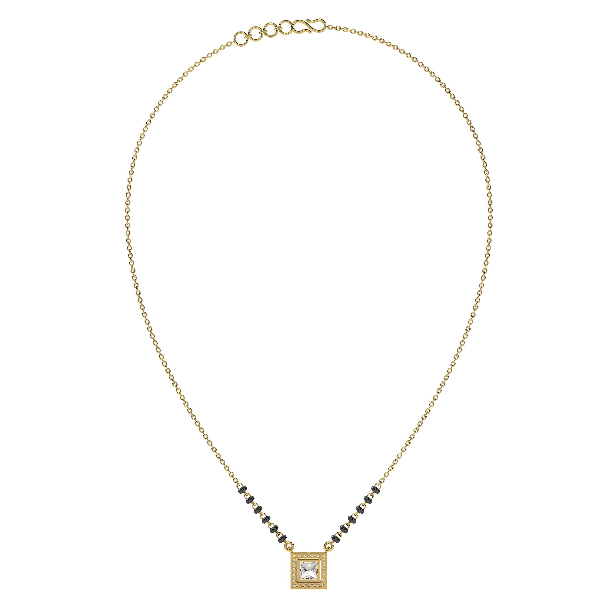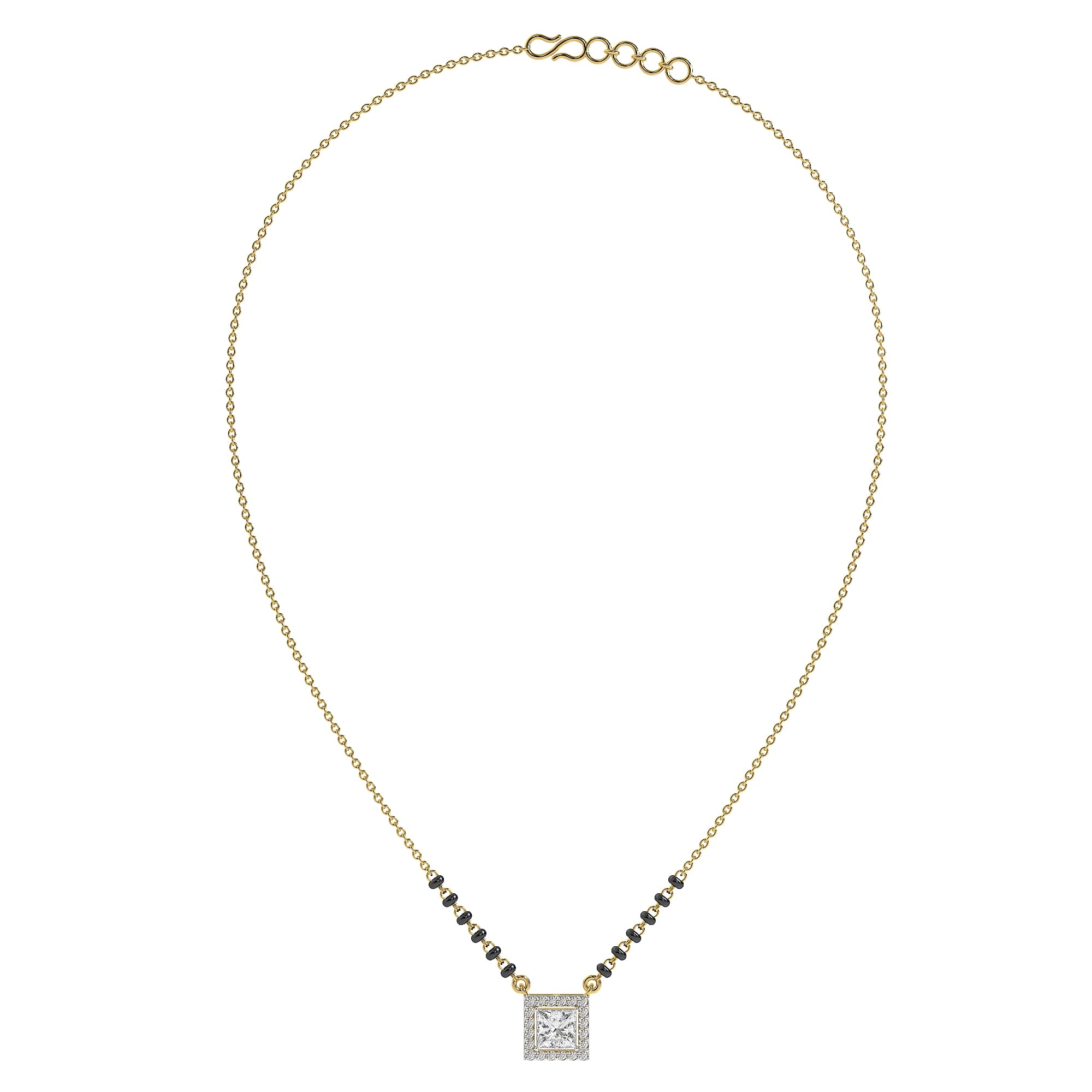 Featuring the timeless MYZA IGI Certified (D/VVS2) Lab-Grown Princess Cut Diamond Mangalsutra with Chain in 18K Hallmarked Gold.