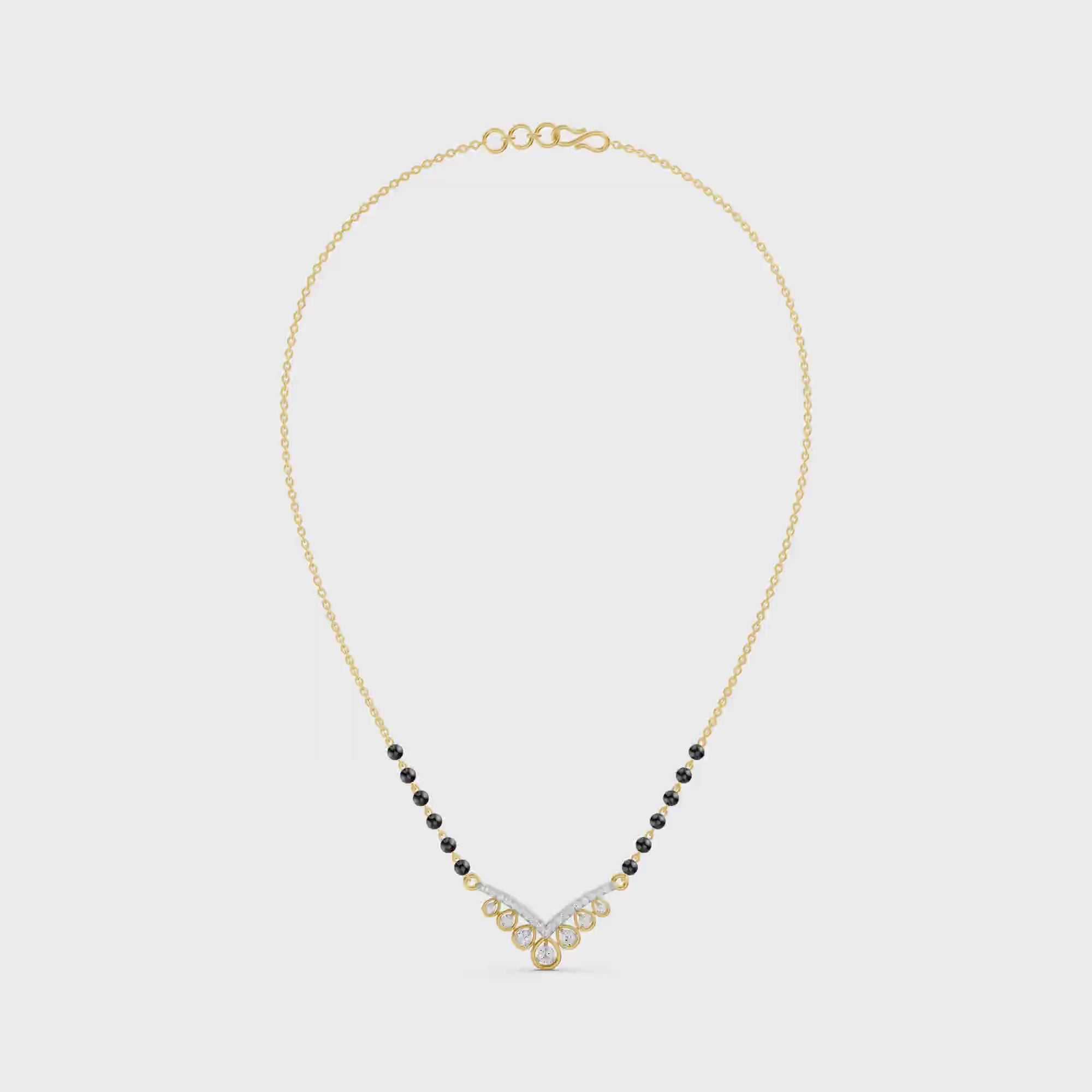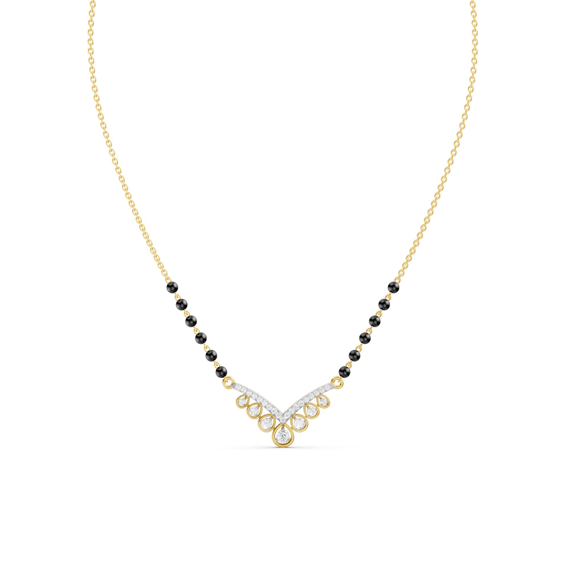 Featuring the timeless MYZA Round Cut Lab-Grown Diamond Mangalsutra Chain with IGI-certified, lab-grown diamonds, elegantly designed in 18K hallmark yellow gold.