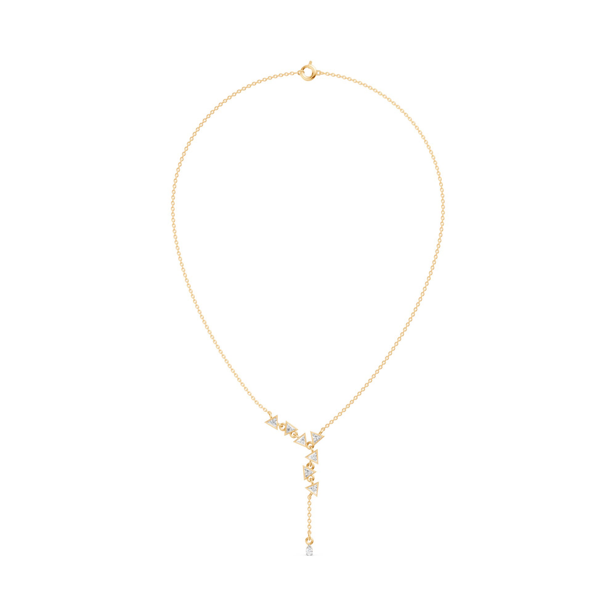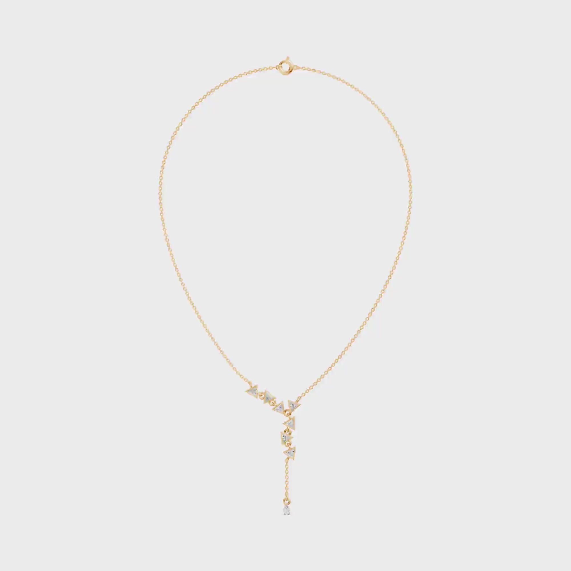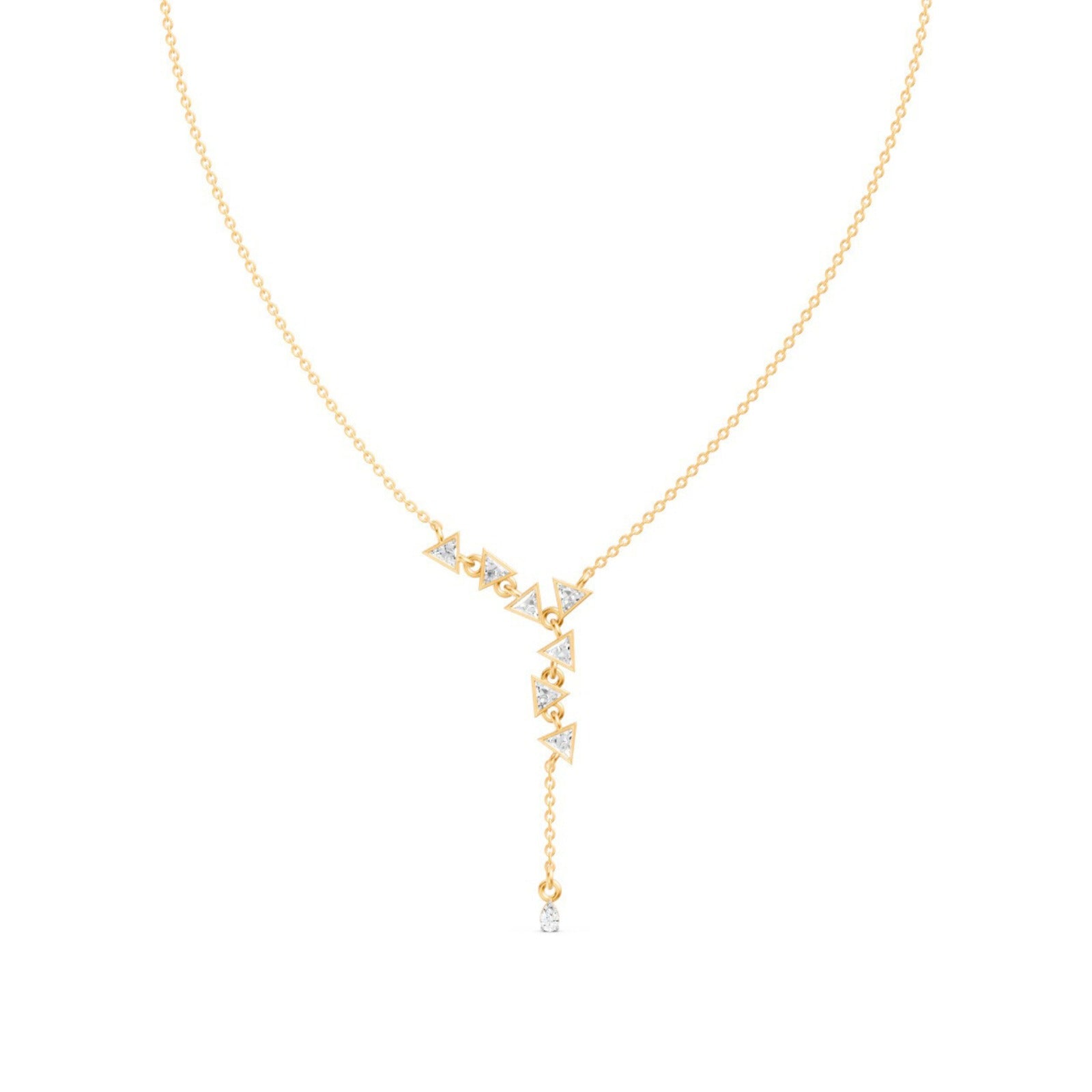 This luxurious MYZA Pear and Triangle Auric Arrows Diamond Necklace nature-friendly lab-grown diamonds in 18k hallmark gold.