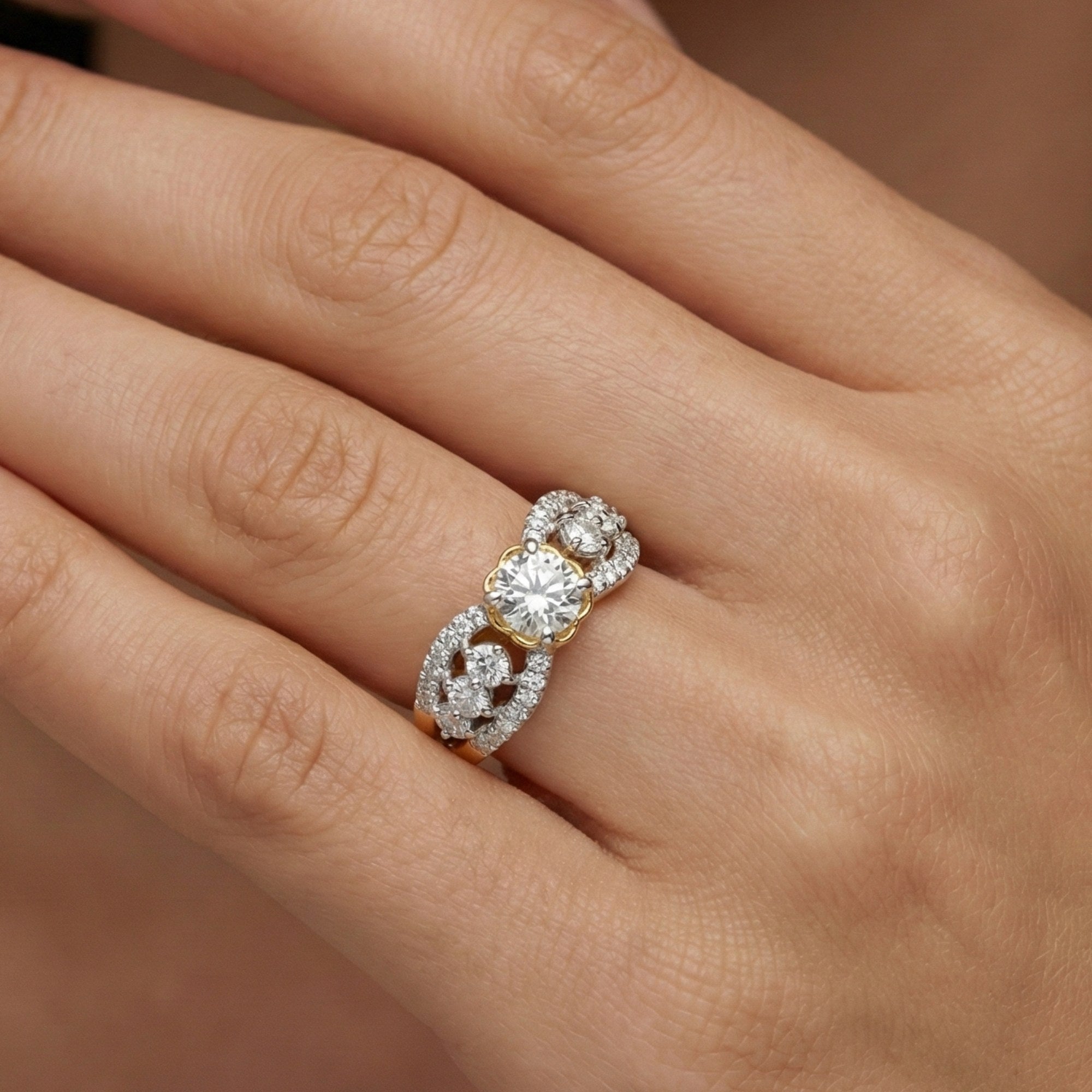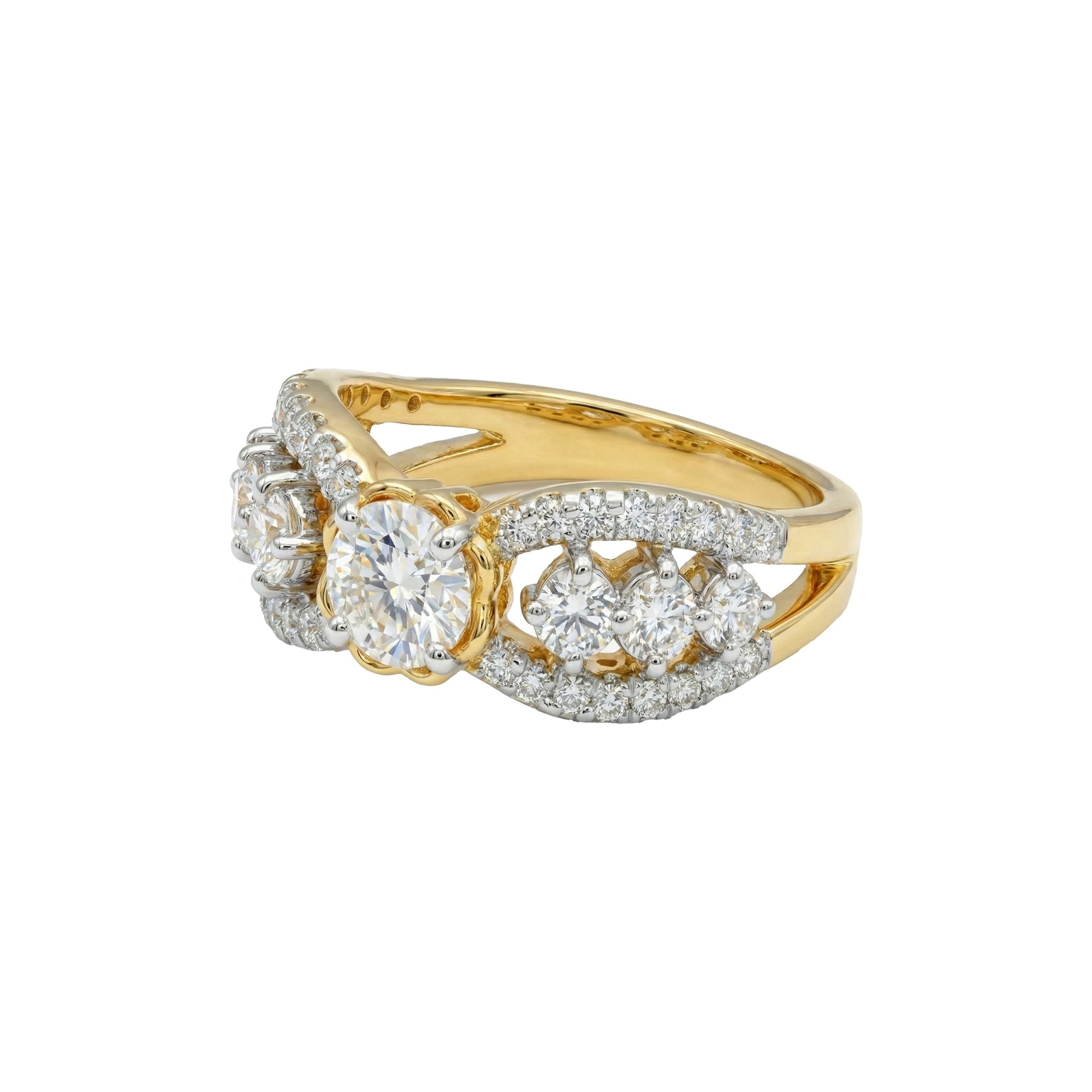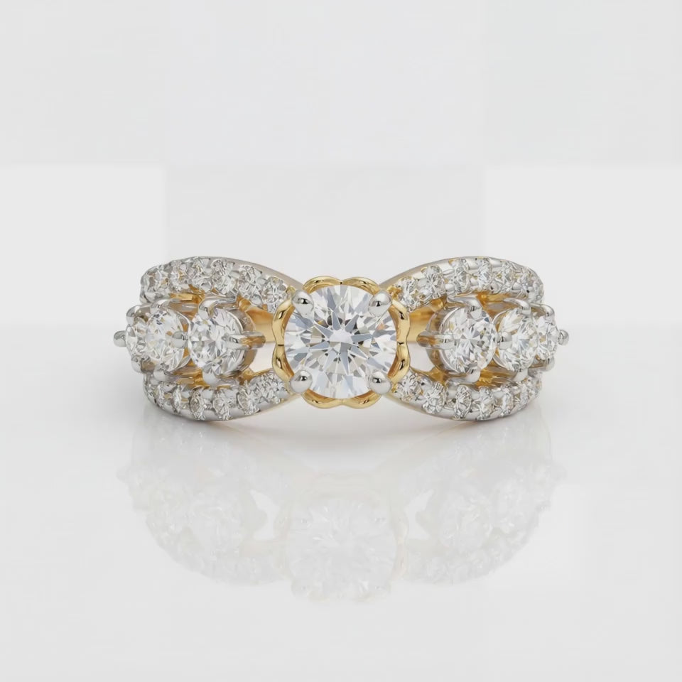 1.44 Carat MYZA IGI Certified (D/VVS2) Lab-Grown Round Diamond Twisted Ring in 18K Hallmarked Gold