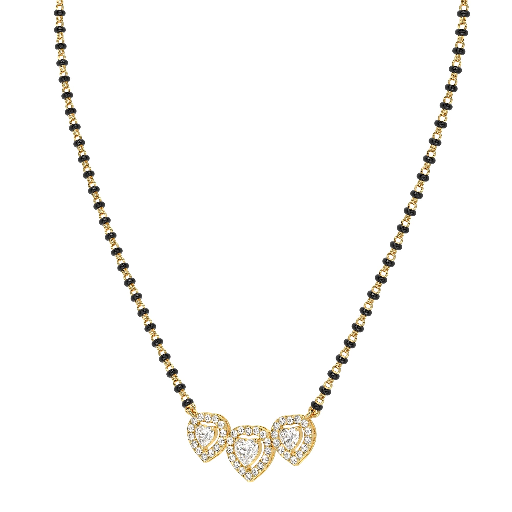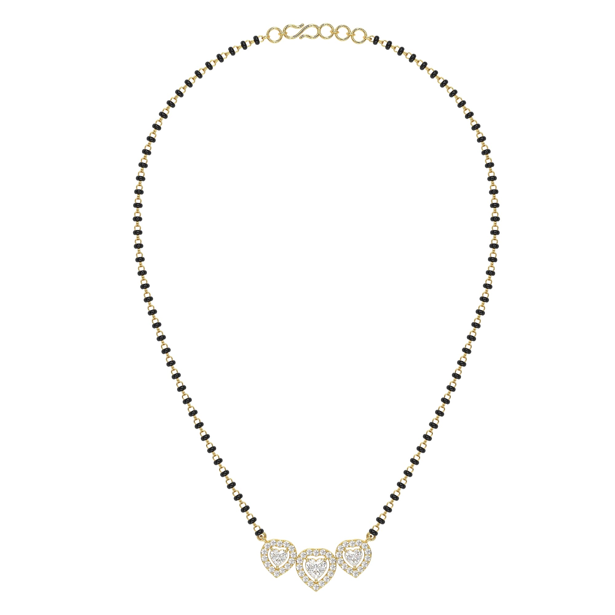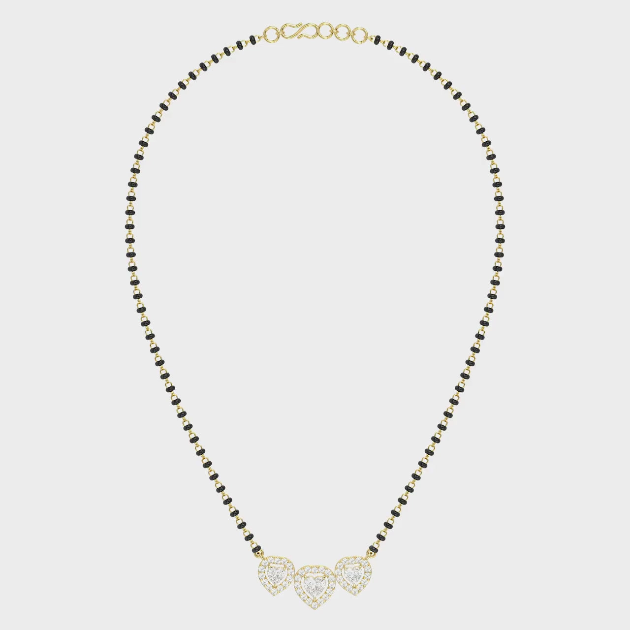 3.32 Carat MYZA IGI Certified Heart Shape Tri-Halo Lab-Grown Diamonds Mangalsutra with Chain in 18K Hallmark Gold